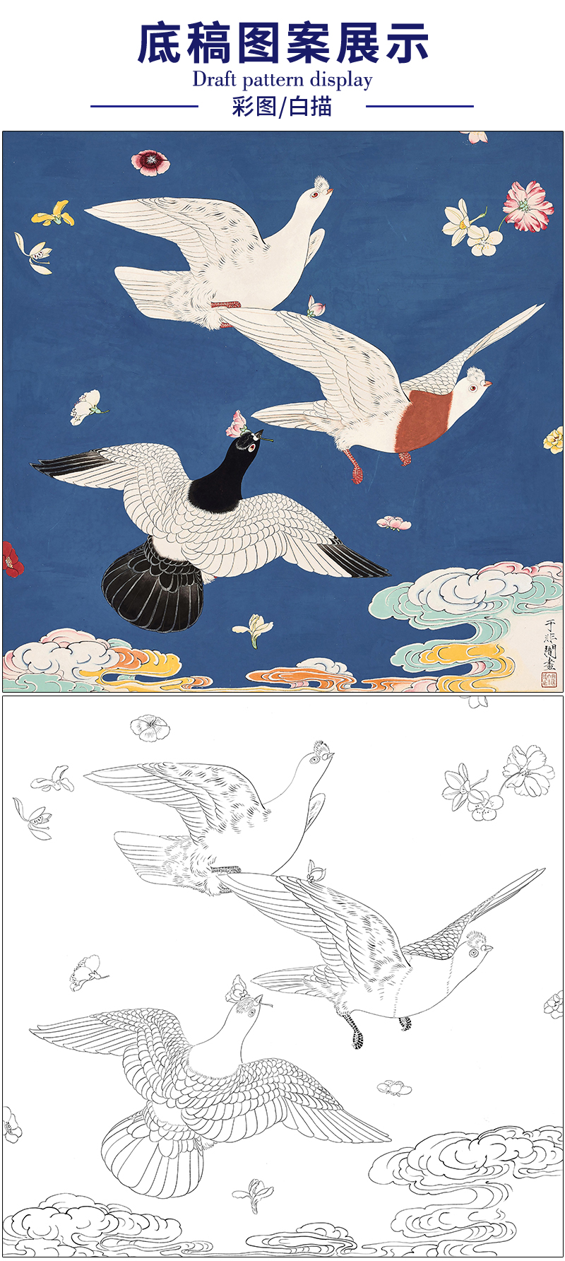 于非闇花鸟工笔画白描底稿《和平鸽》临摹勾线高清打印稿HS22