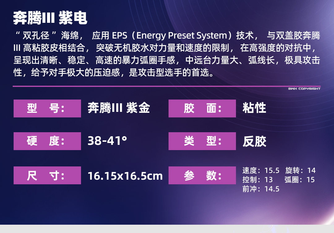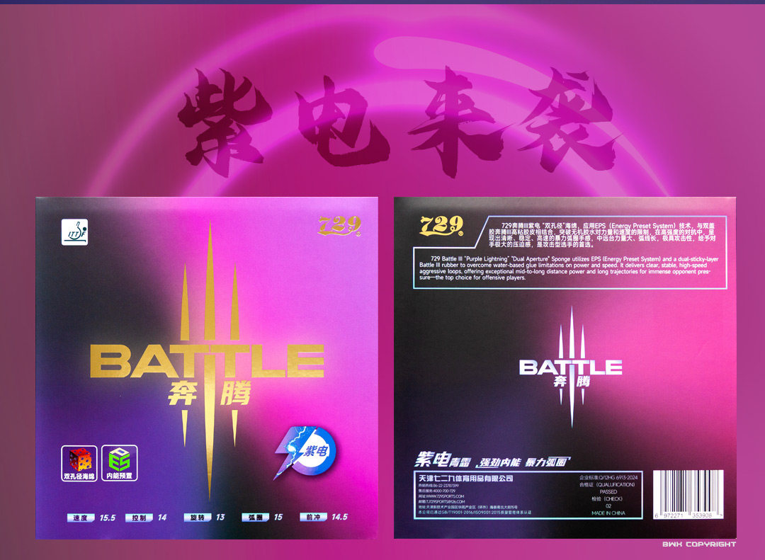 【送黑标三星球】七二九729奔腾3紫电乒乓球胶皮快攻弧圈国手刘炜珊同款明星套胶乒乓套胶