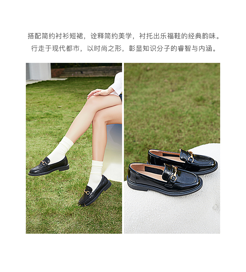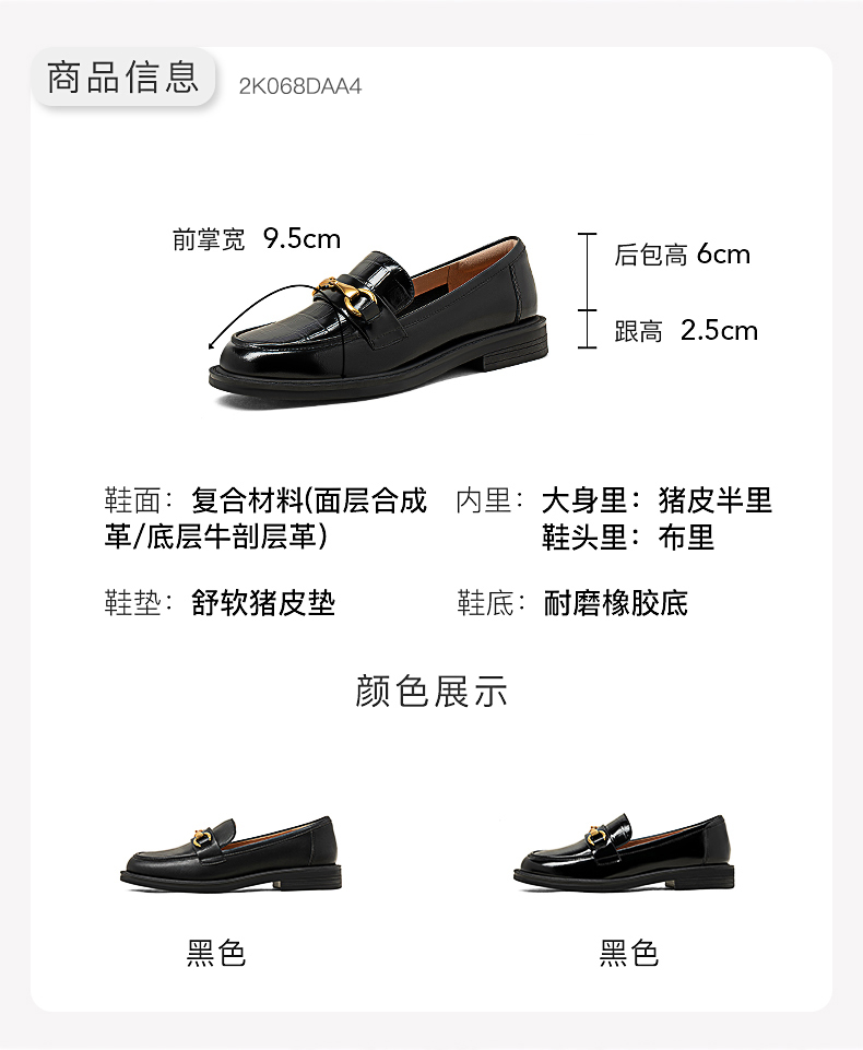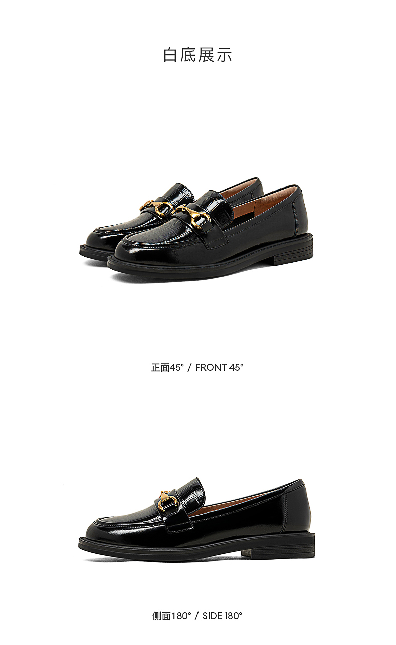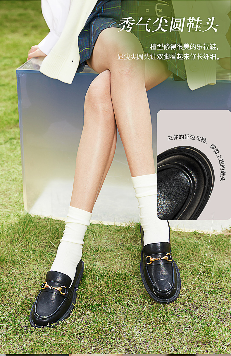 点点康莉KYQ2K068英伦乐福鞋女2024年春季新款圆头低跟舒适软底一脚蹬小皮鞋