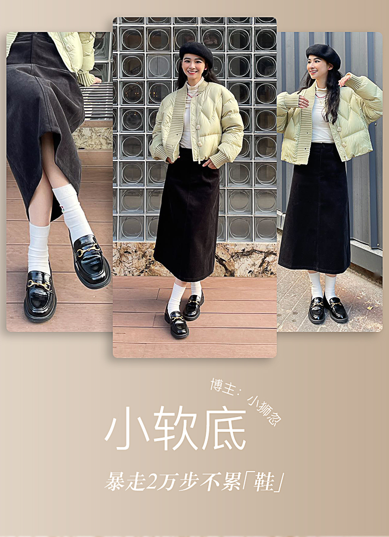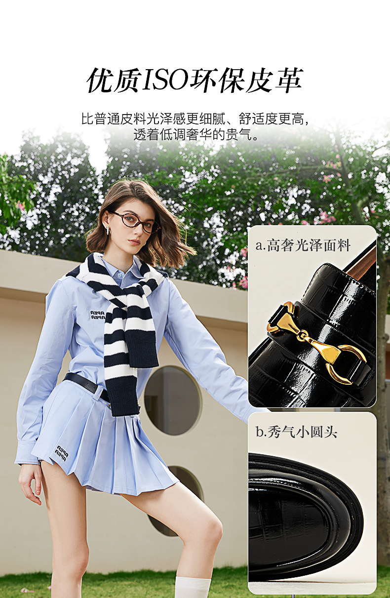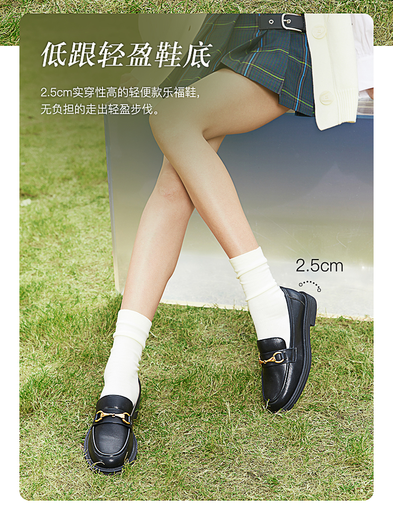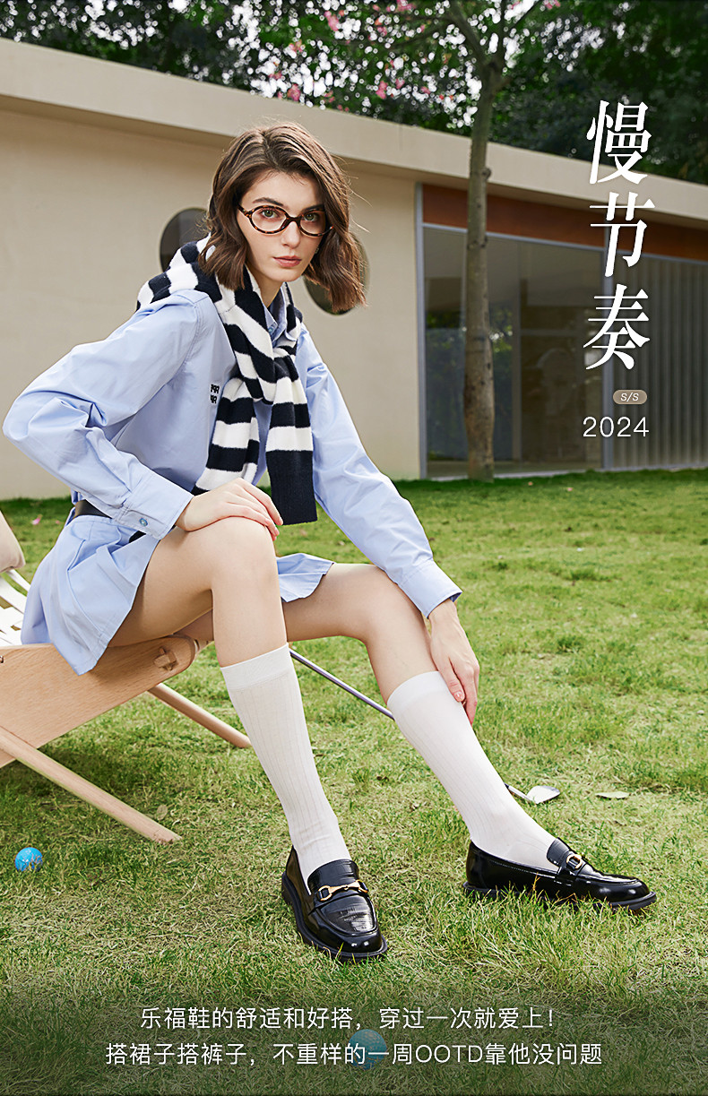 点点康莉KYQ2K068英伦乐福鞋女2024年春季新款圆头低跟舒适软底一脚蹬小皮鞋