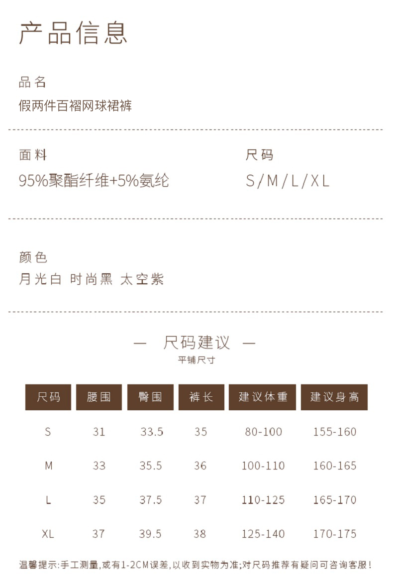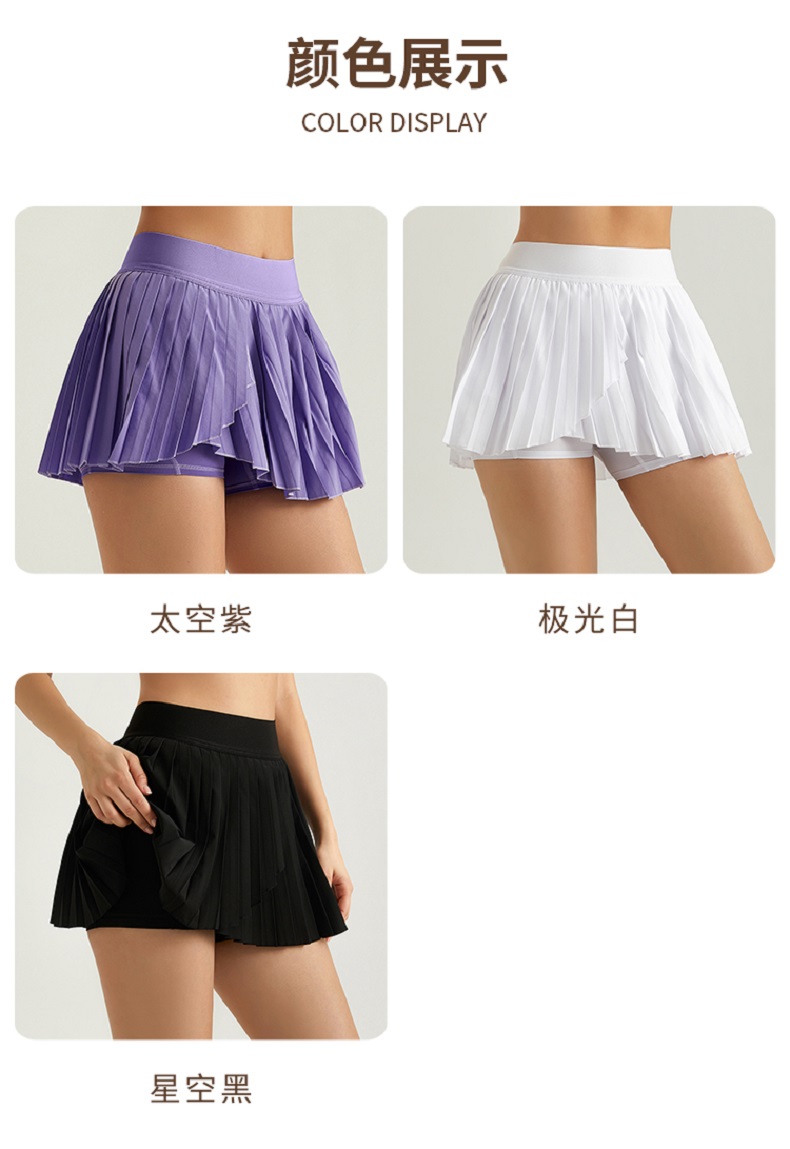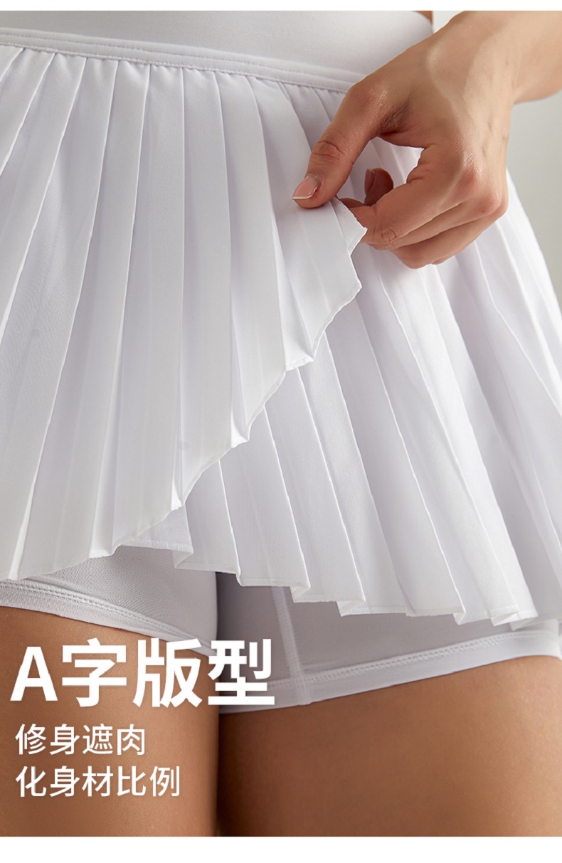 【运动必备】【凉感轻盈,收腹显瘦】新款运动裙裤女防走光健身跑步运动透气速干口袋假两件百褶网球裙100%
