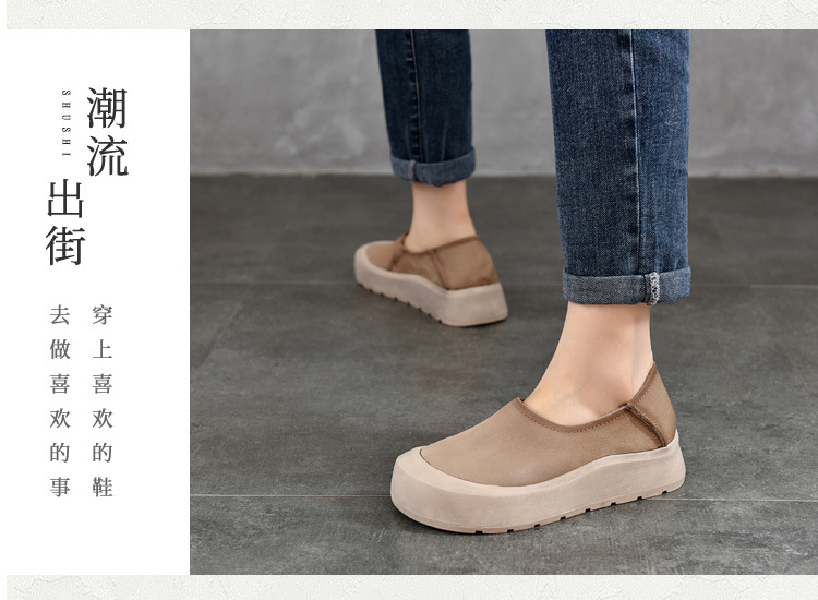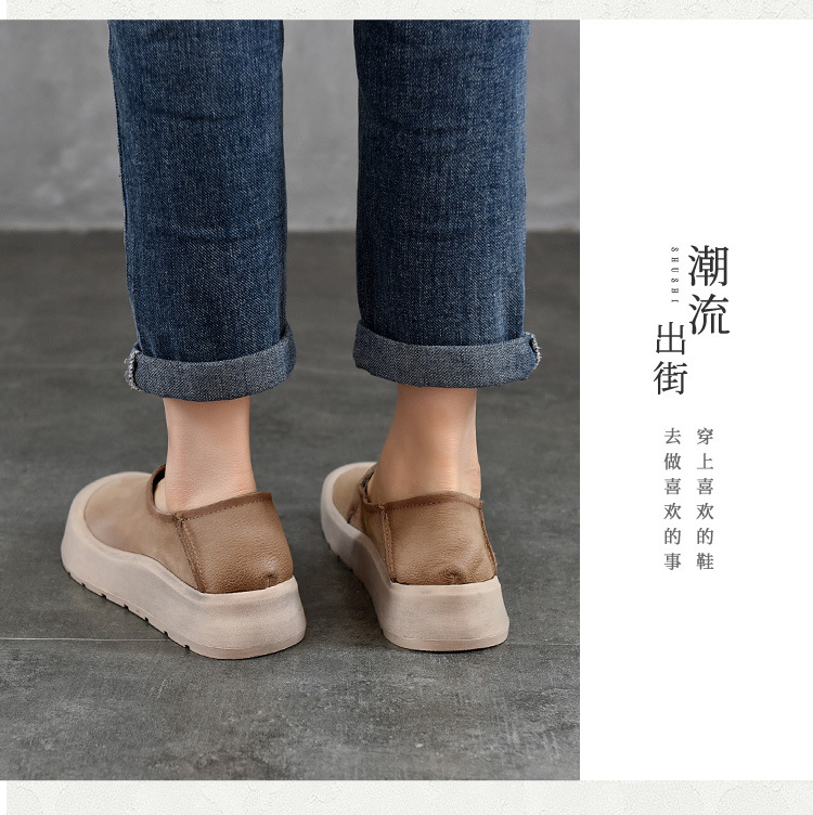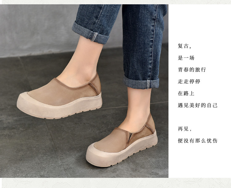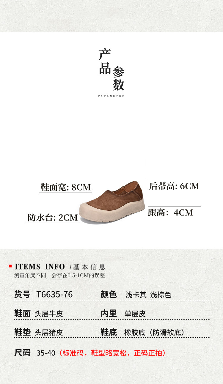 TN T6635-76头层牛皮休闲包头厚底软底低帮深口单鞋