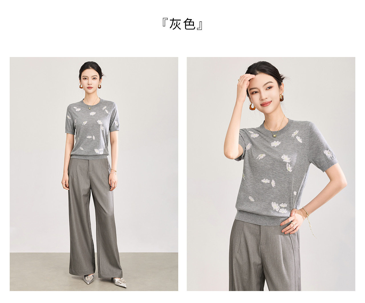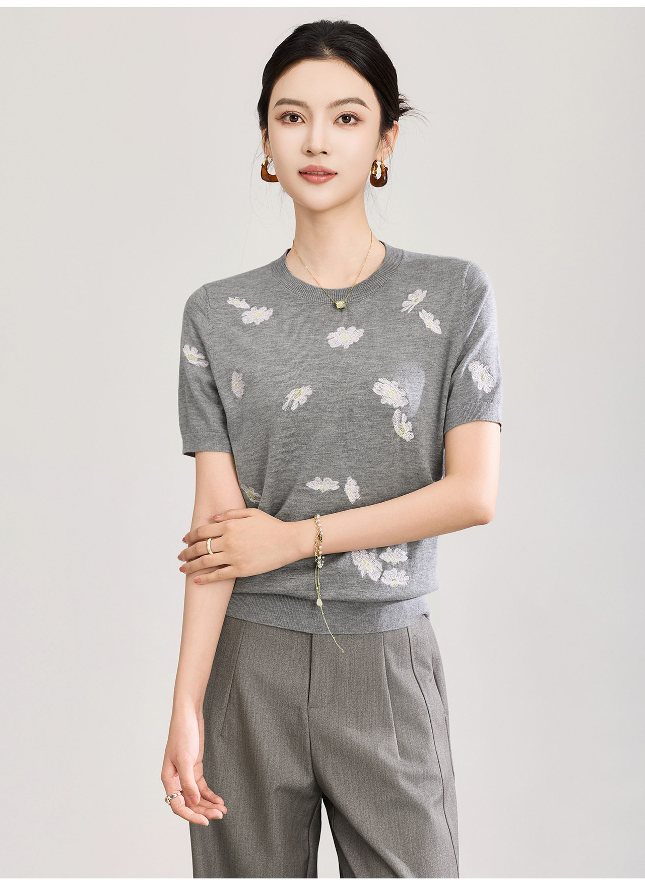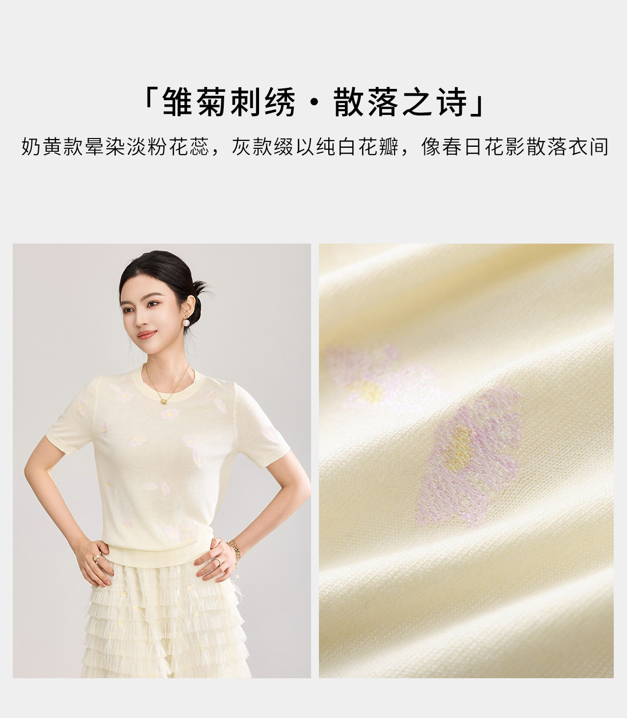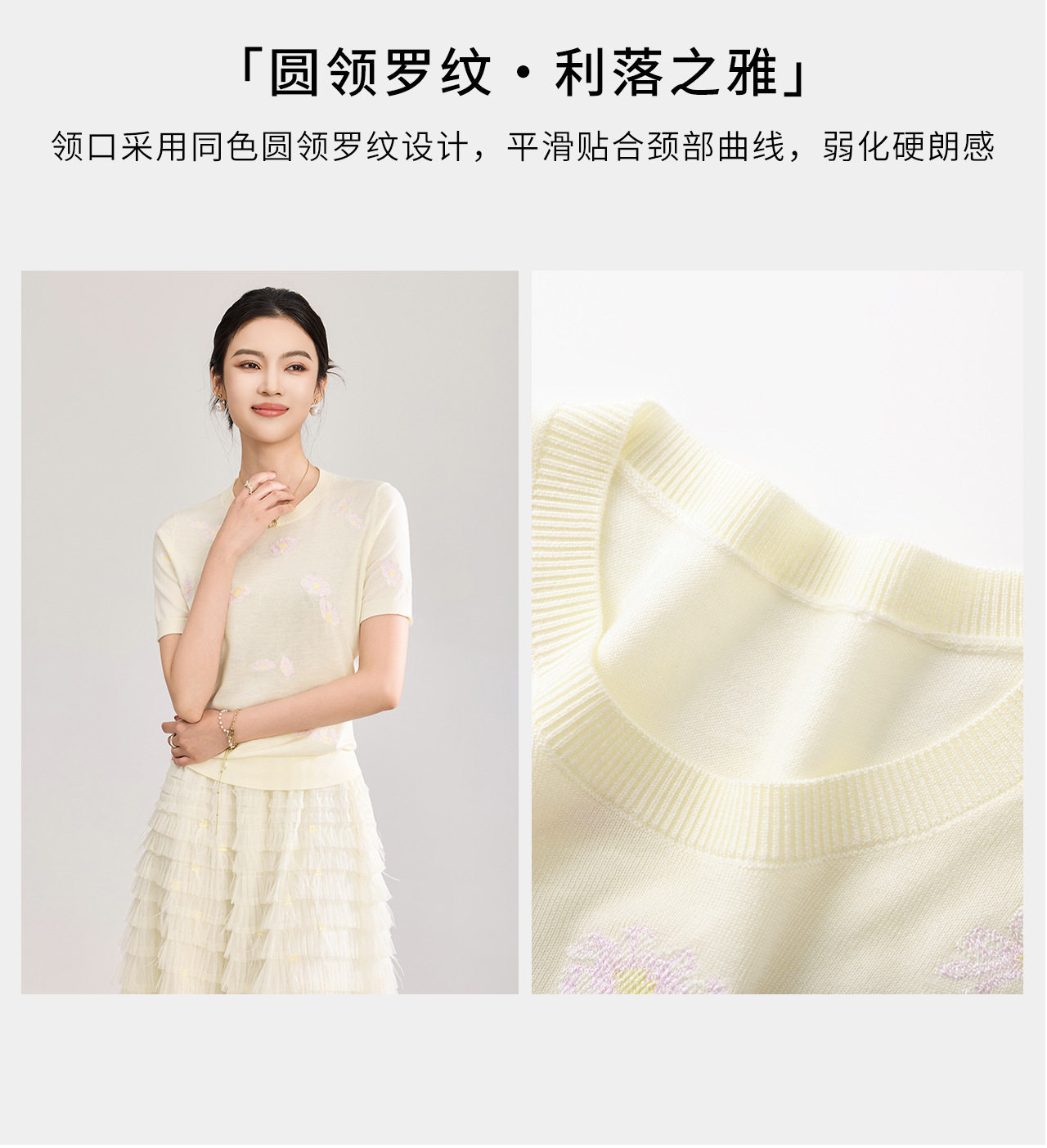 「高货wl」全新升级【铂金会员183/天猫249/差价66】(12047)洛诗琳美丽诺羊毛针织T恤2026新款花朵刺绣显瘦针织上衣
