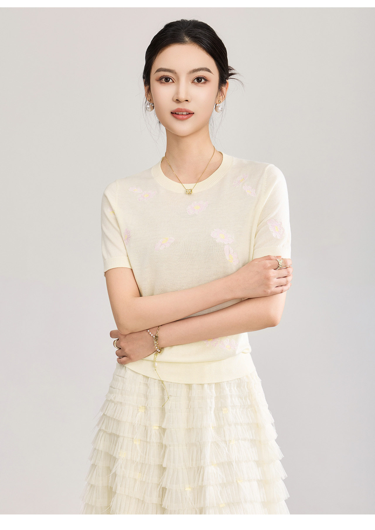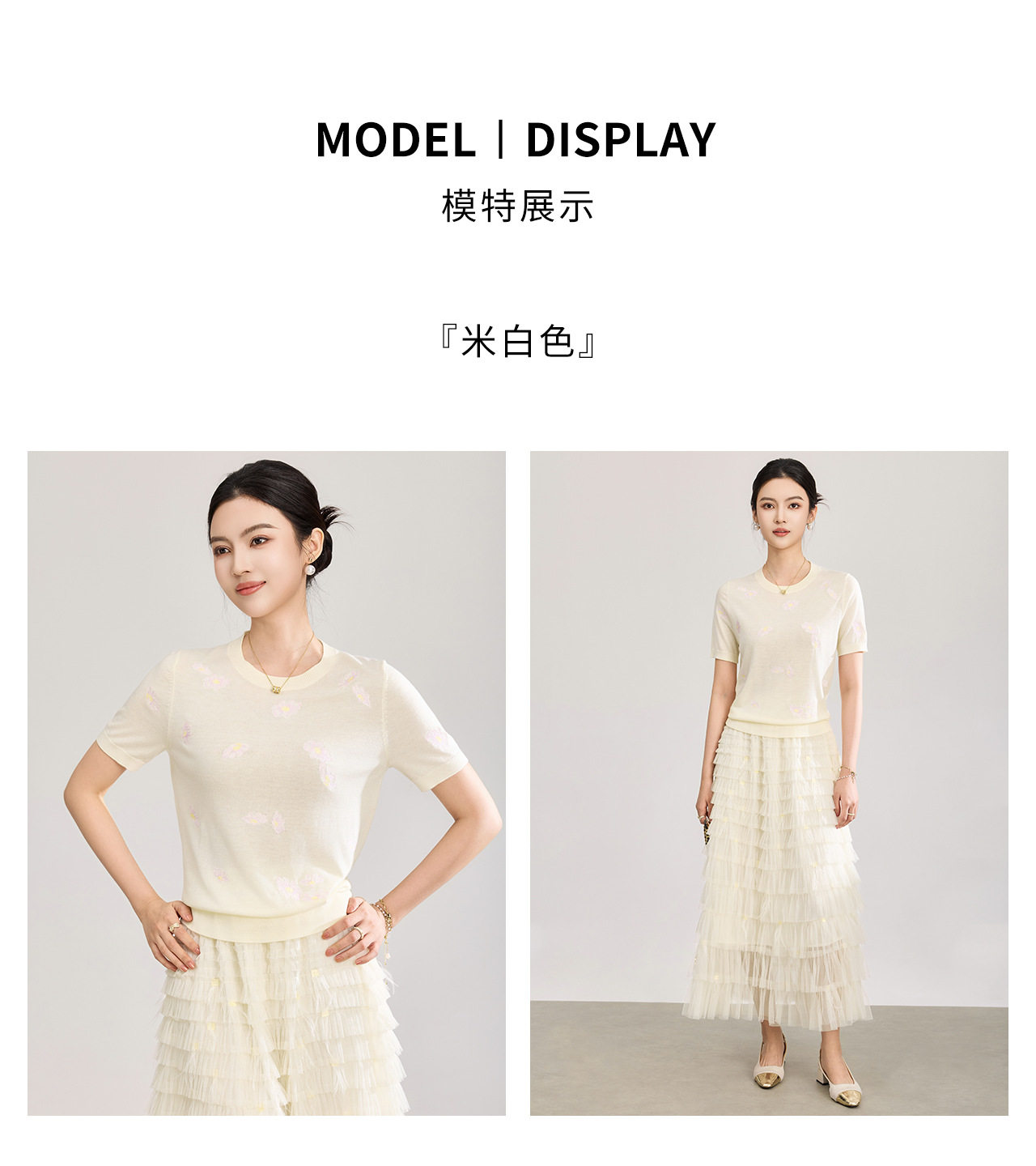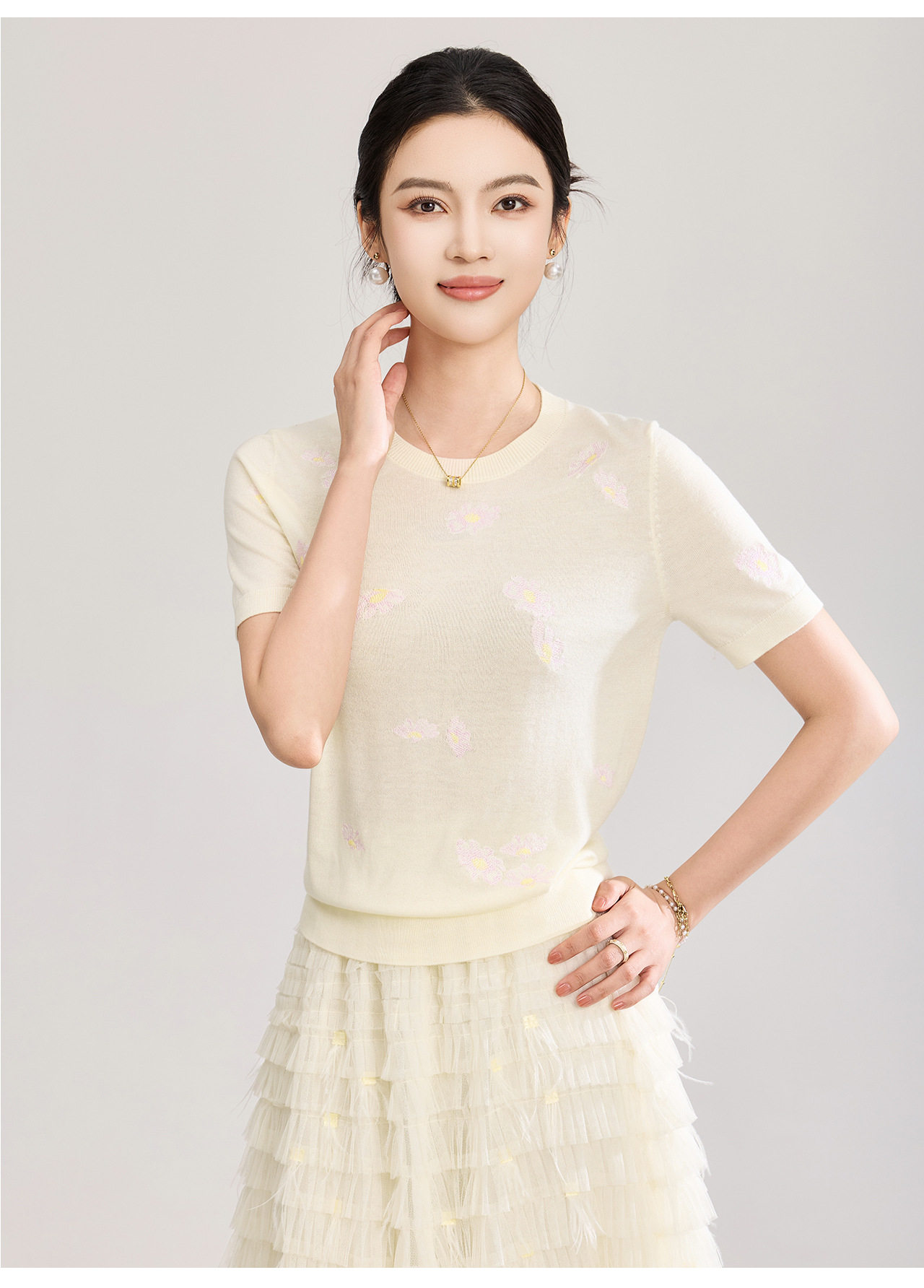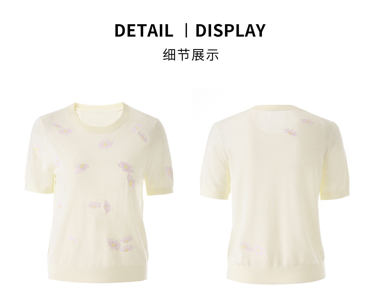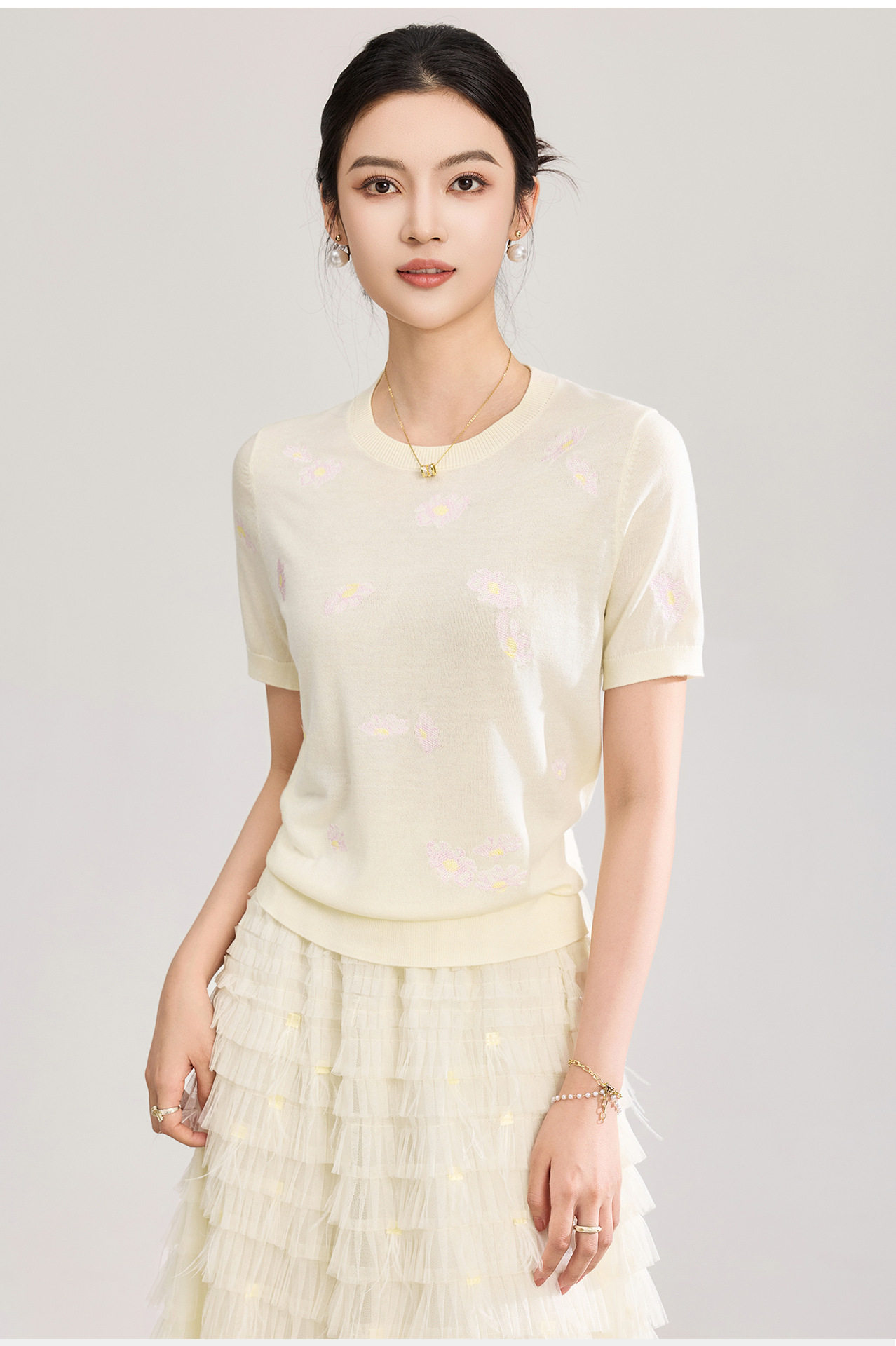 「高货wl」全新升级【铂金会员183/天猫249/差价66】(12047)洛诗琳美丽诺羊毛针织T恤2026新款花朵刺绣显瘦针织上衣