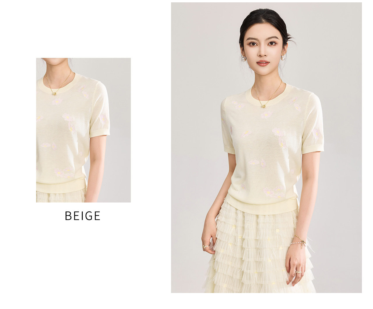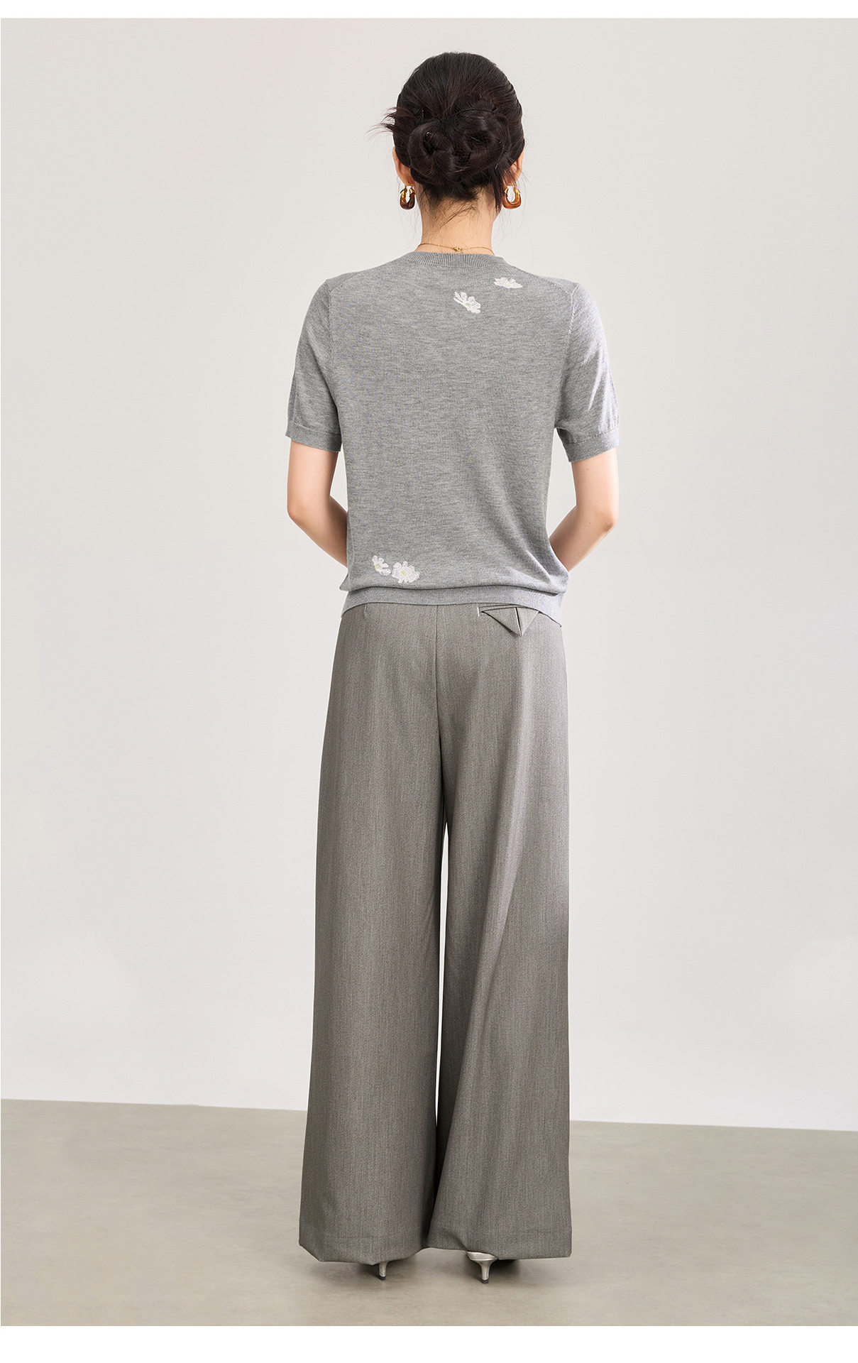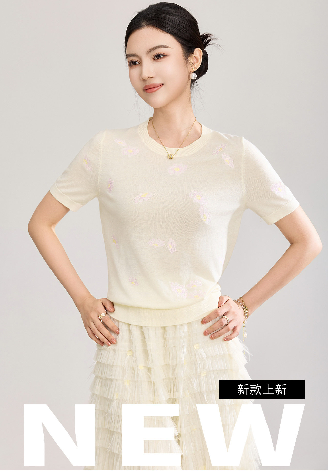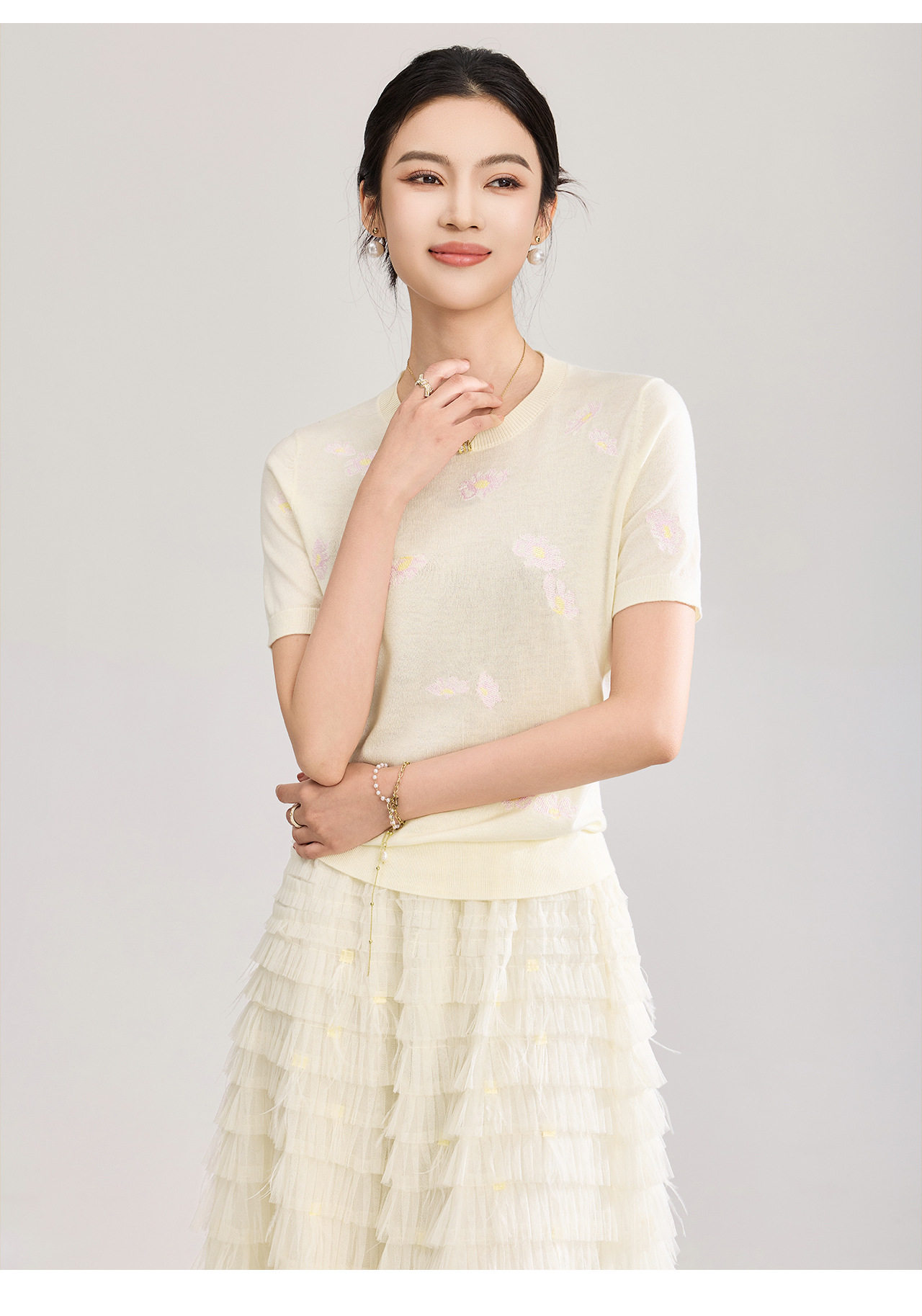 「高货wl」全新升级【铂金会员183/天猫249/差价66】(12047)洛诗琳美丽诺羊毛针织T恤2026新款花朵刺绣显瘦针织上衣