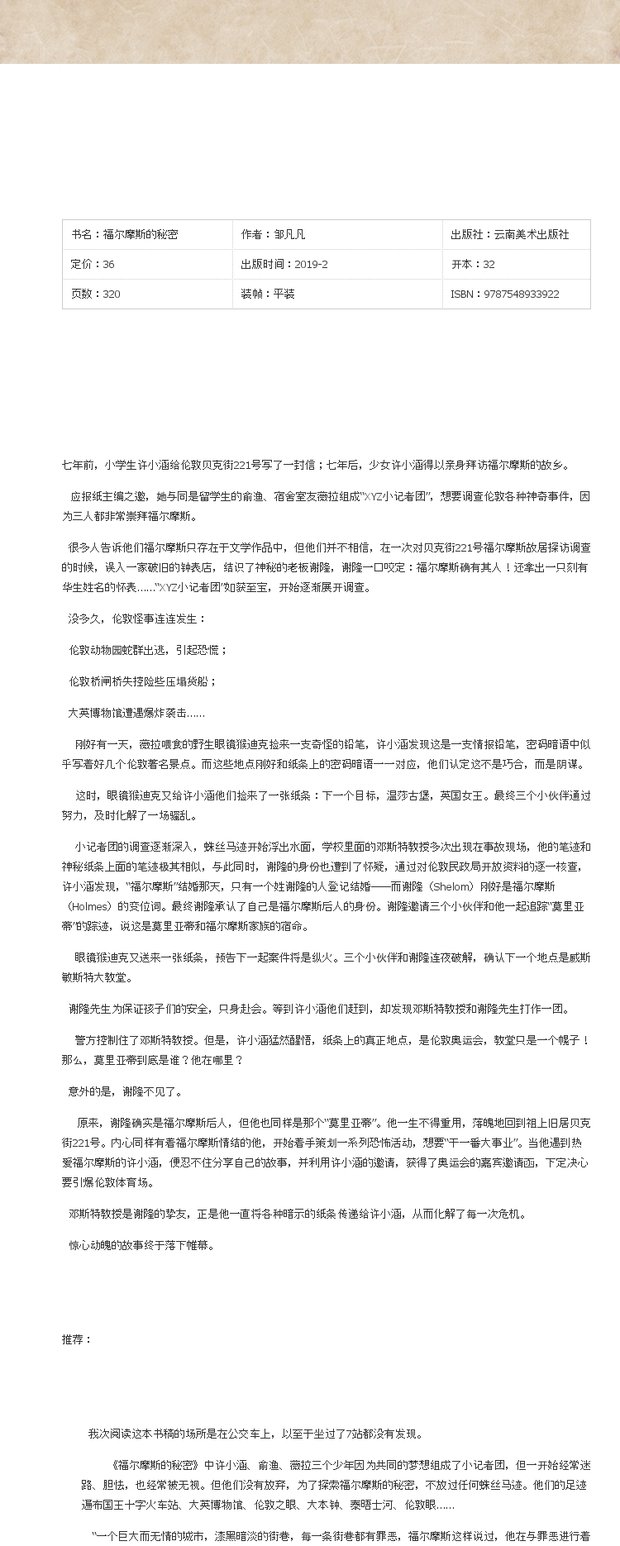 福尔摩斯的秘密 六年级正版现货速发|名师推荐|小学生课外阅读6年级