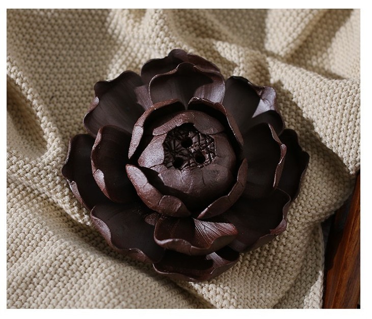 「纯手工莲花香插」创意陶瓷香炉 粗陶捏制莲花香盘 居家摆件