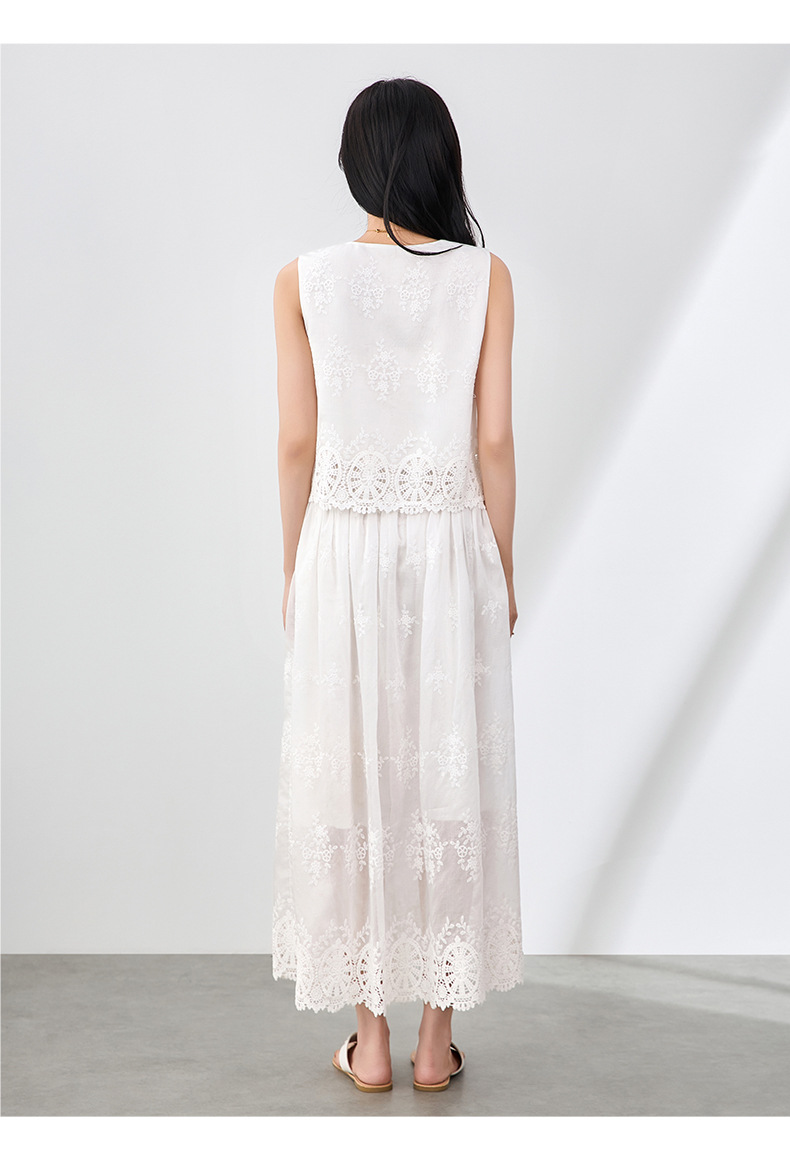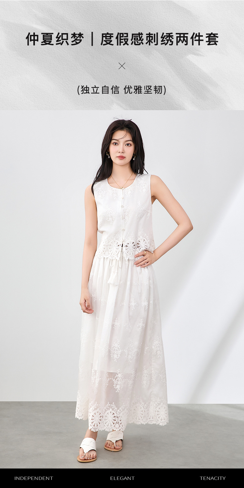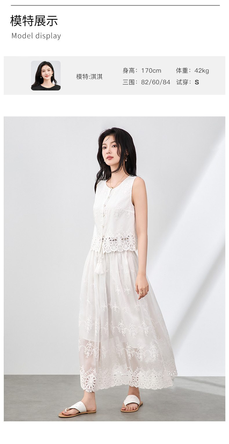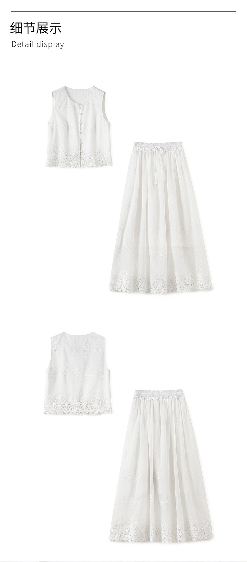 「高货wl」全新升级【铂金会员367/天猫499/差价132】(99611)洛诗琳重磅高货镂空刺绣无袖上衣大摆度假风长裙两件套装