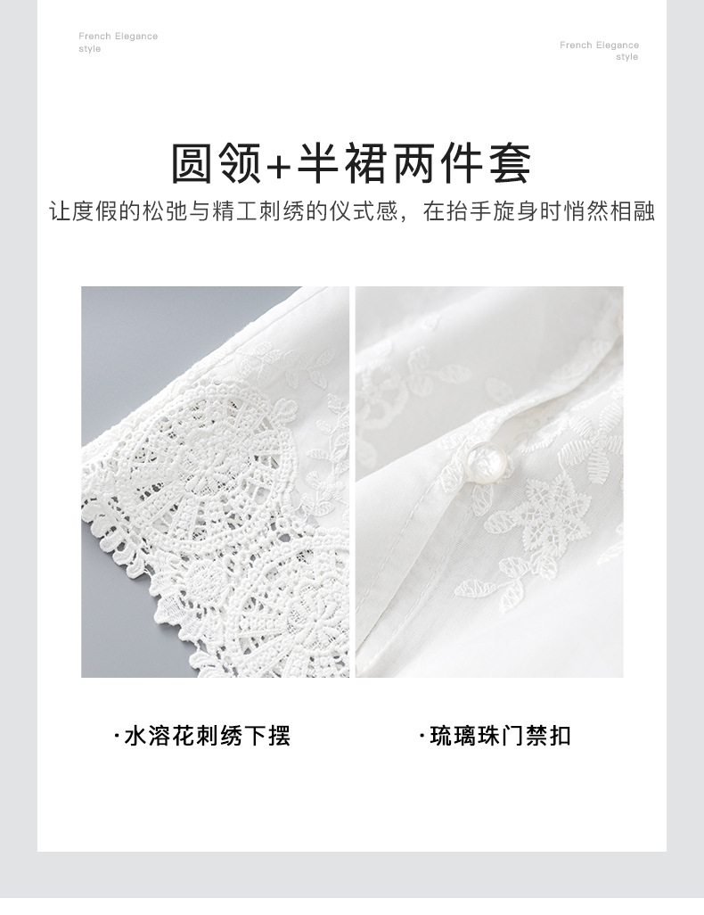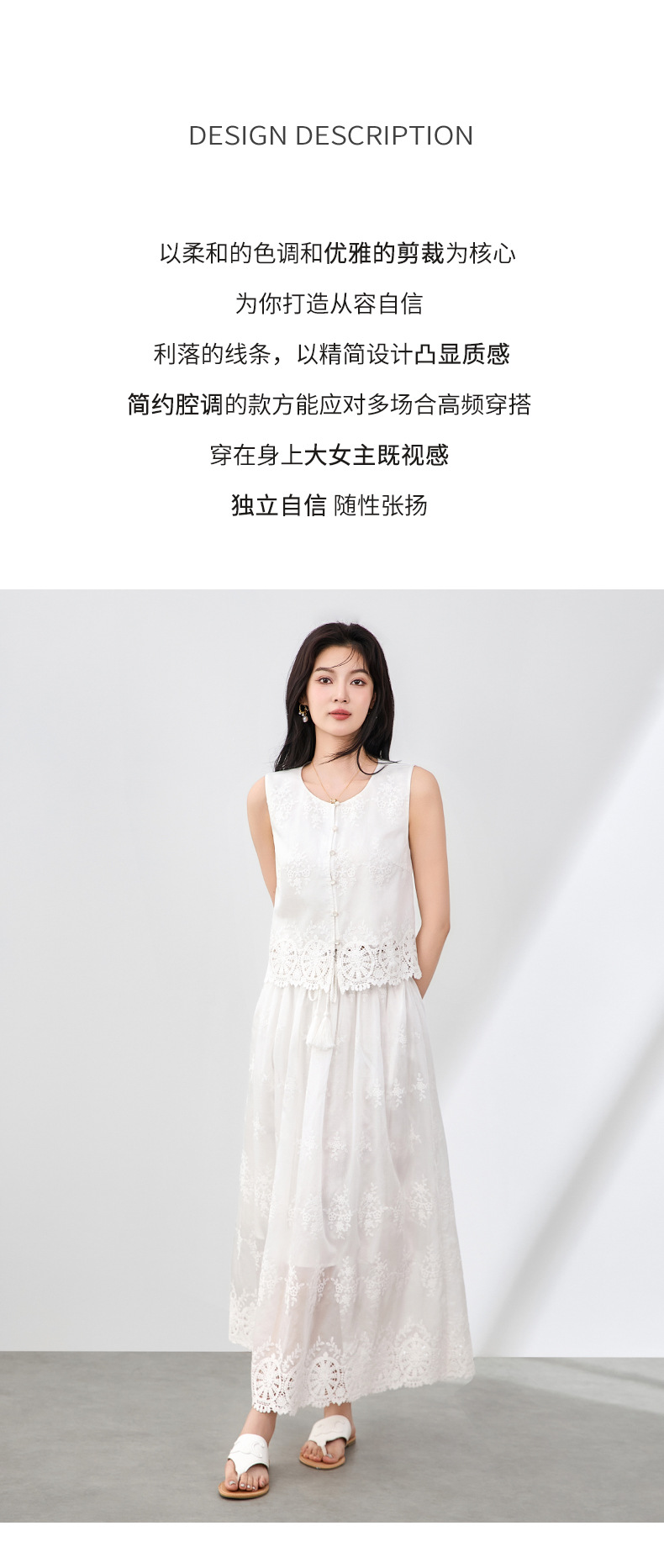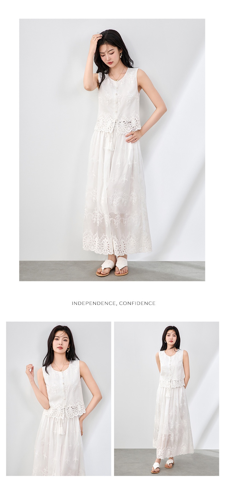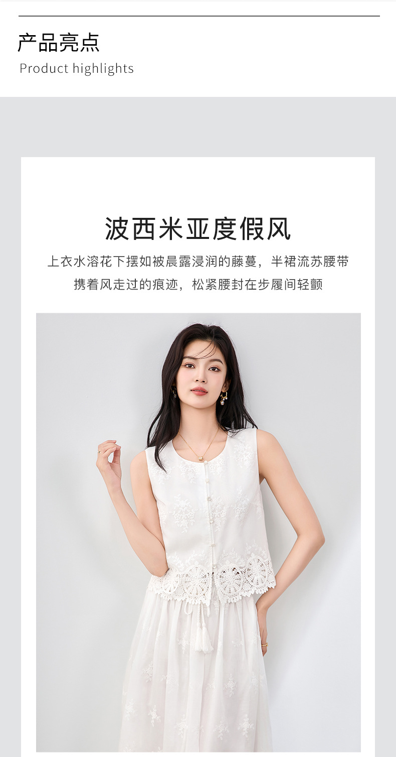 「高货wl」全新升级【铂金会员367/天猫499/差价132】(99611)洛诗琳重磅高货镂空刺绣无袖上衣大摆度假风长裙两件套装