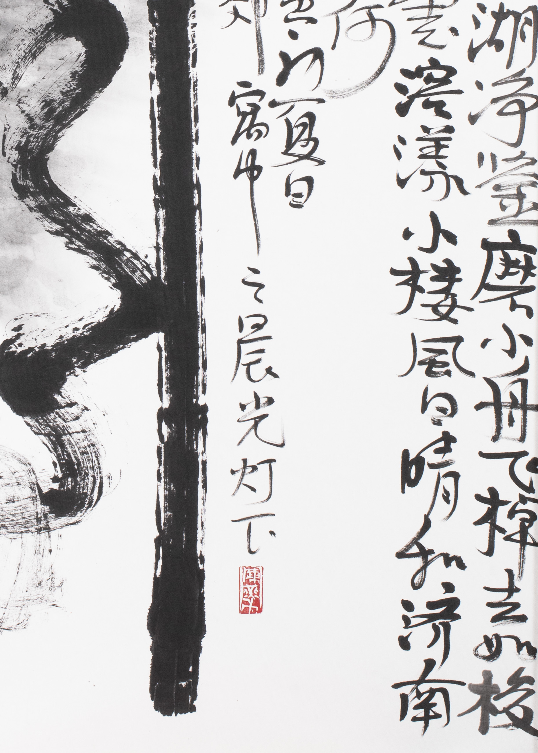 墨色浓淡布局巧妙,以淡墨晕染,如晚湖 氤氲的水汽,虚实轻重均衡。