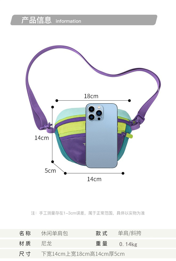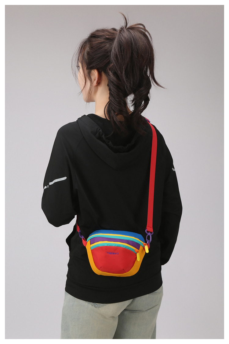 丁摩 时尚多巴胺撞色腰包男女同款户外运动登山便携防水尼龙斜挎胸包5ZF-3005