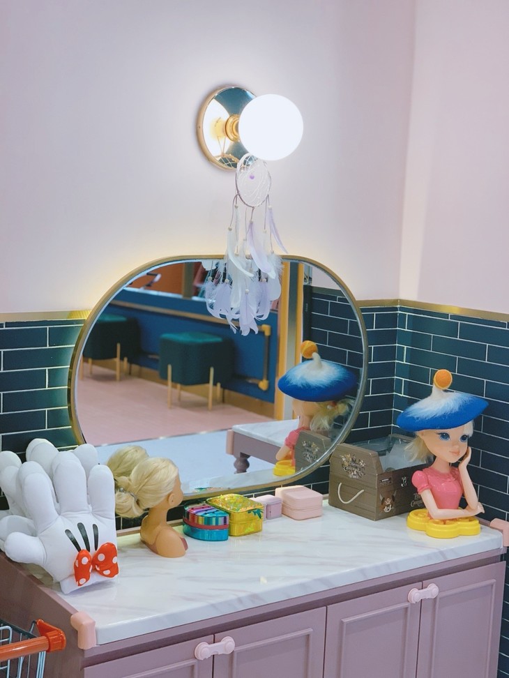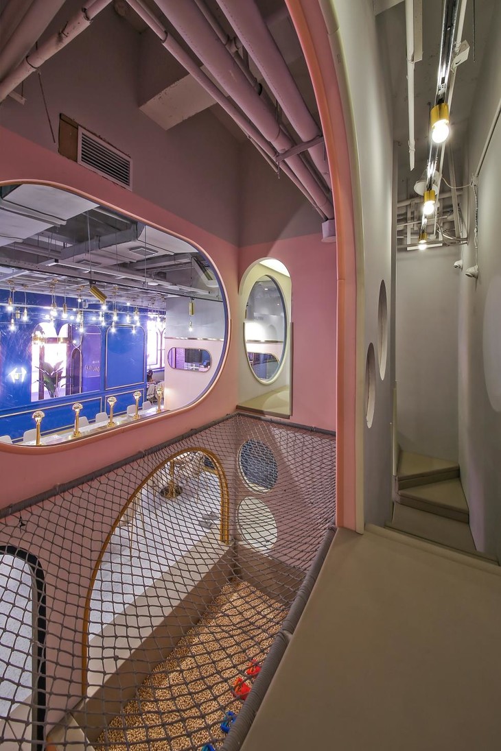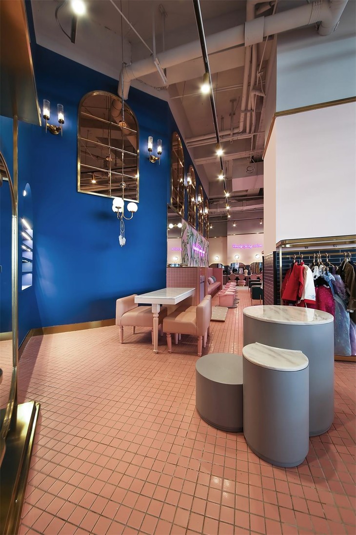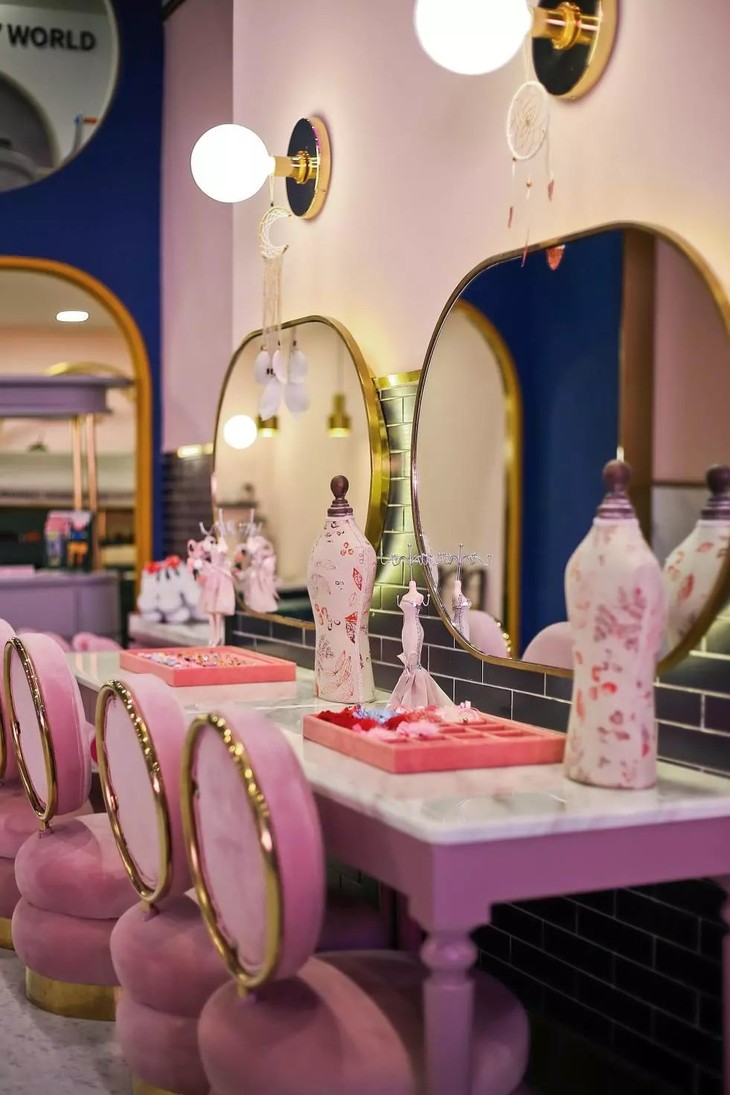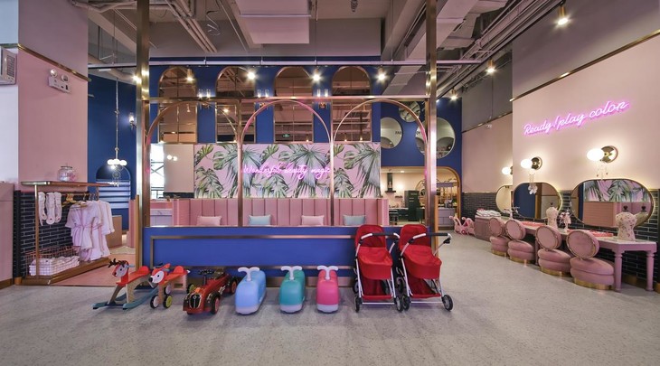 整个店以蓝粉色为主色调,带着高贵的金色,特别有高级感,相比起五颜六色的儿童游乐场,简直提升了好几个level!随便一拍都是宝宝写真~