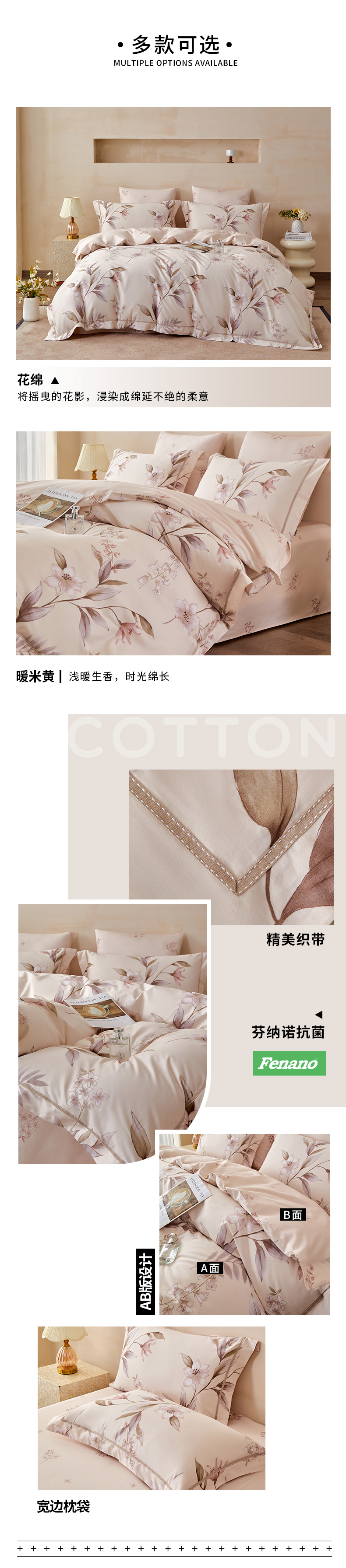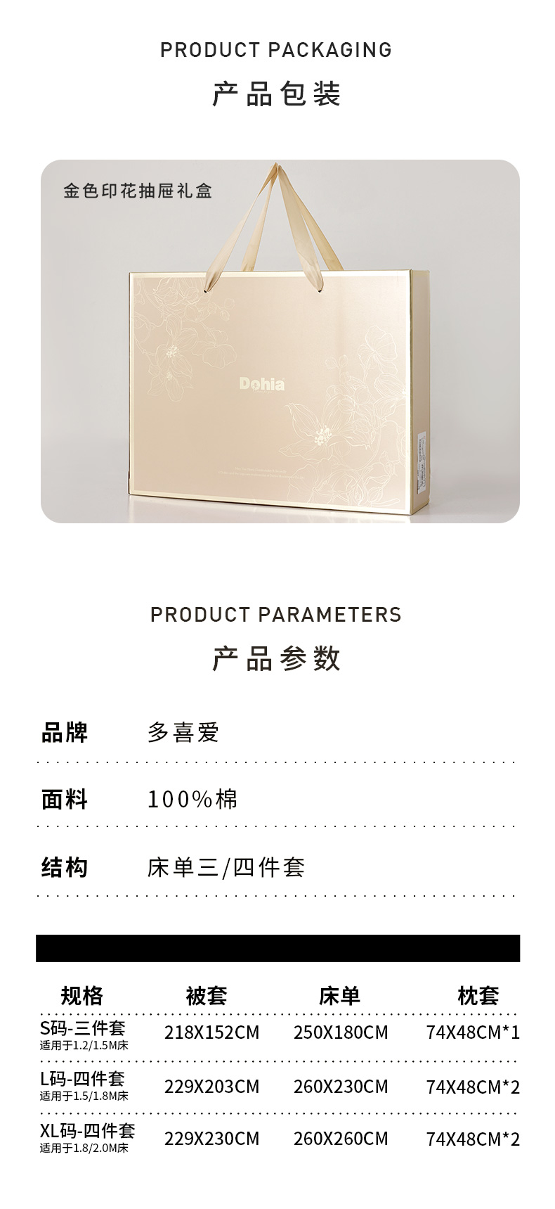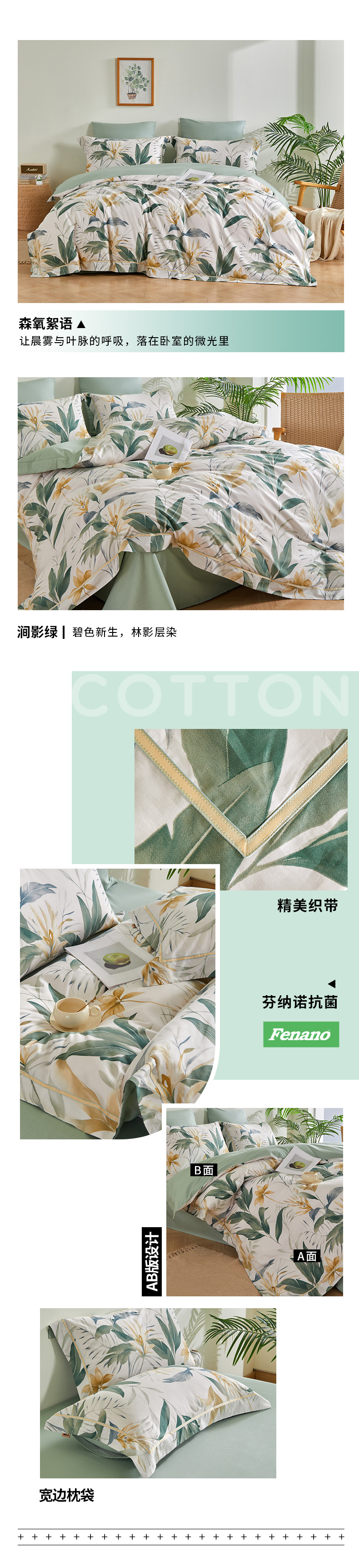 多喜爱 全棉斜纹印花套件 森氧絮语/花绵【新疆棉】【精美织带】【芬纳诺抗菌】【宽边枕袋】【金色礼盒包装】柔软亲肤 吸湿透气 耐洗耐磨 不易褪色