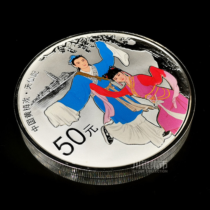 规格:150克彩色银质为精制币,含纯银150克,直径70毫米,面额50元,成色99.9%,最大发行量6000枚。