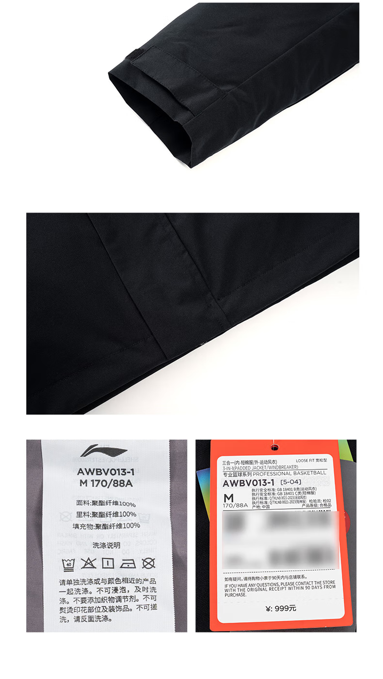 李宁(LI-NING)三合一外套男风衣冬季2025新款CBA篮球防风保暖运动服AWBV013