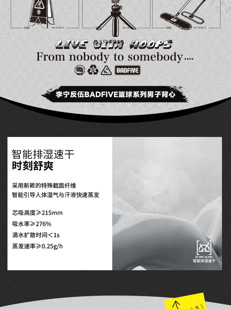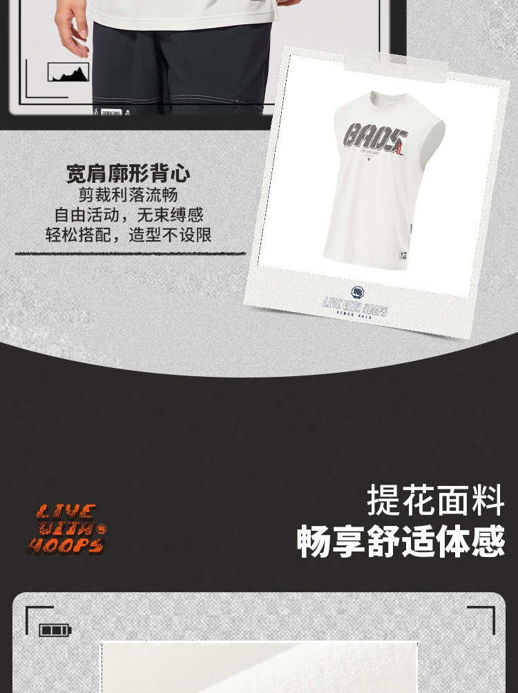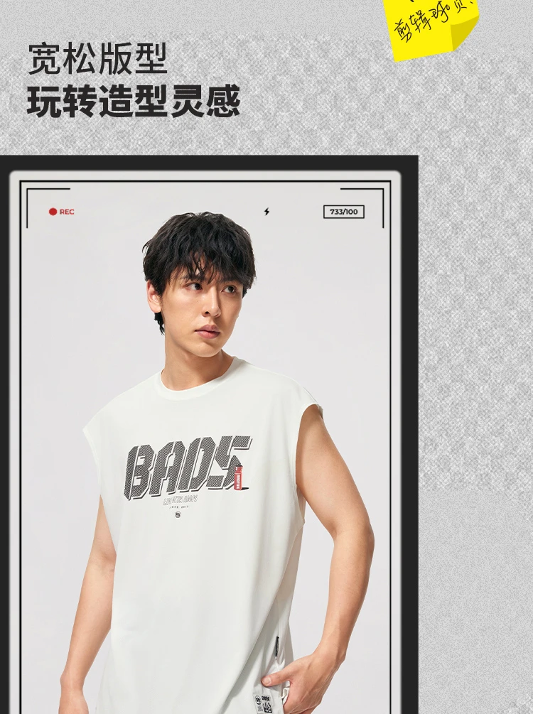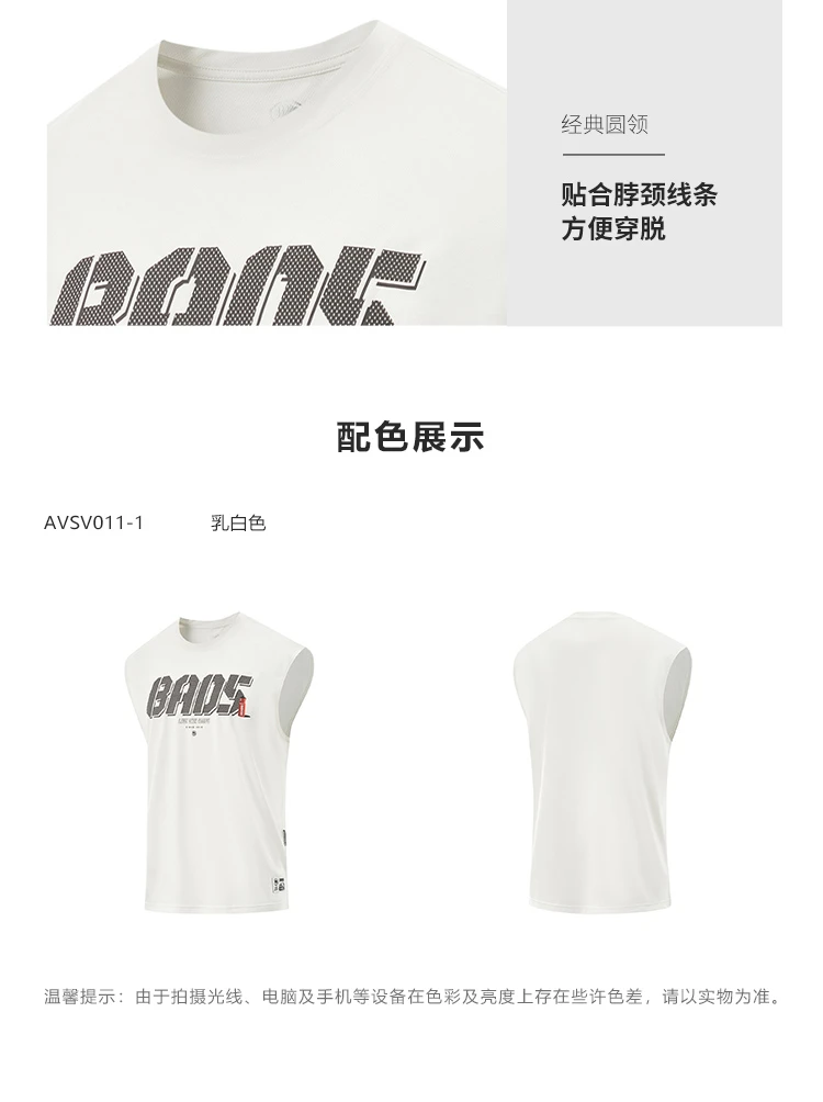 李宁反伍BADFIVE男子排湿速干宽松背心AVSV011