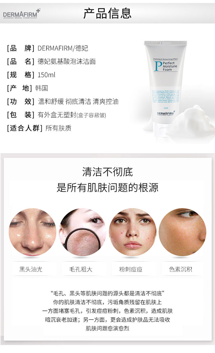 德妃氨基酸潔面乳150g韩国皮肤科专供品牌DERMAFIRM 德妃温和不刺激洗面奶🍀 植物提取配方,特别特别的温和,敏感肌肤专用,洗后不紧绷,不会刺激皮肤,可以用来卸妆。👻 👻 👻 建议各位美妞洁面的时候选择较温和一些的洗脸产品,清洁力太高的话,会对角质层较薄薄和敏感的肌肤造成损伤😘 洗后高度保湿,清爽不紧绷,皮肤很有弹性,真心特别好用,韩国美容院,皮肤科大力推荐的一款贵妃级的洗面奶💗
