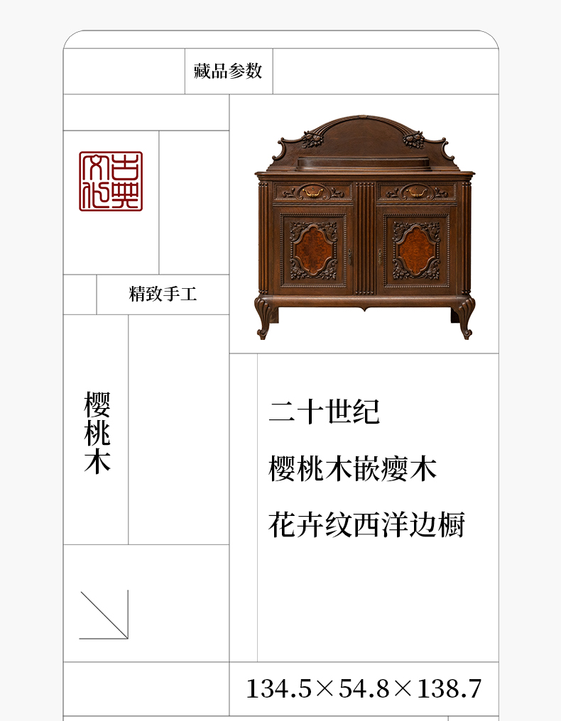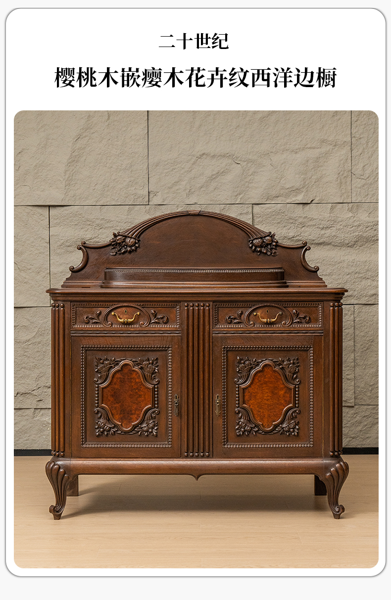 二十世纪 樱桃木嵌瘿木花卉纹西洋边橱