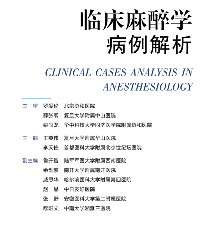 2018年新书:临床麻醉学病例解析 王英伟、李天佐主编(人民卫生出版社)