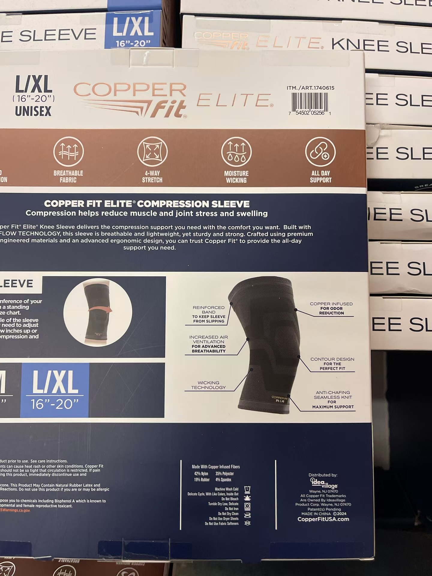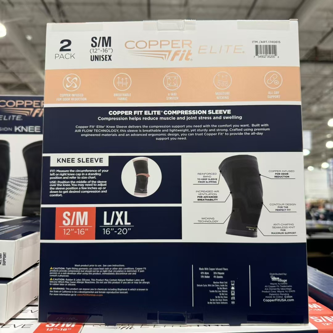 到手价159元 L/XL码 Copper Fit Elite 空气压缩护膝 男女通用舒适运动护膝2件装 美国代购,无中文标签,介意慎拍