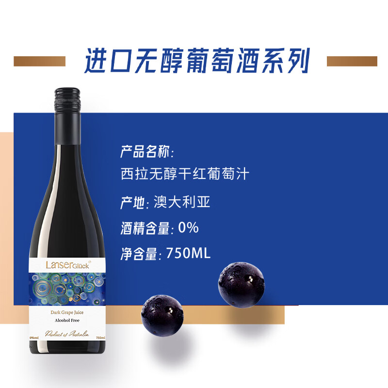 【选购2件158元】【同城】澳洲兰瑟幸福红西拉无醇葡萄酒750ml