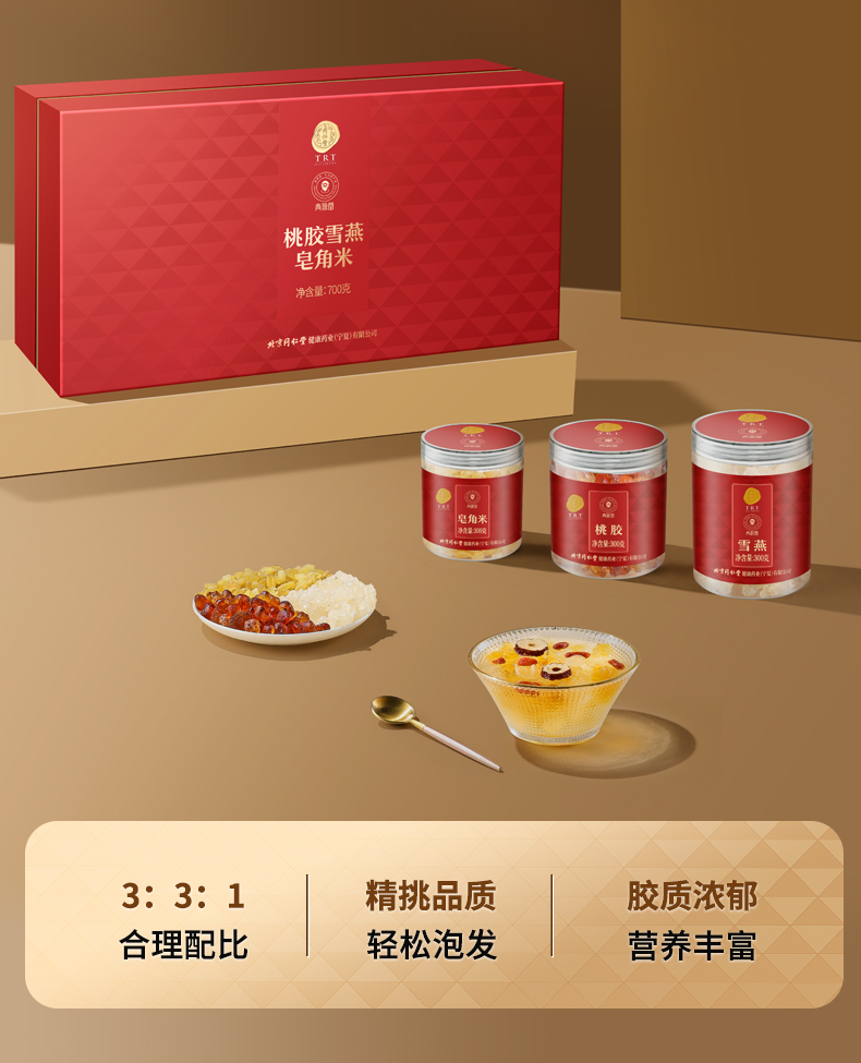 【正宗同仁堂品牌】北京同仁堂 青源堂 桃胶雪燕皂角米礼盒700克 胶质浓稠 香糯滋润 3:3:1合理配比SY