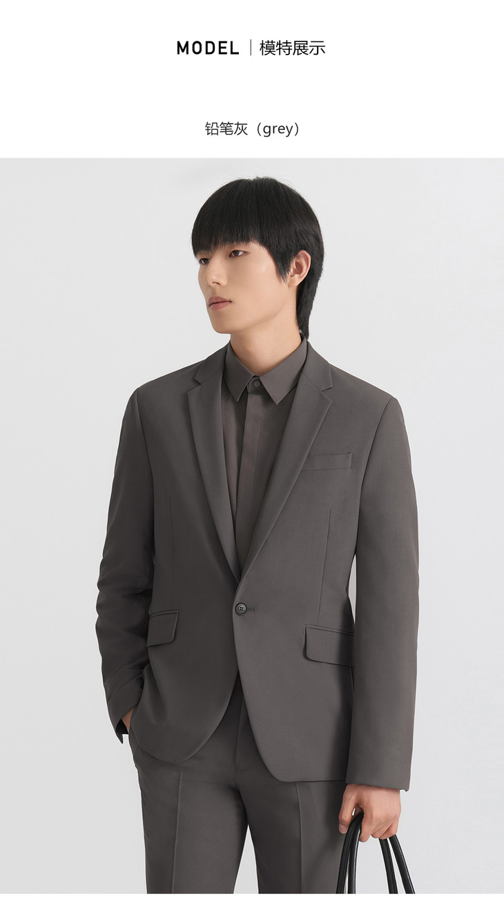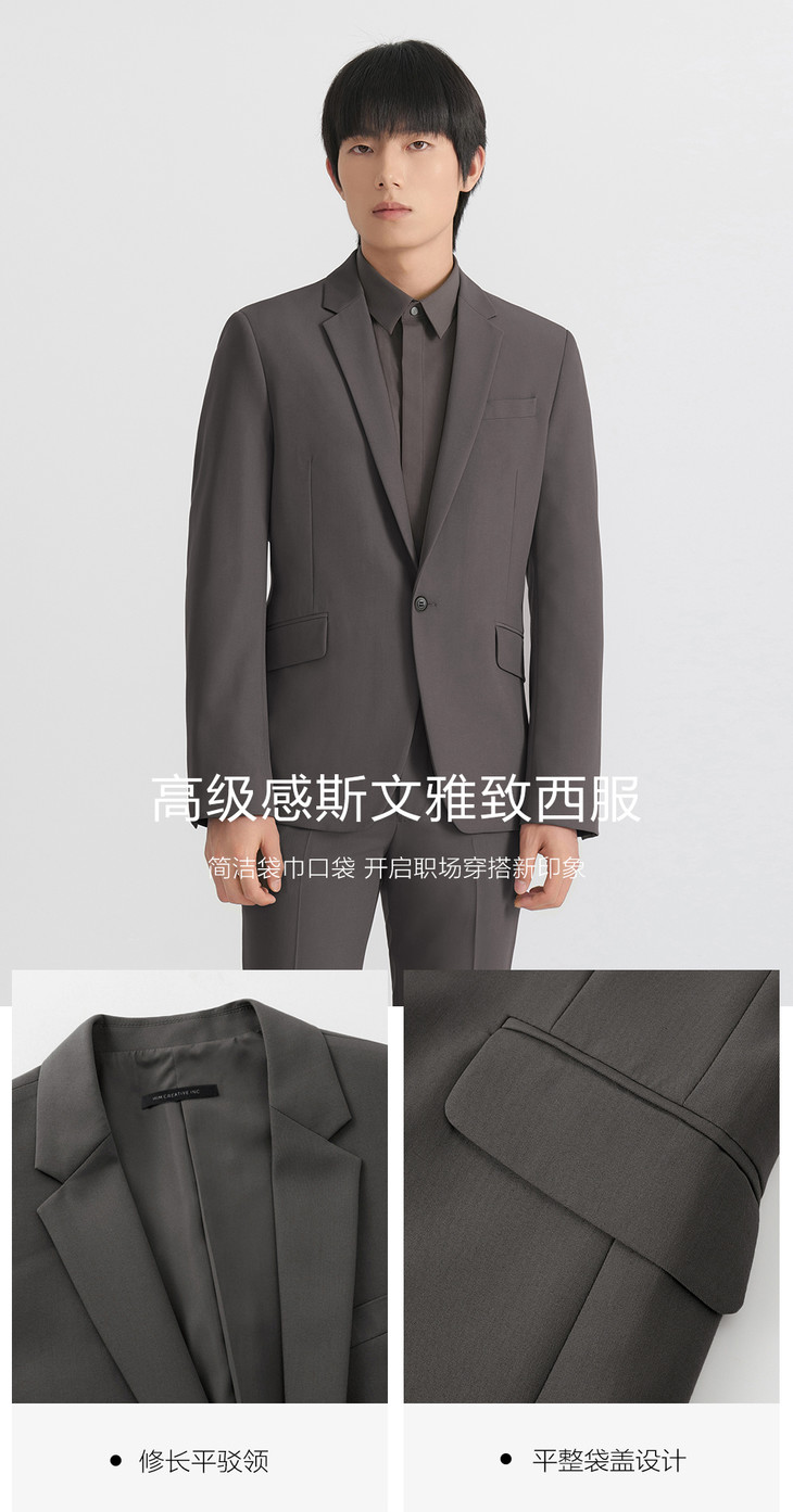 HIM漢崇 套装西装 男士通勤商务职业正装简约舒适深灰色修身西服