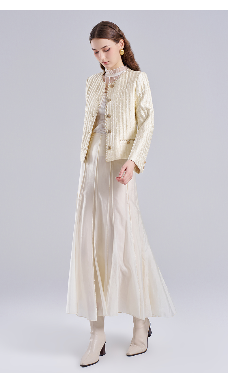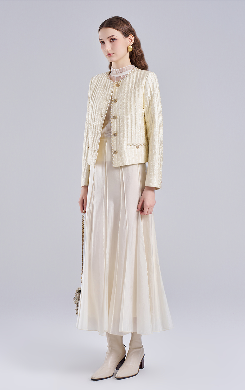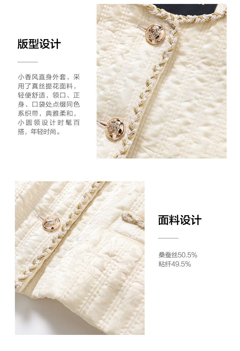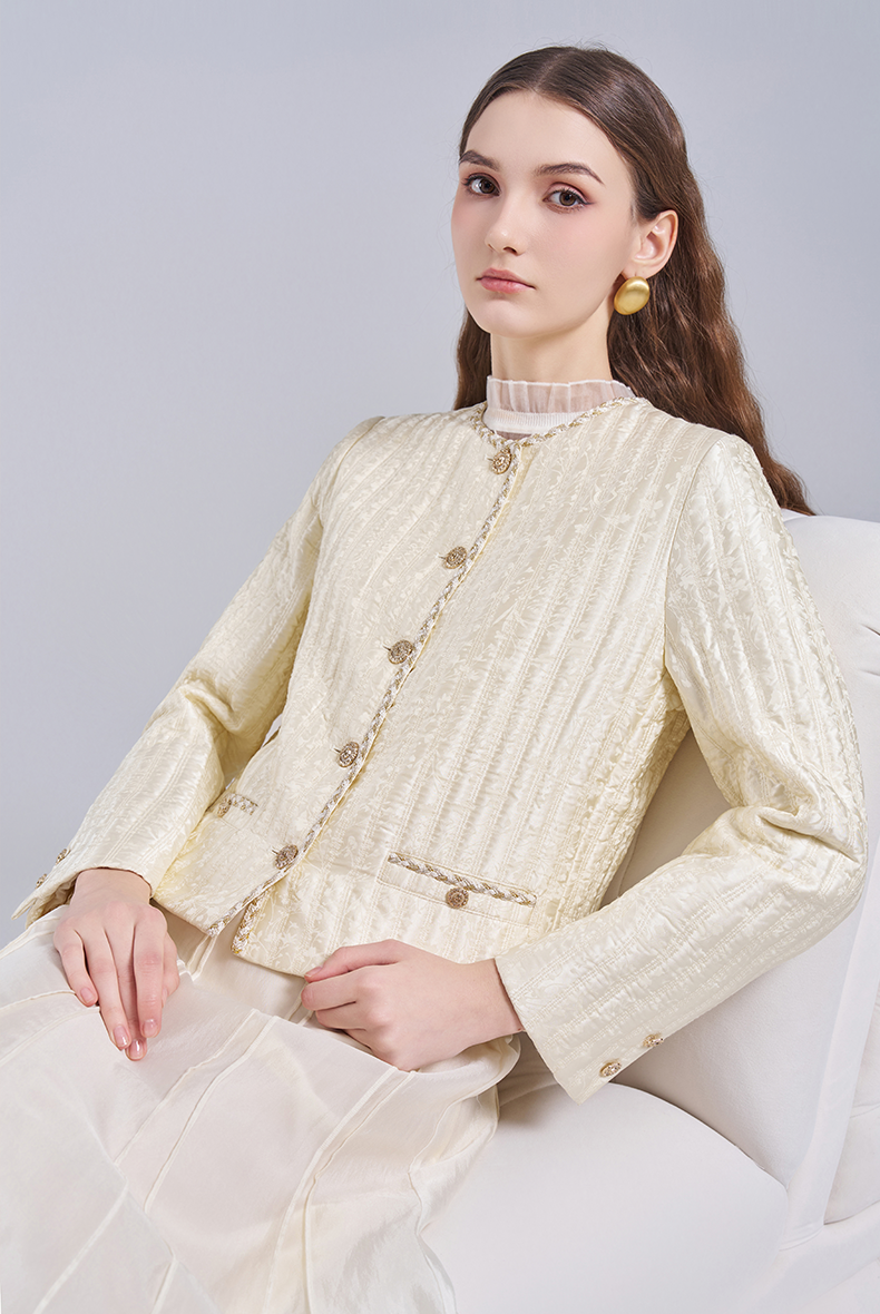 乔万尼小香风气质短款真丝提花棉服ET4T943