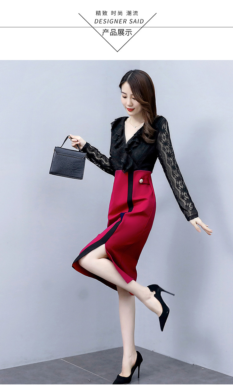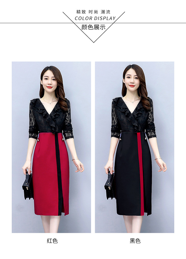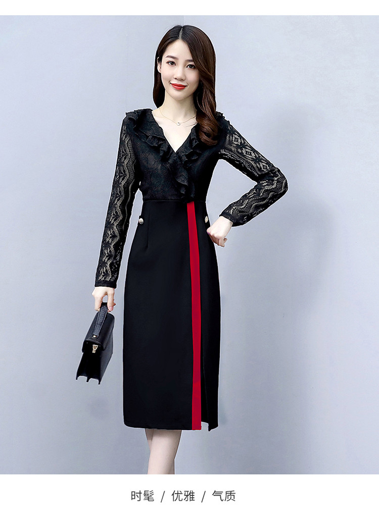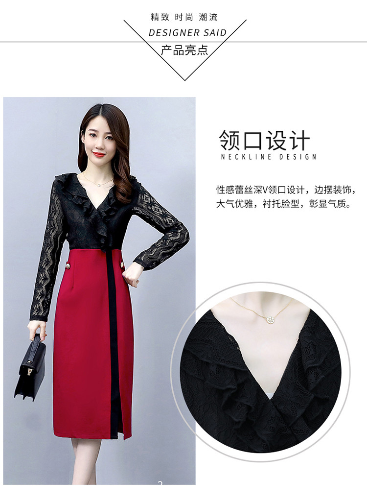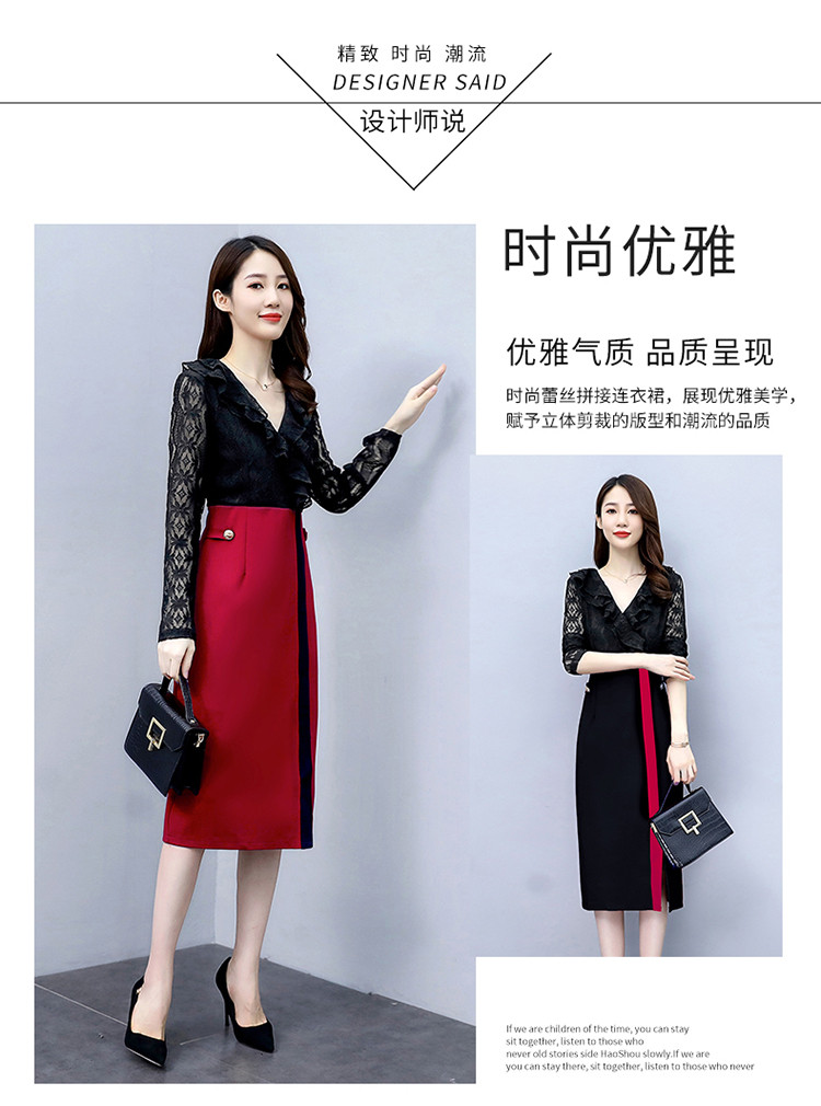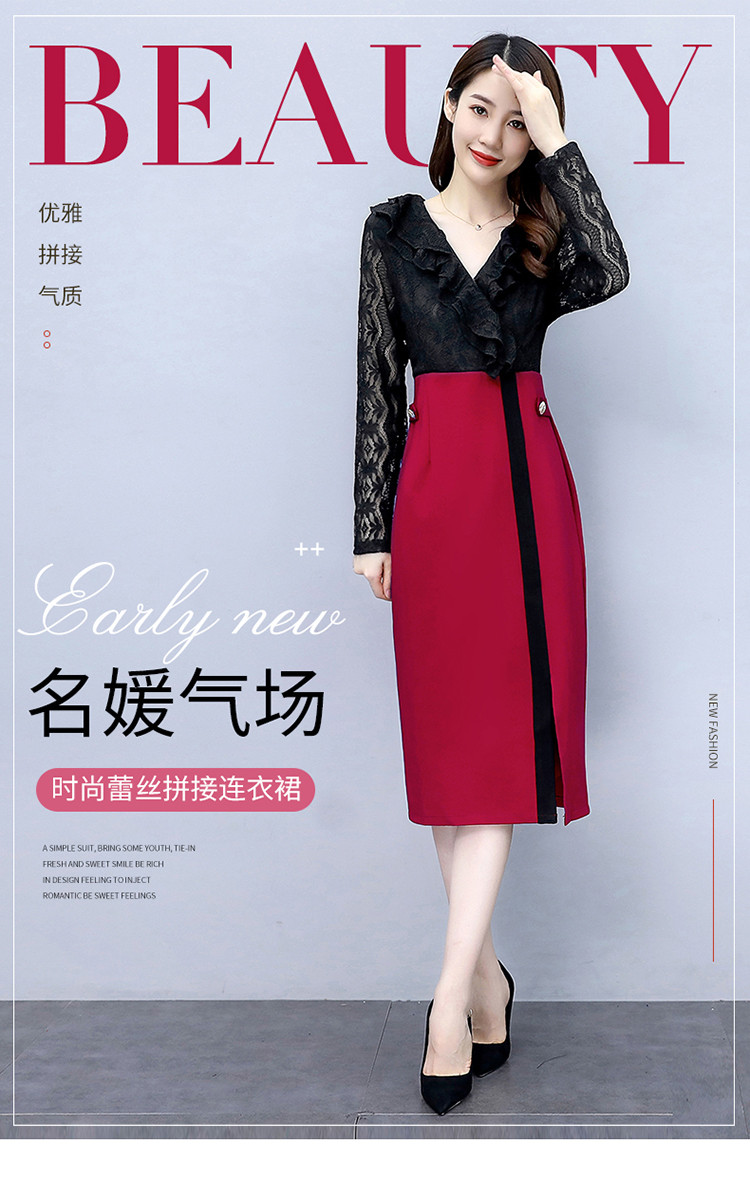 WZNH-MX2030秋季时尚优雅蕾丝拼接连衣裙