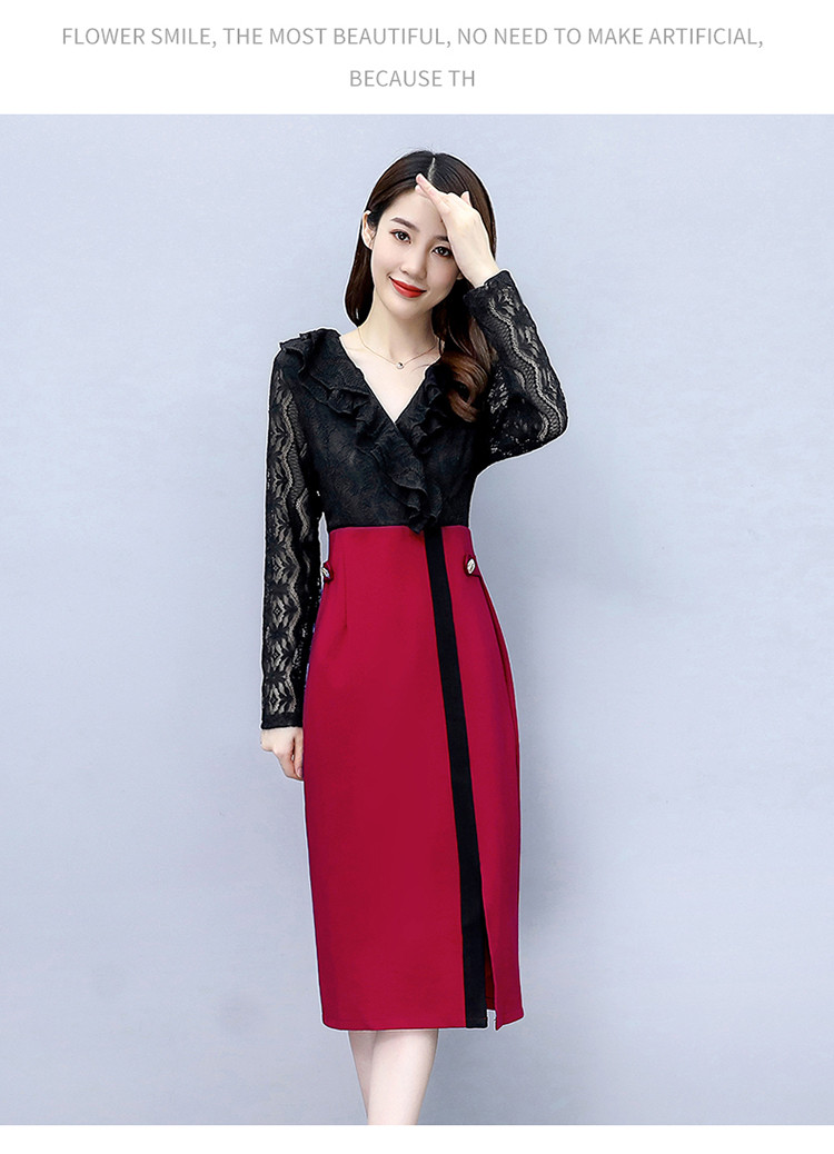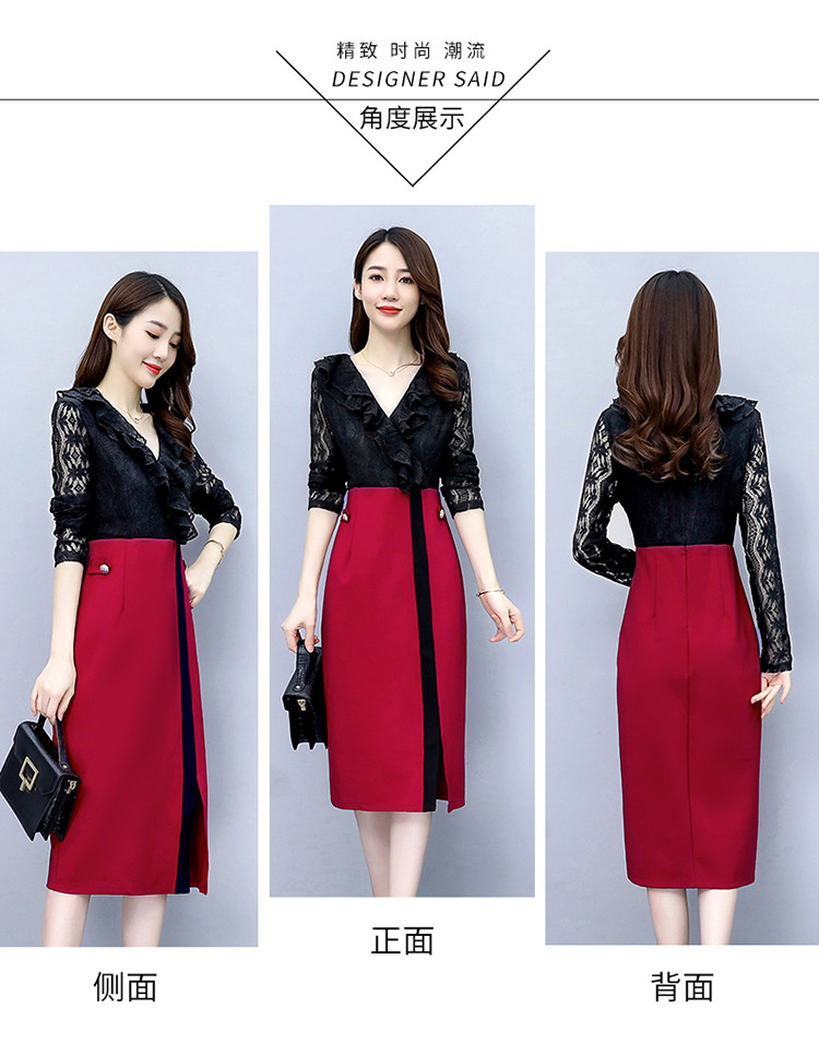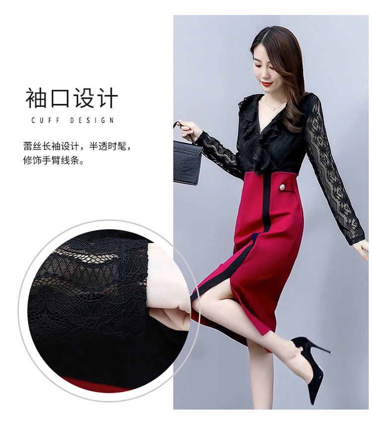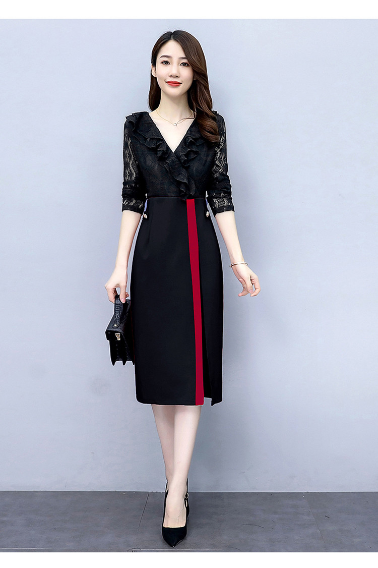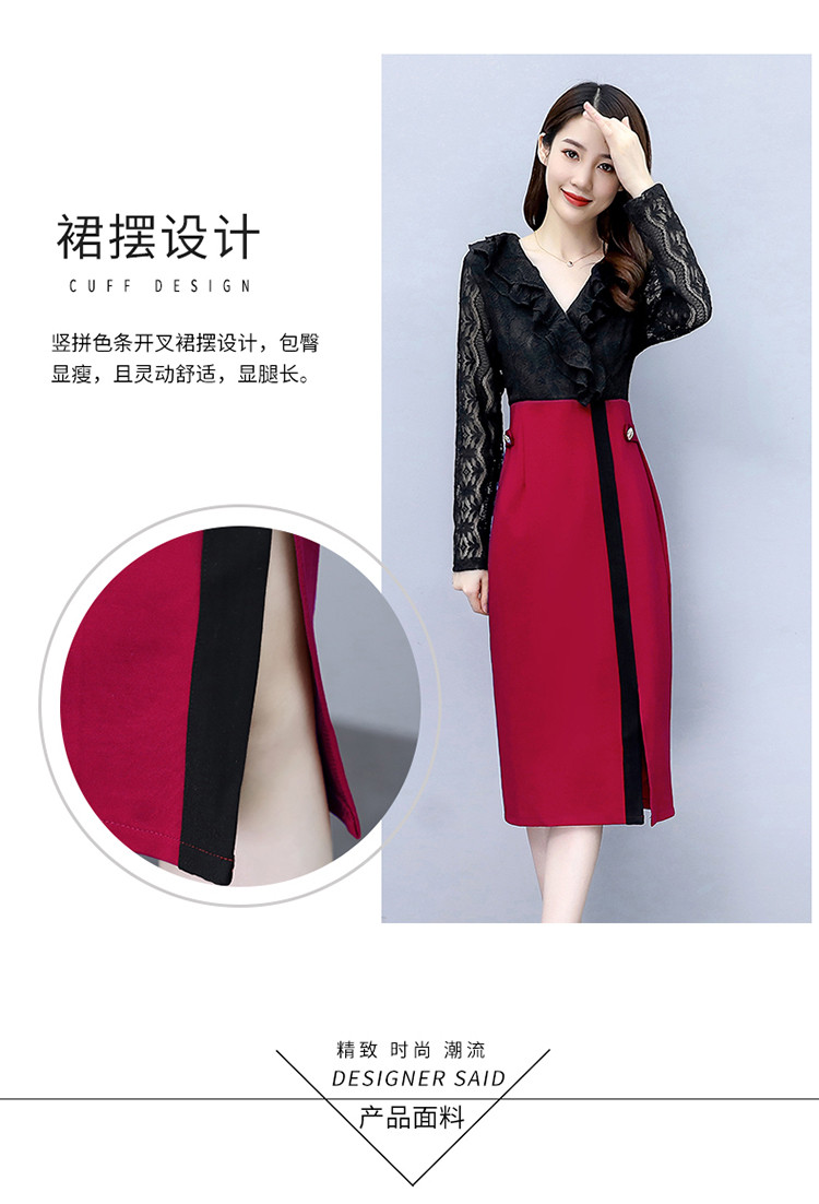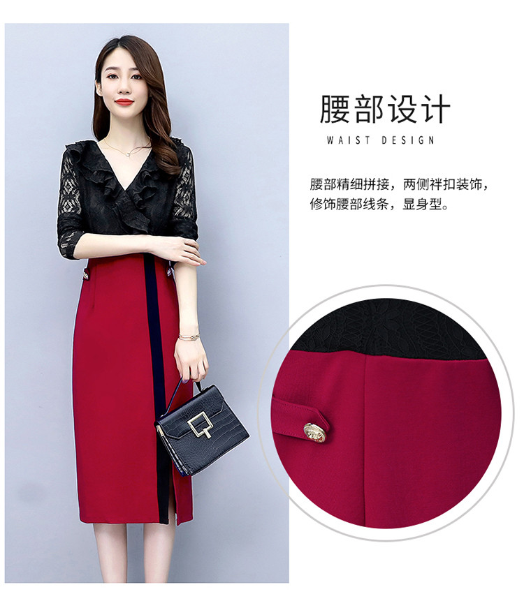 WZNH-MX2030秋季时尚优雅蕾丝拼接连衣裙