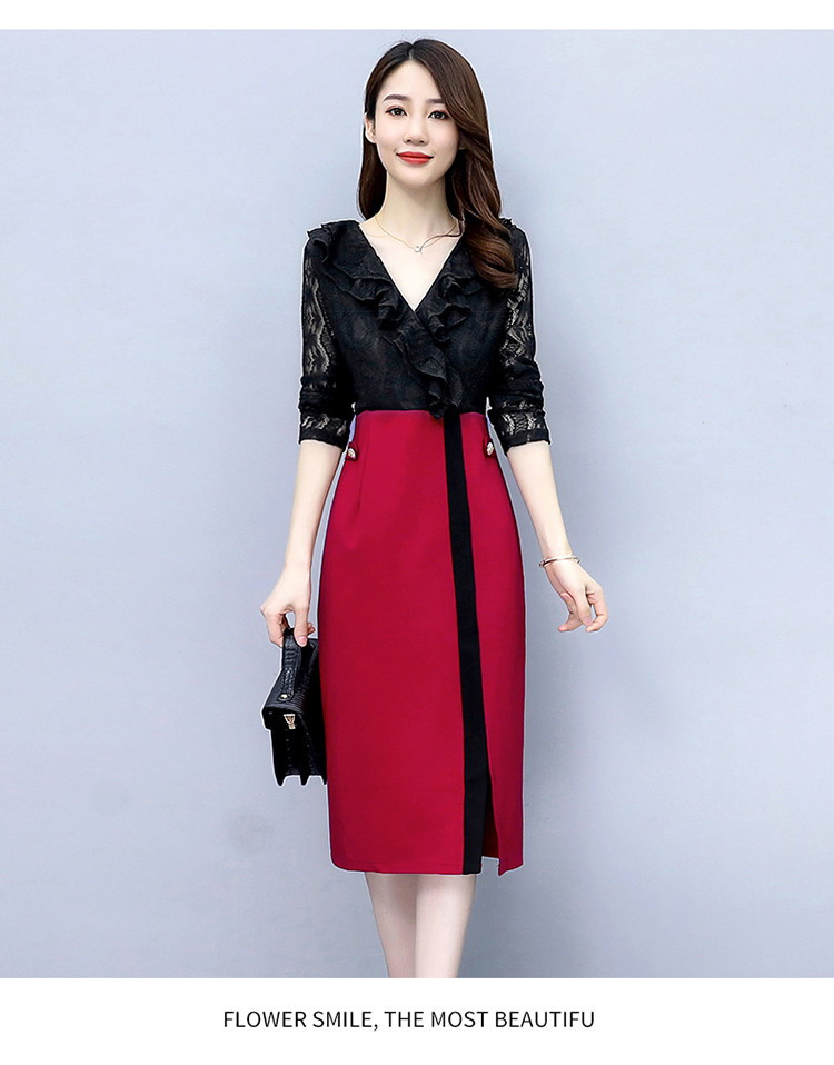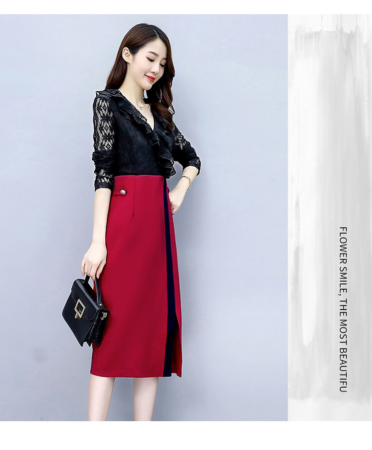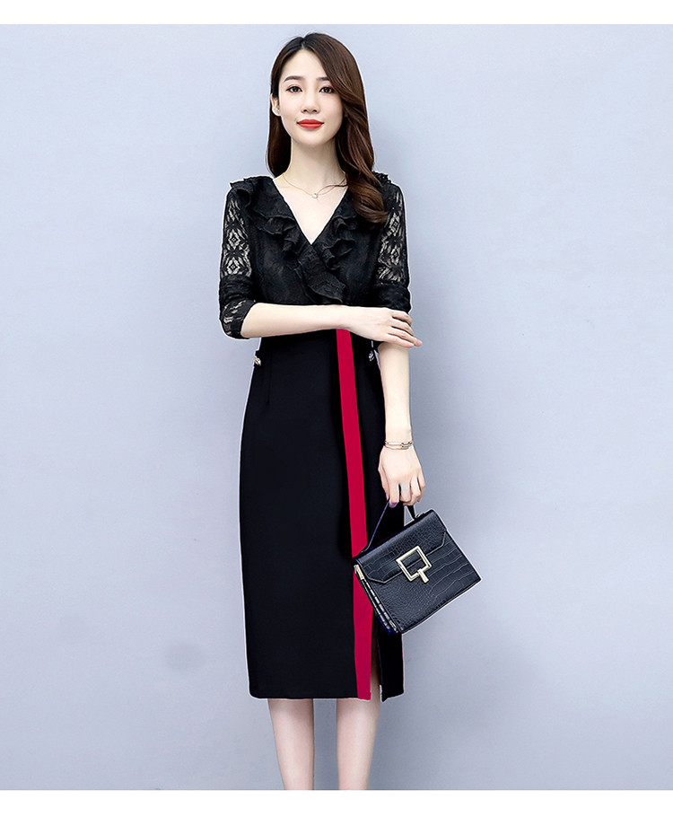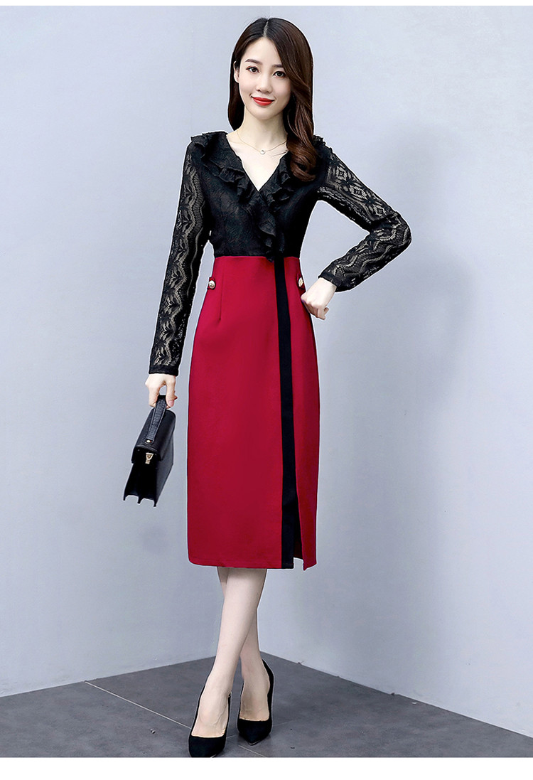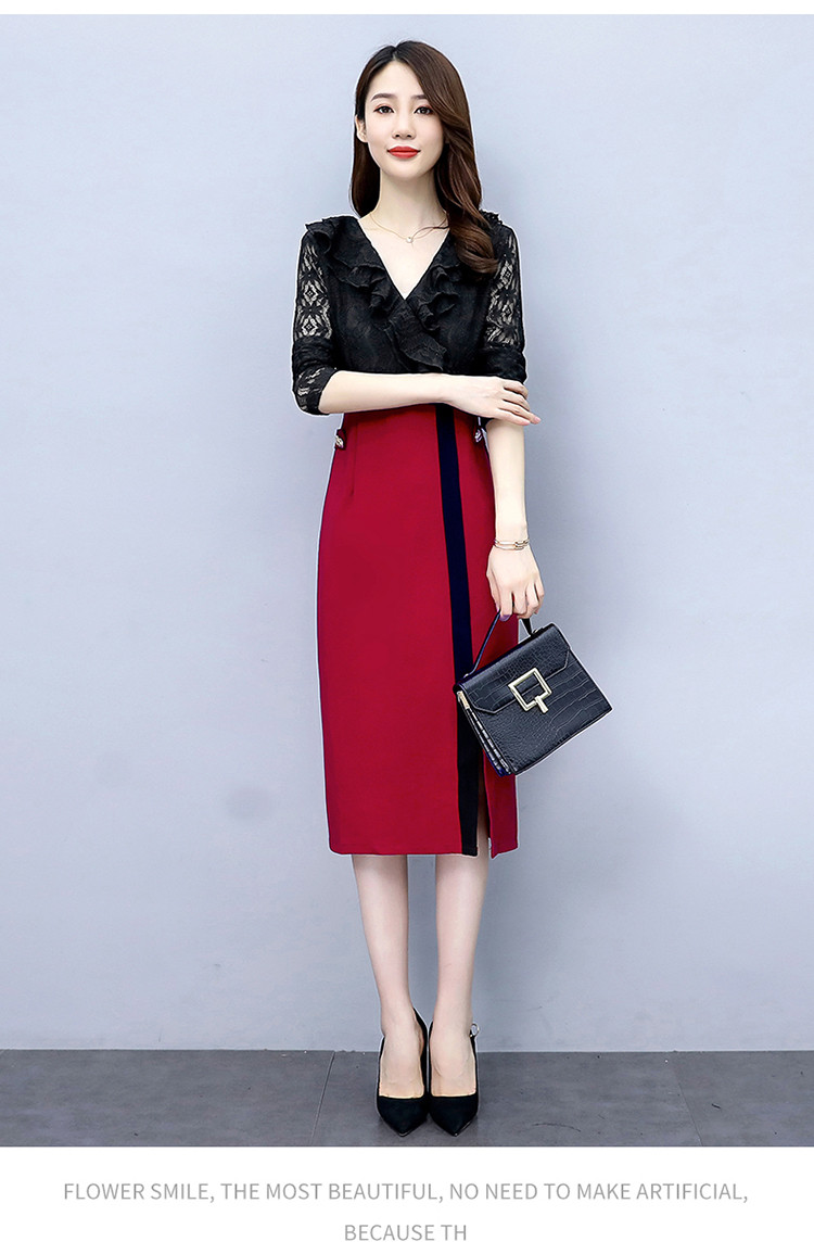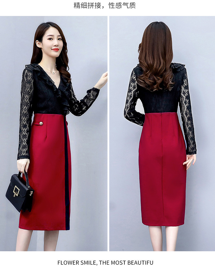 WZNH-MX2030秋季时尚优雅蕾丝拼接连衣裙