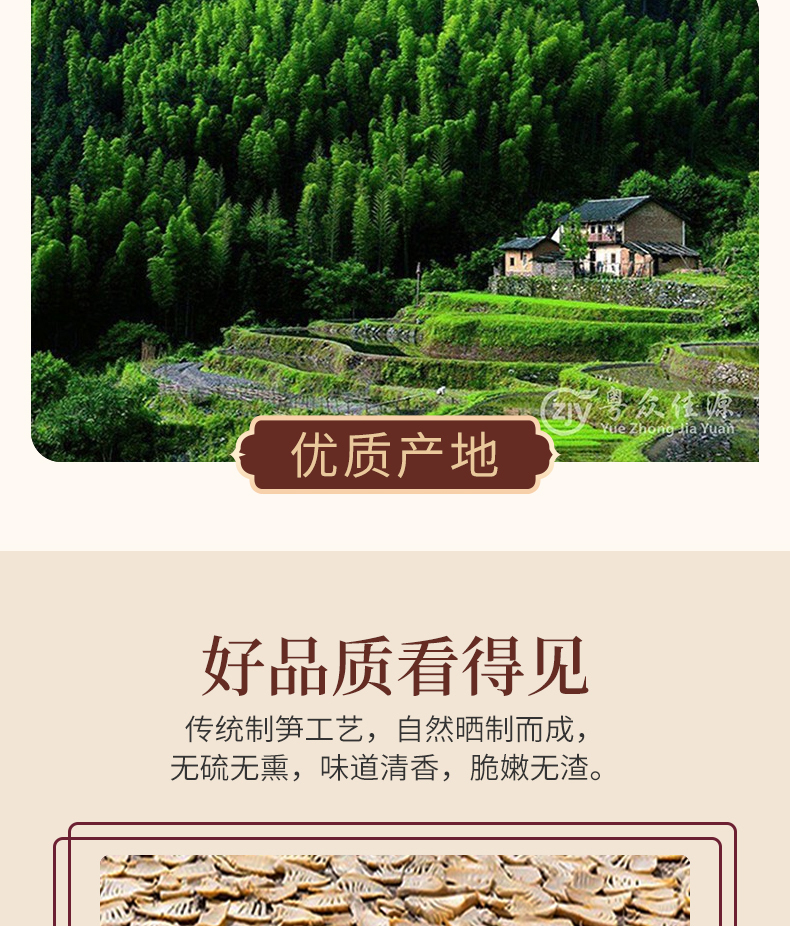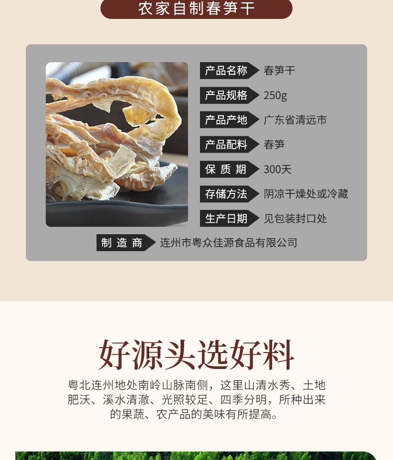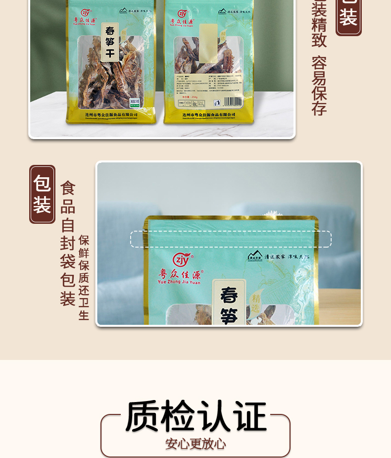 连州粤众佳源春笋干八边封自立袋250克蔬菜干制品