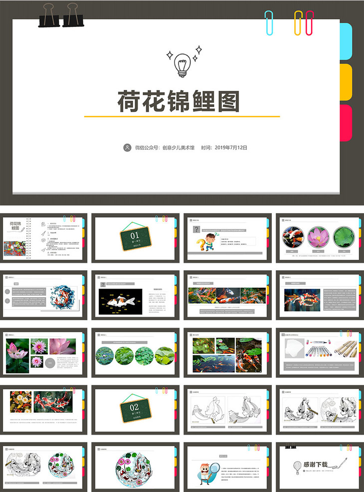 池塘里的水波泛起了涟漪,荷叶在阳光的照射下显得格外的翠绿,还有那荷花亭亭玉立的开放着。瞧!正有几只锦鲤在荷叶下游来游去!它们慢悠悠的在游着,感觉在享受着宁静的时光呢!那盛开的荷花和五彩的锦鲤,与荷塘里的水面交相呼应,真是“绿水润芙蓉 锦鲤恋碧涟”,好一幅《荷花锦鲤图》啊!现在我们把它画出来吧!