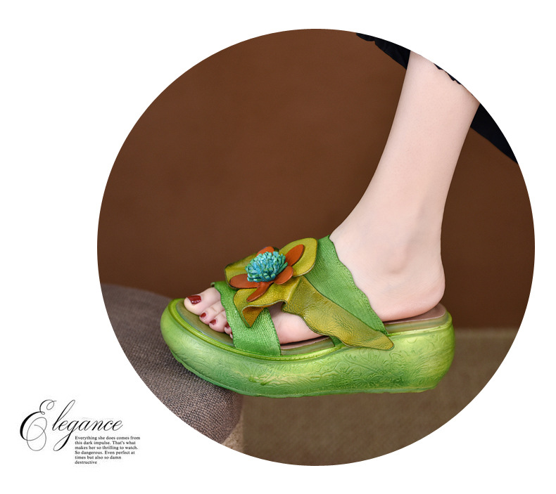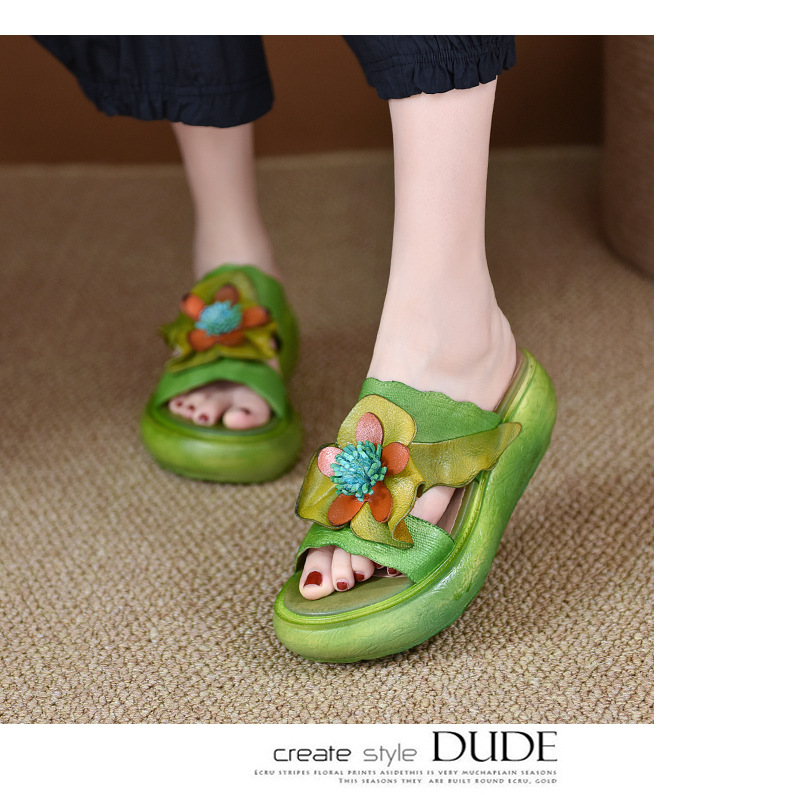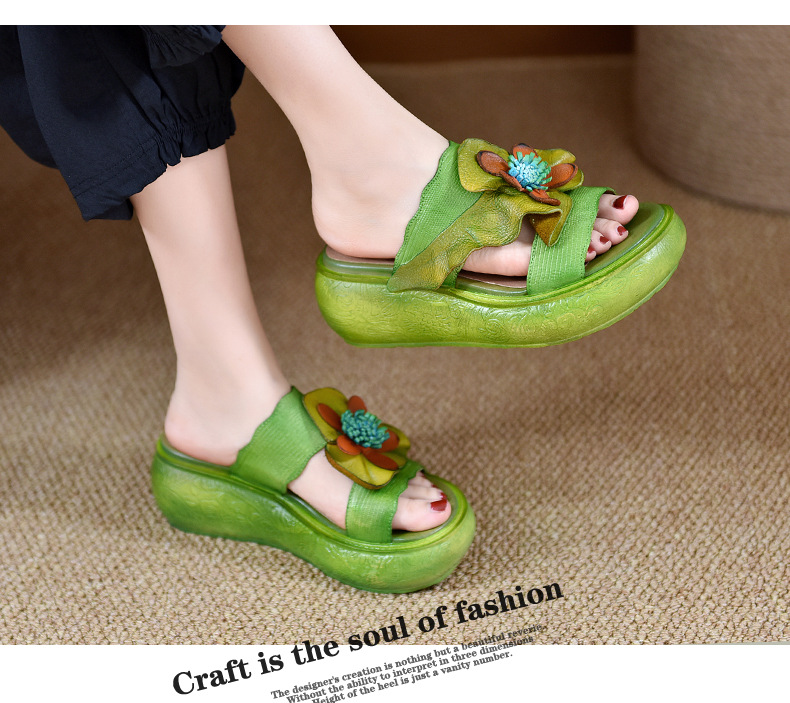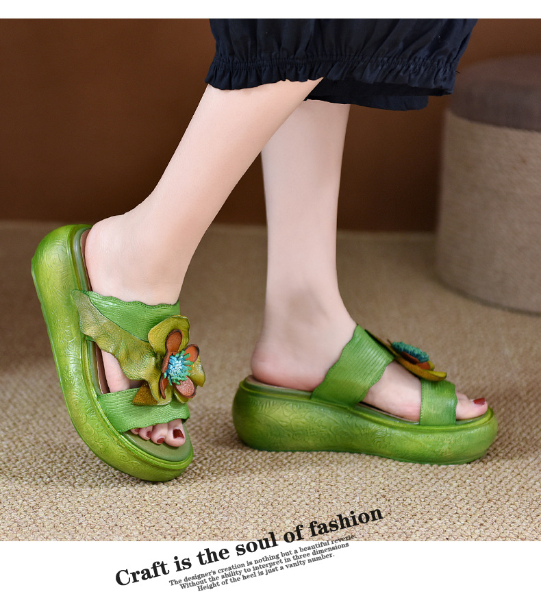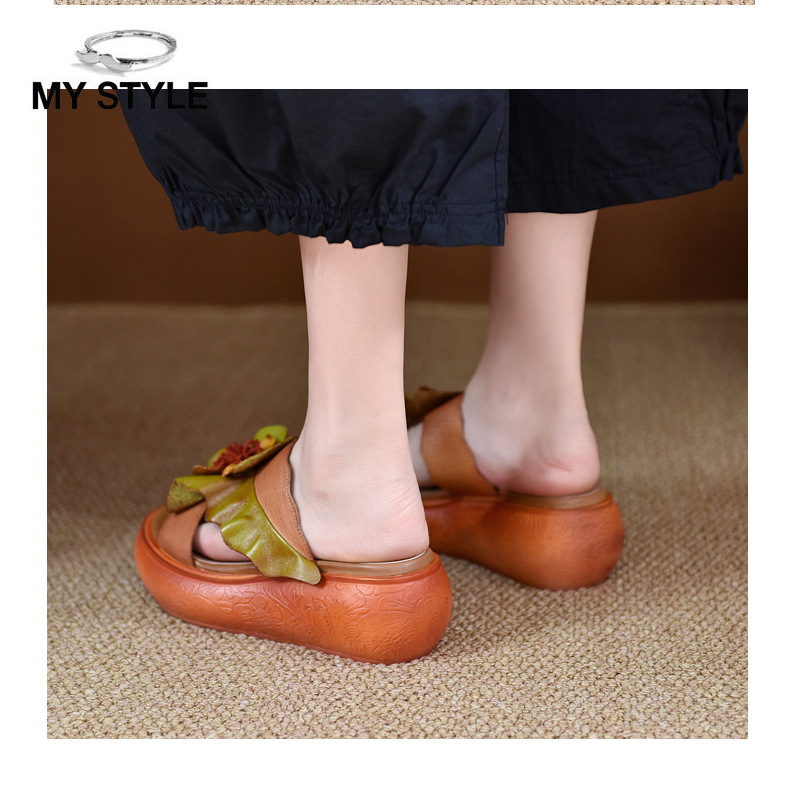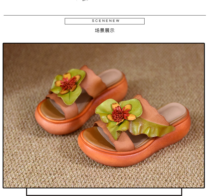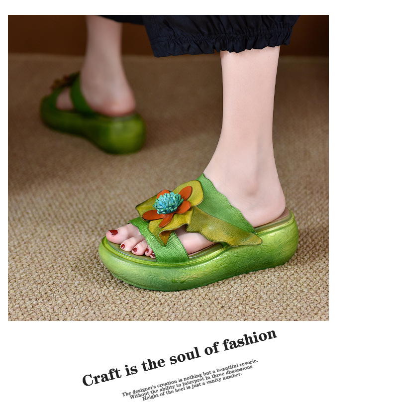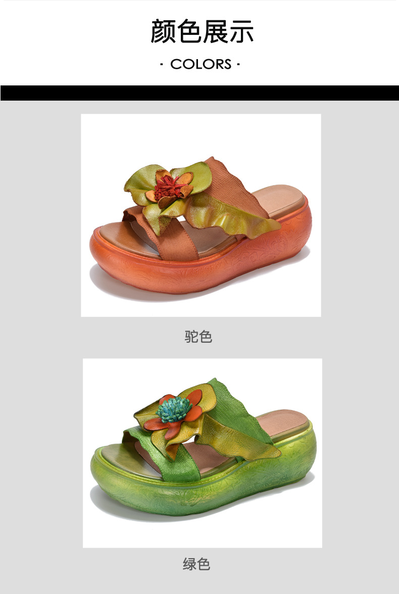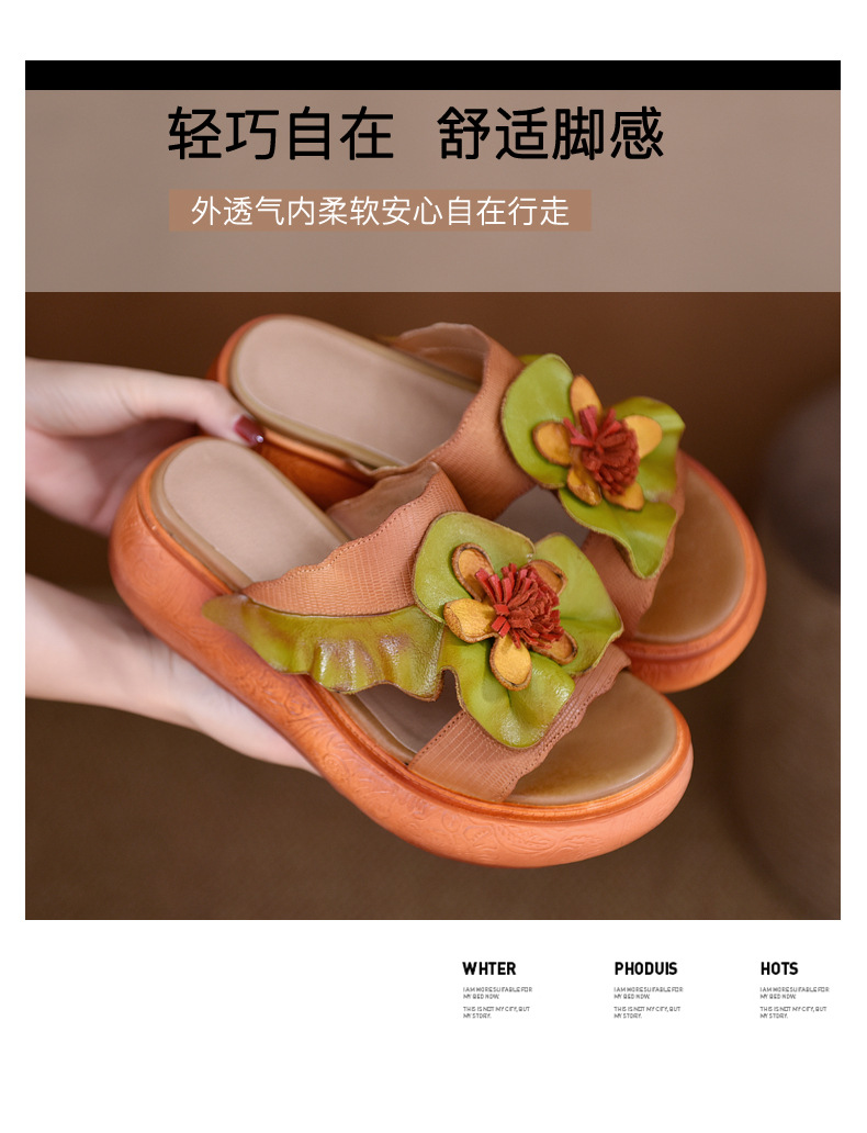 LL1816-A63 厚底拖鞋女夏季2023原创新款手工花一字凉拖鞋凉防滑