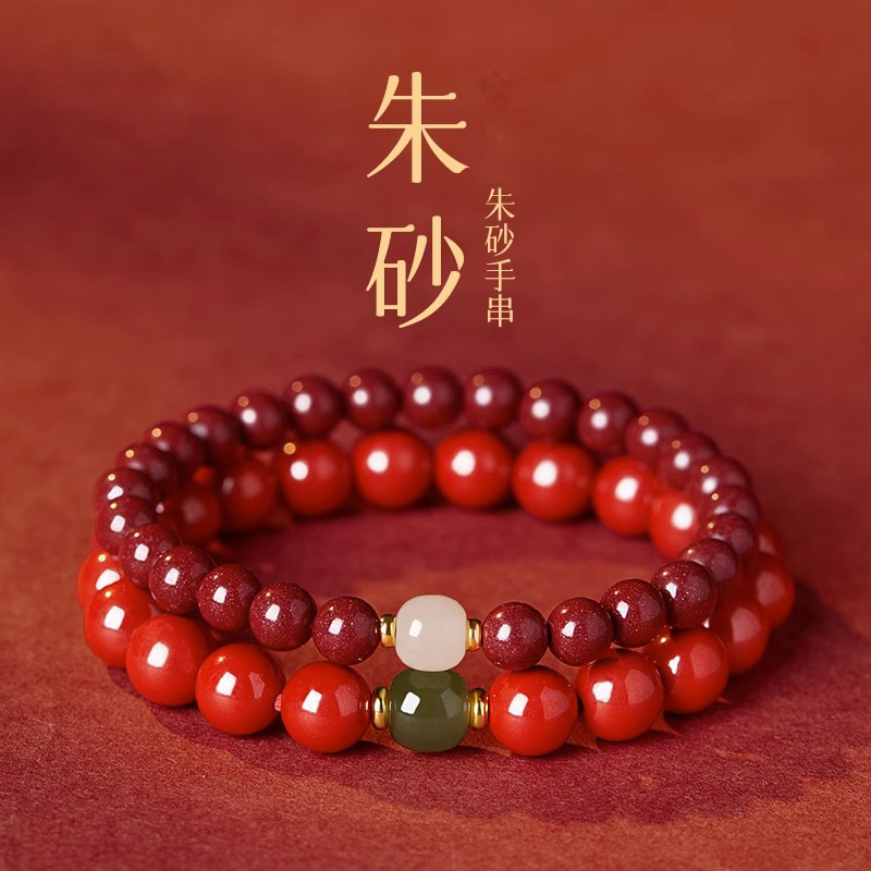 太清朱砂和田玉手串