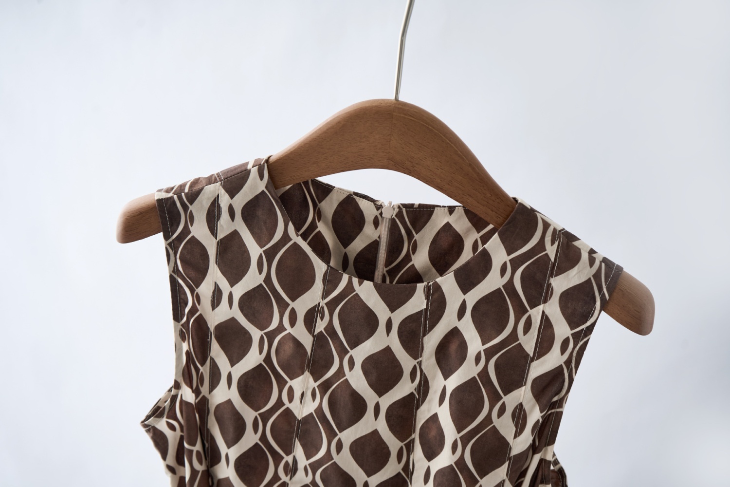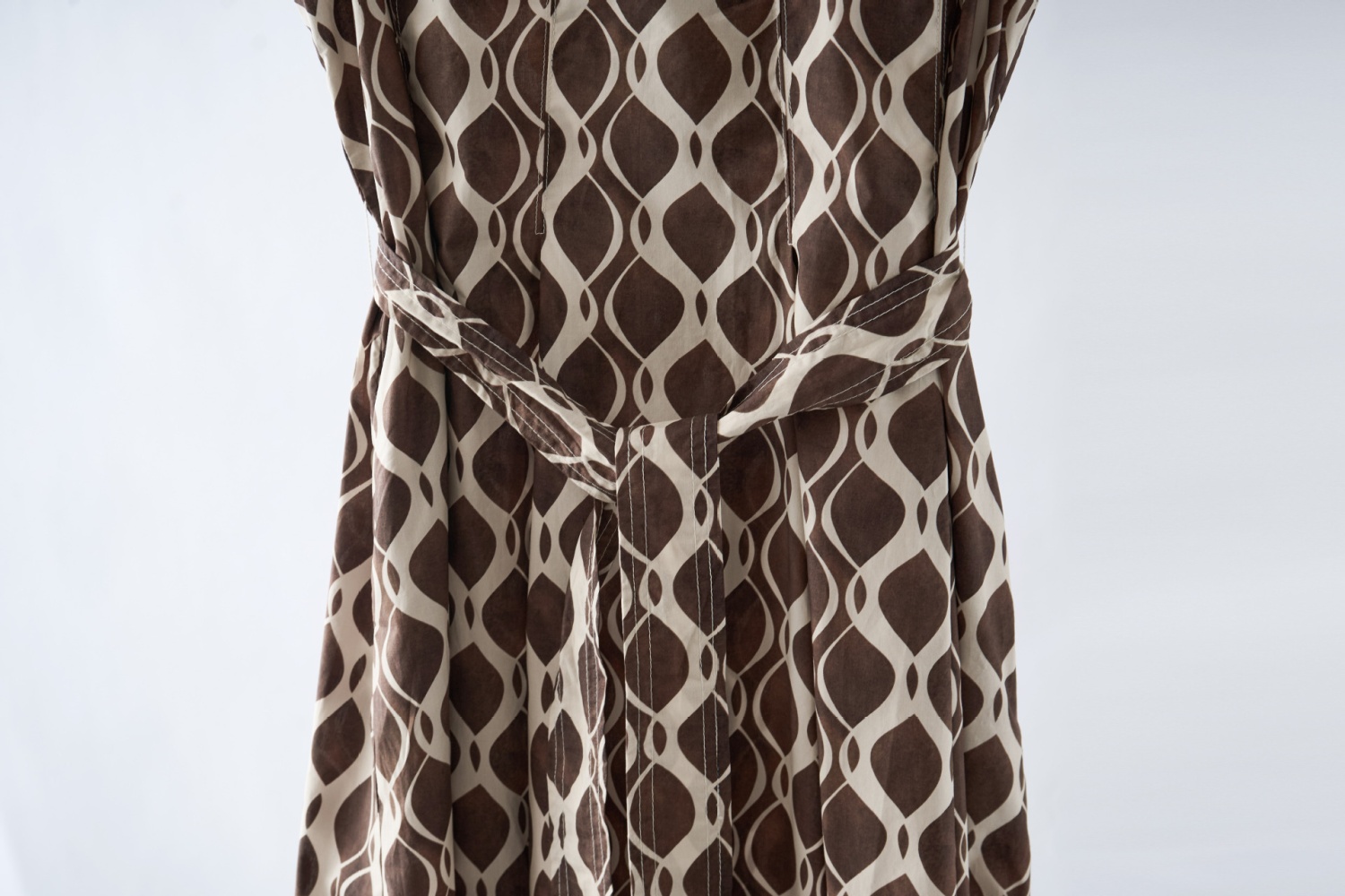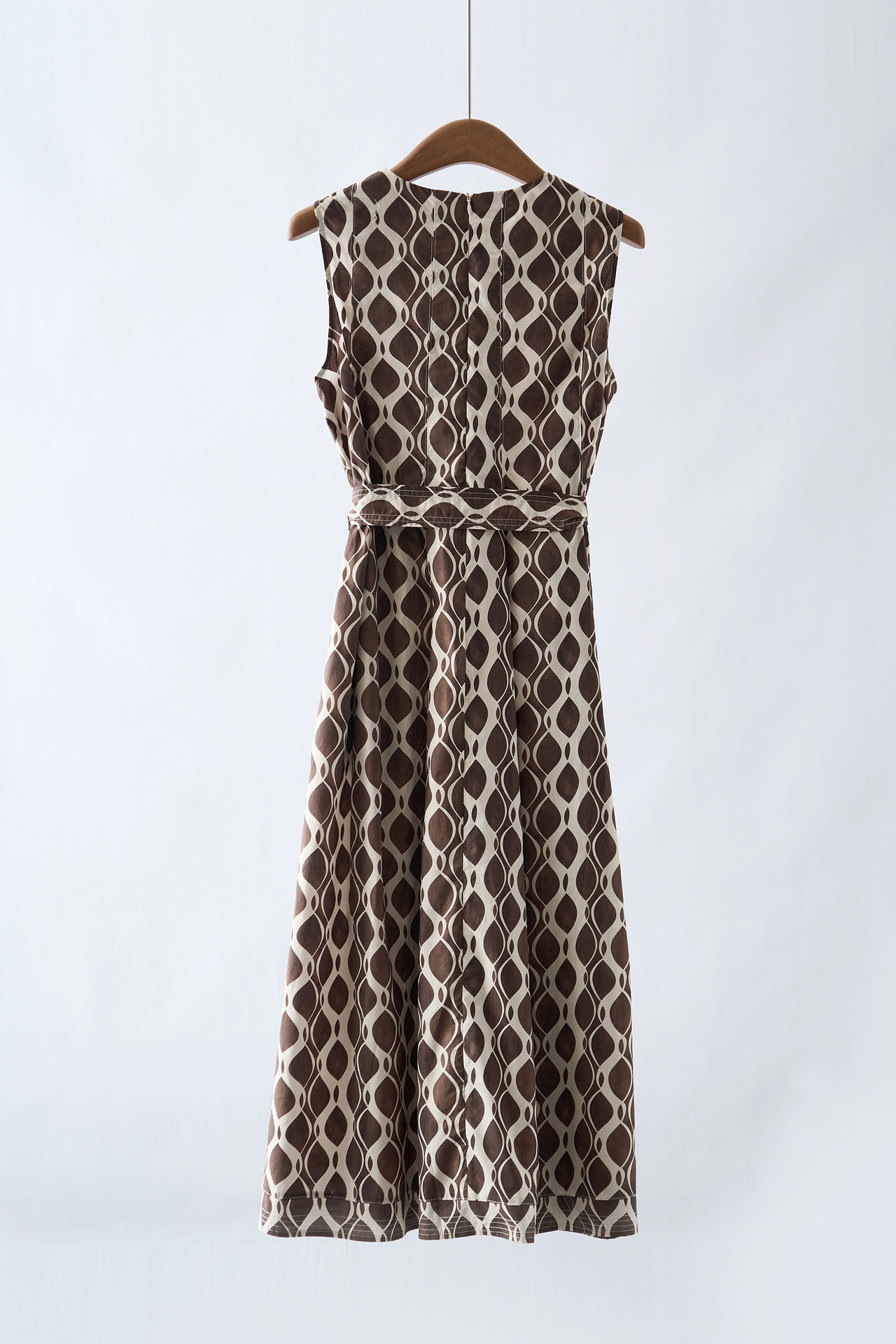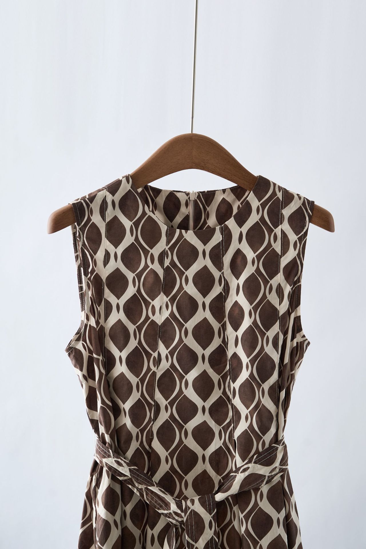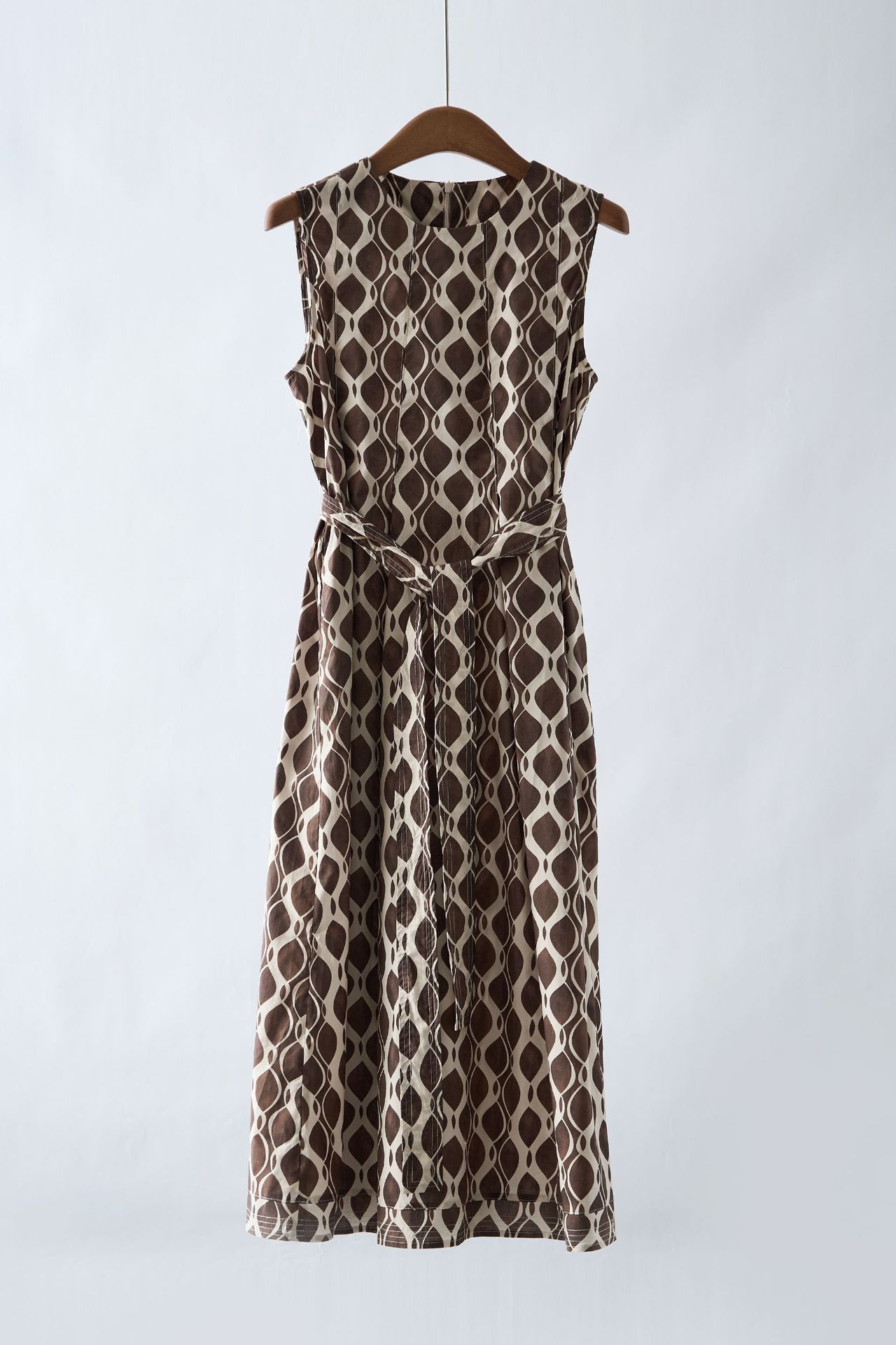 「自」全新升级【铂金会员284/天猫379/差价95】(03409)洛诗琳2025夏新款纯棉几何印花系带圆领无袖长款连衣裙女