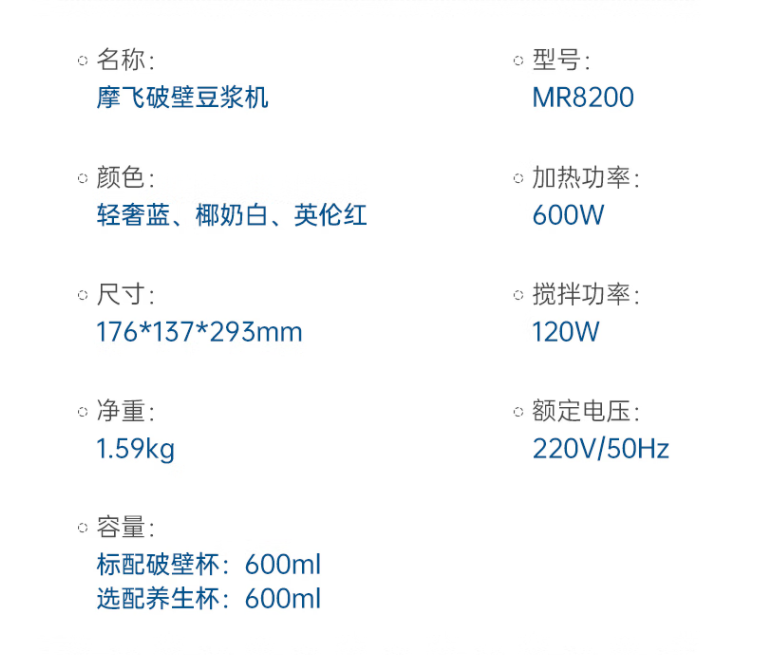 【安达联帮&摩飞&仅限快递】摩飞多功能破壁豆浆机MR8200(厂家直发)