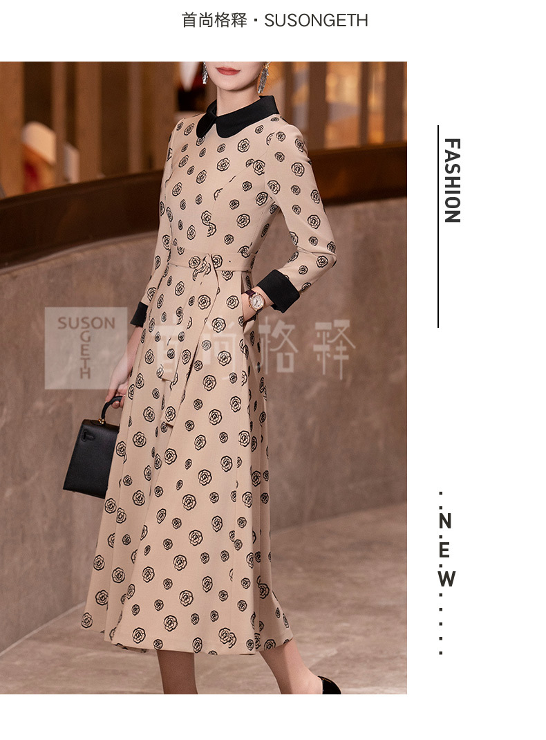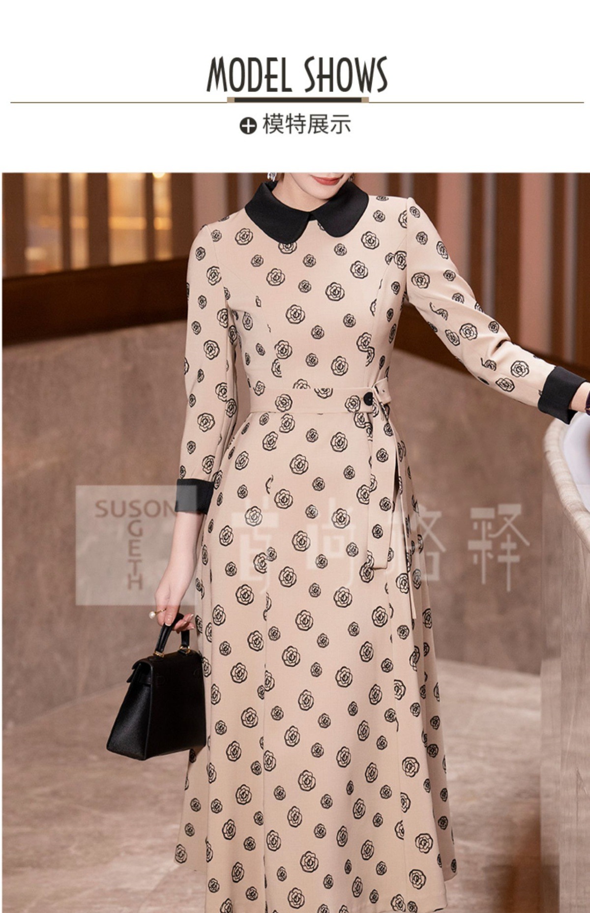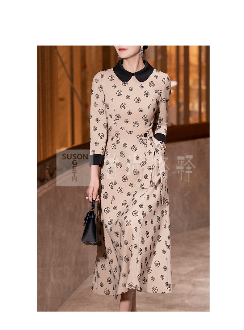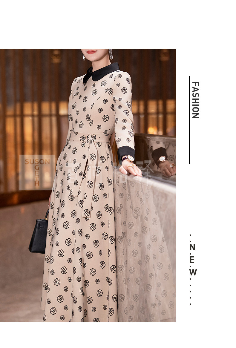 S436LLL755H10端庄大气连衣裙女2025秋季新款气质小香风娃娃领显瘦中长款大摆裙
