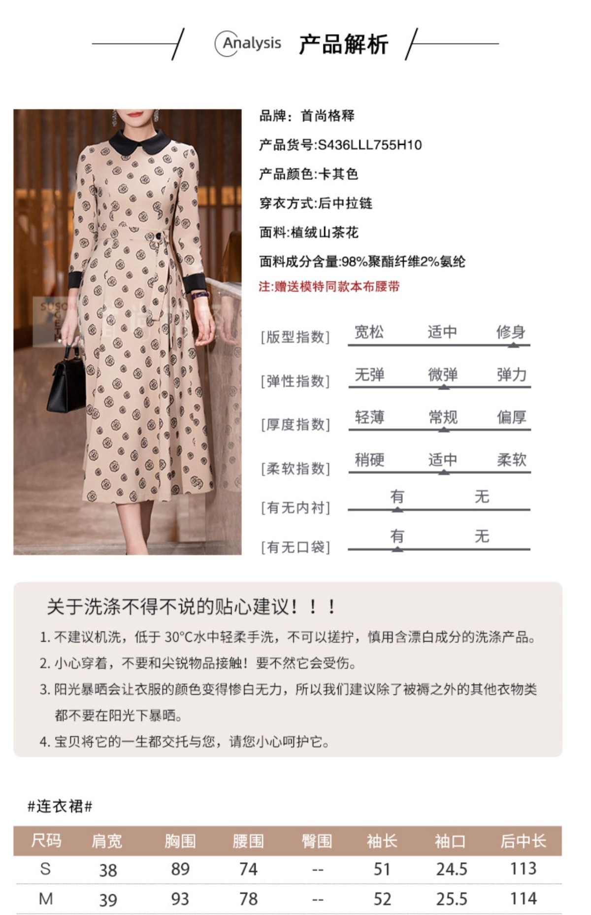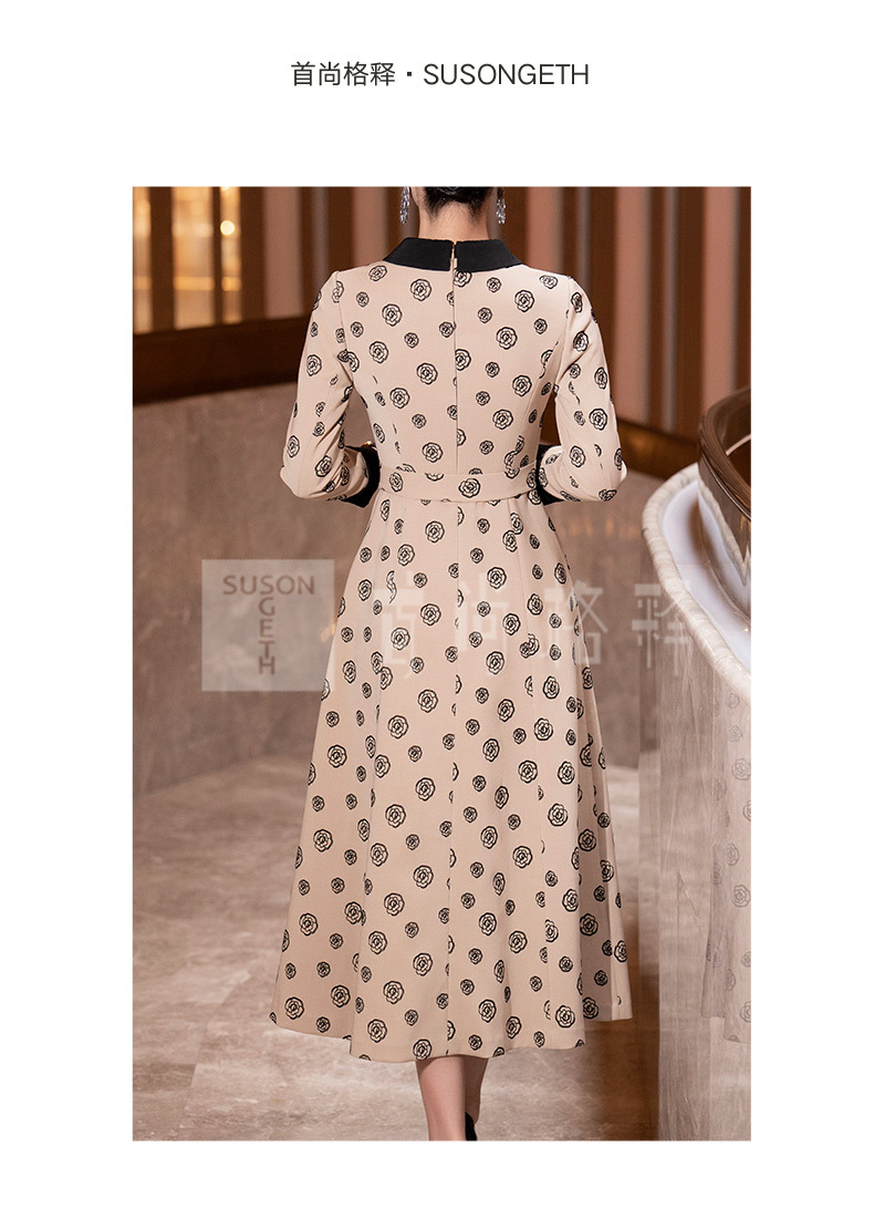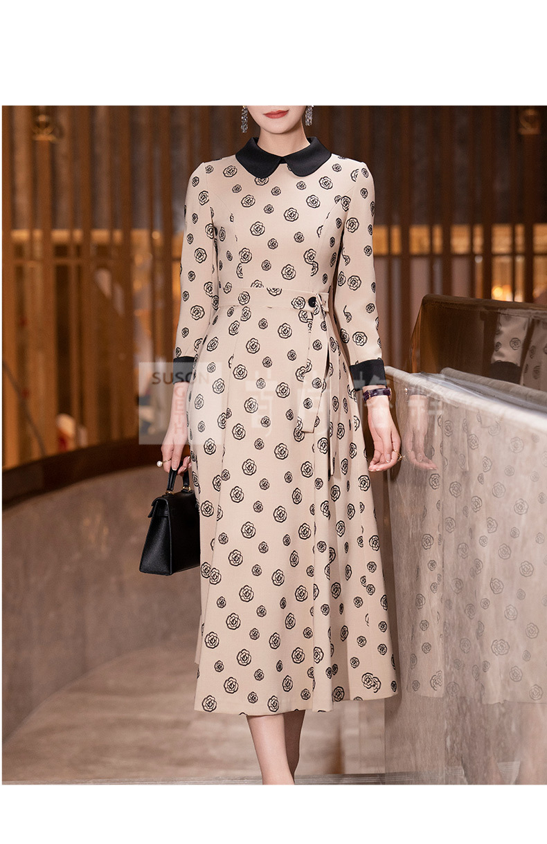 S436LLL755H10端庄大气连衣裙女2025秋季新款气质小香风娃娃领显瘦中长款大摆裙