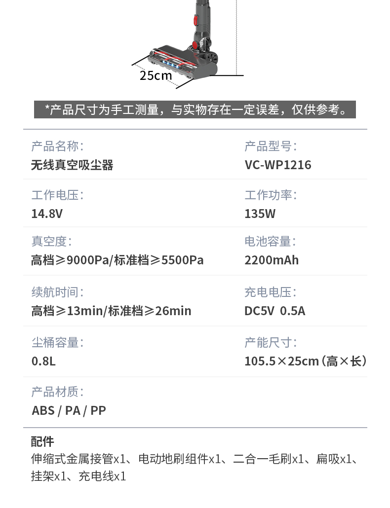 杞冠臻选 | 米技生活 无线真空吸尘器(充电式真空吸尘器) VC-WP1216