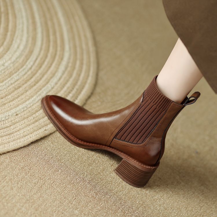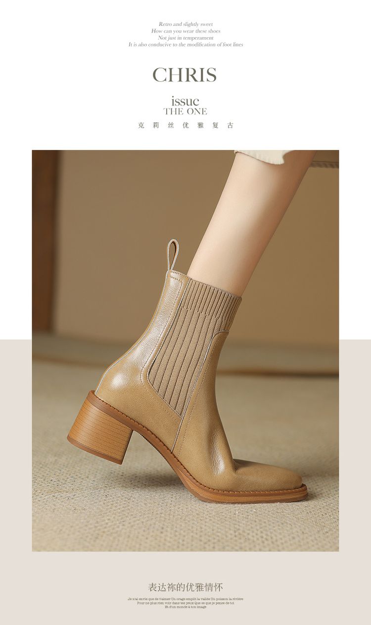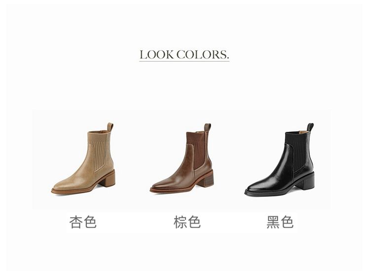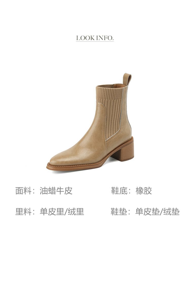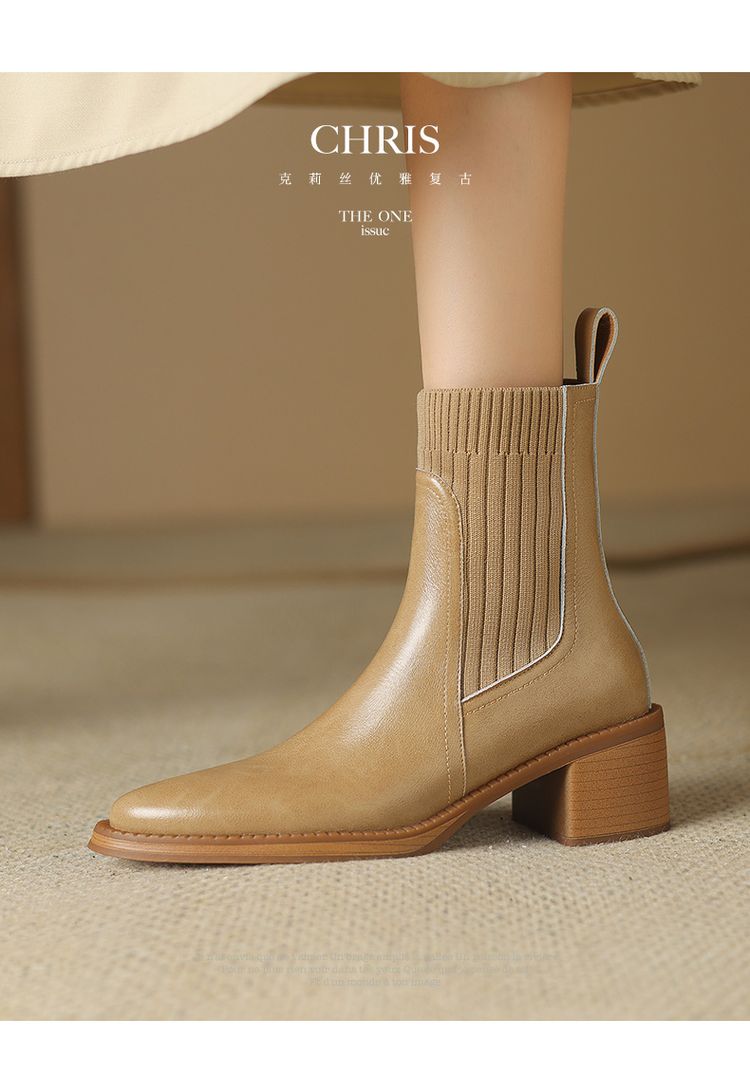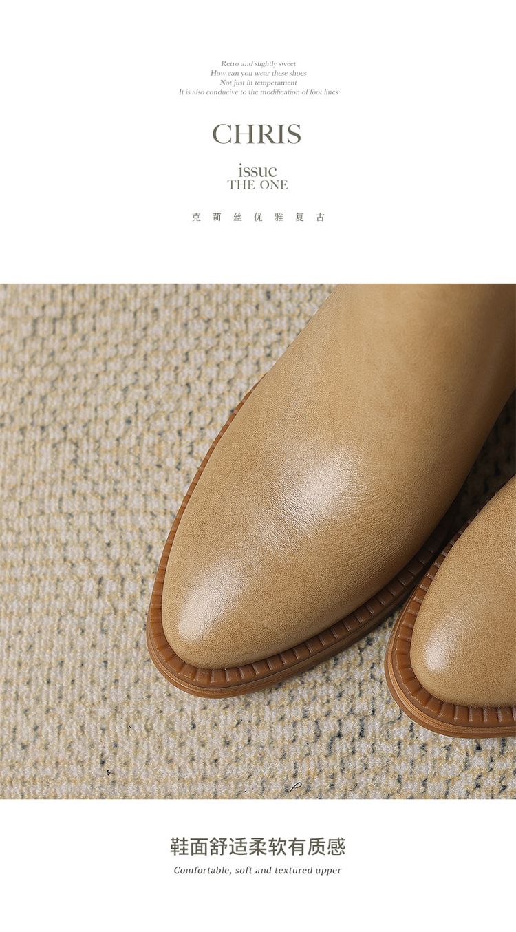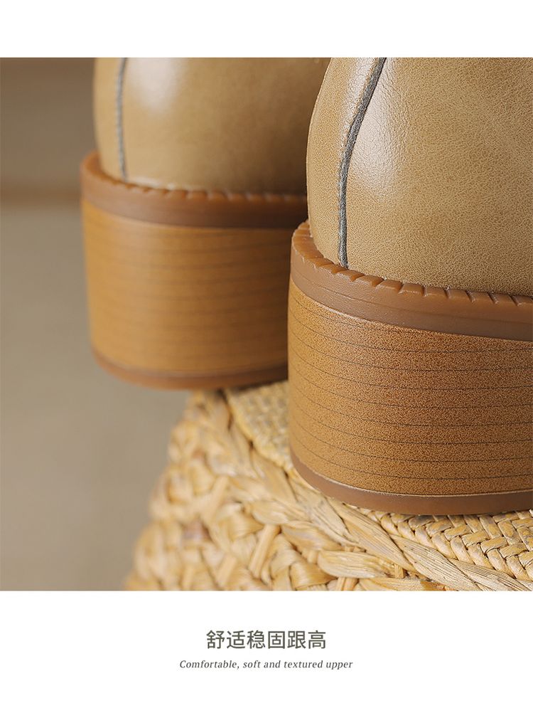 【预售5天】牛皮粗跟短靴女秋季女靴英伦风马丁靴粗跟中跟裸靴复古女鞋DTN&D906-5
