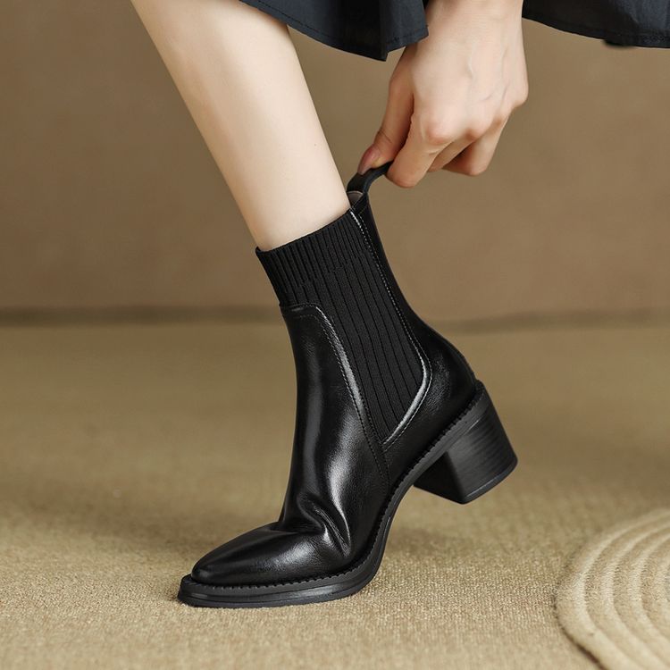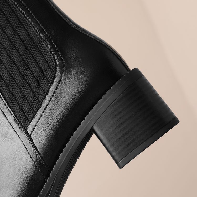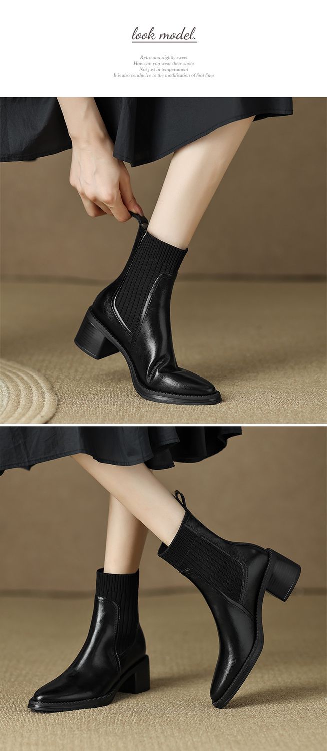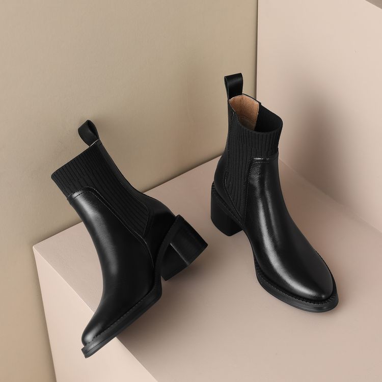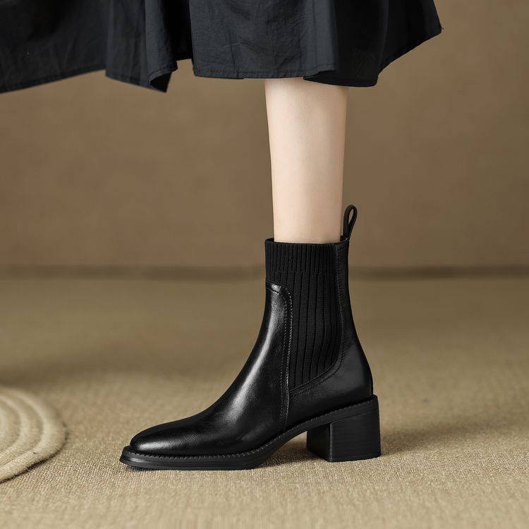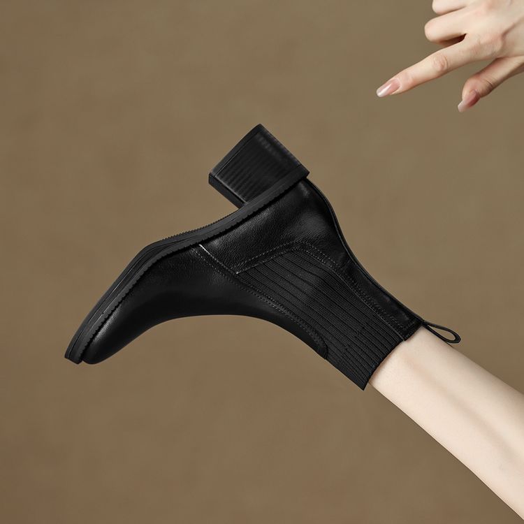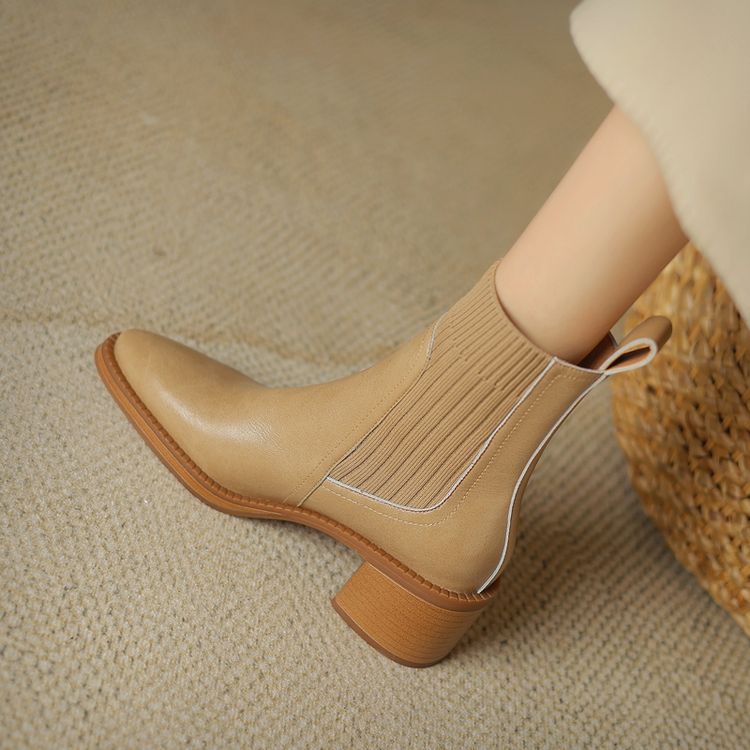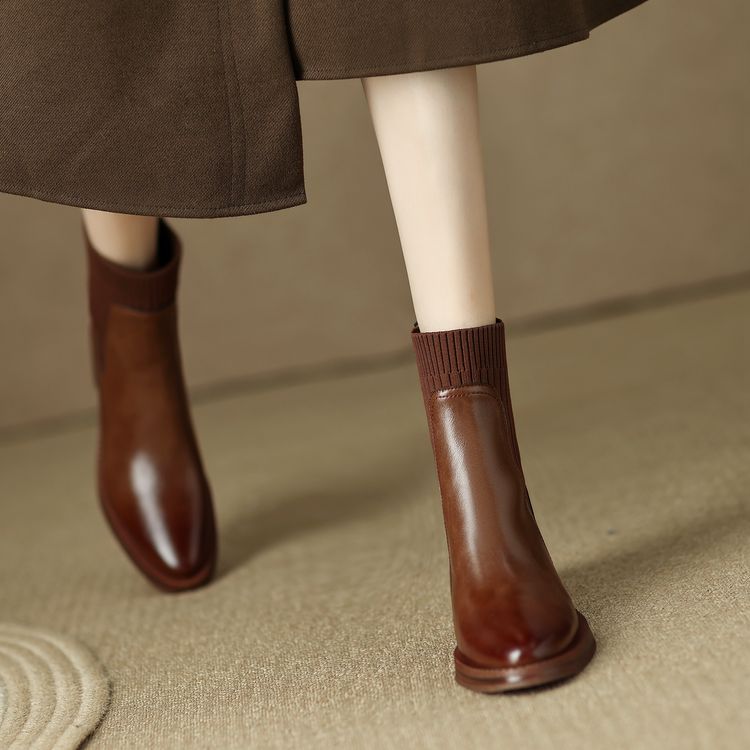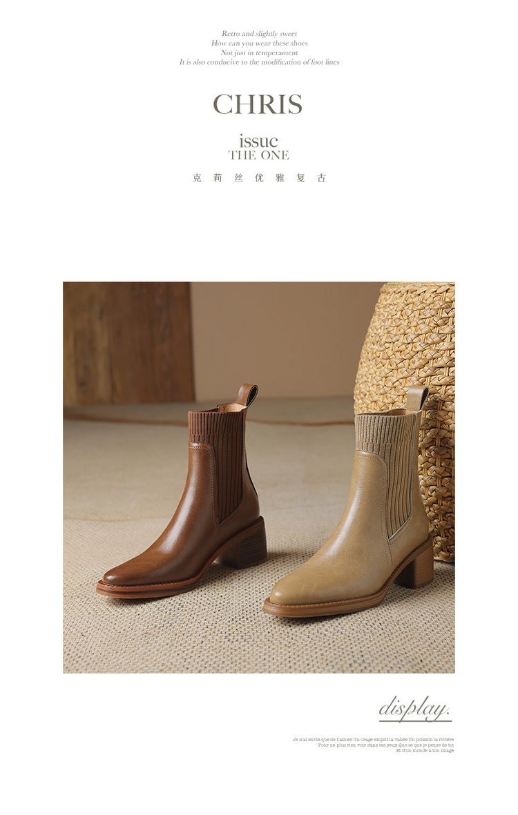 【预售5天】牛皮粗跟短靴女秋季女靴英伦风马丁靴粗跟中跟裸靴复古女鞋DTN&D906-5