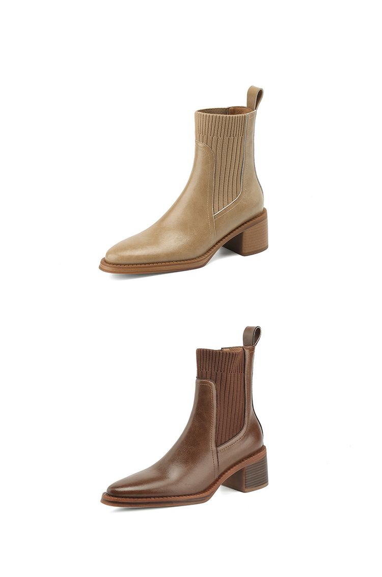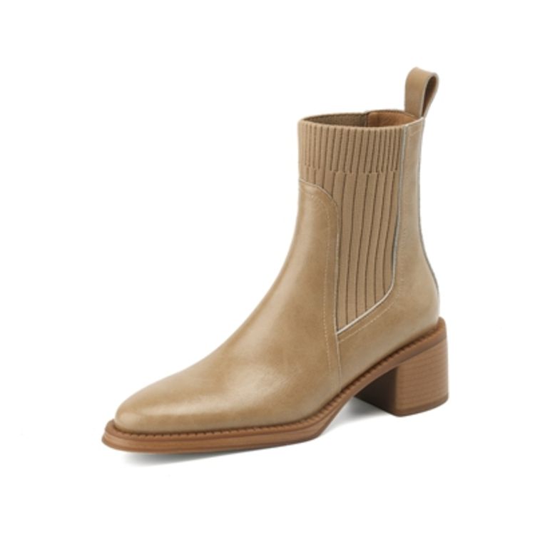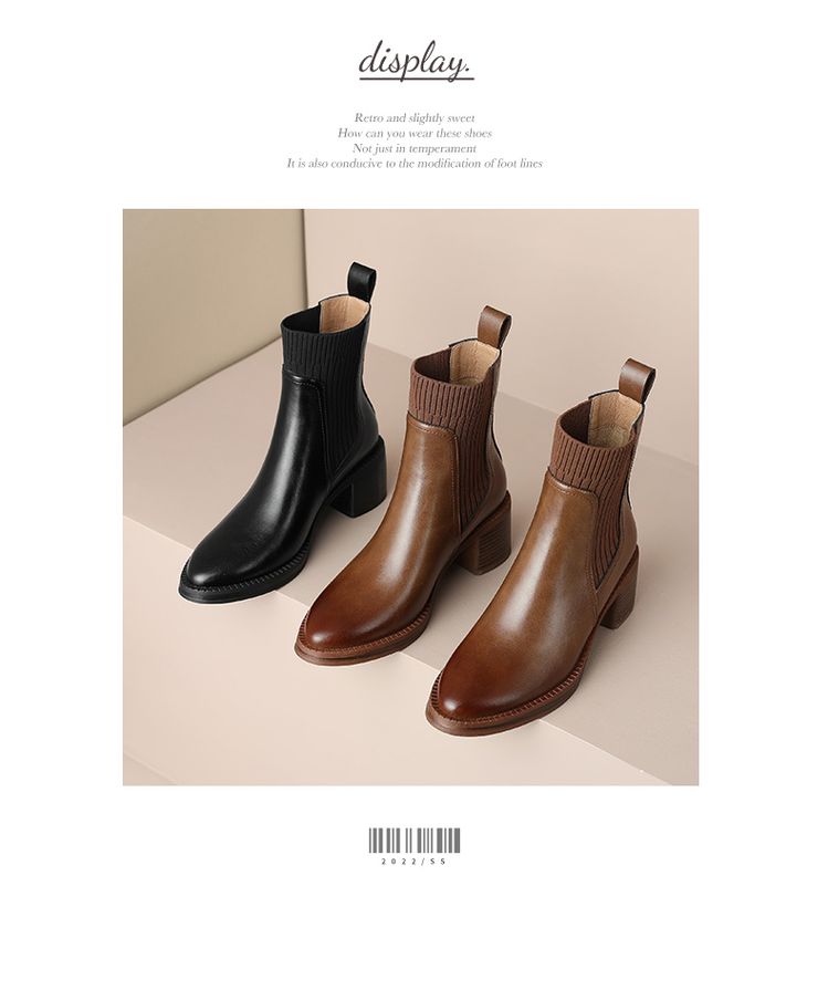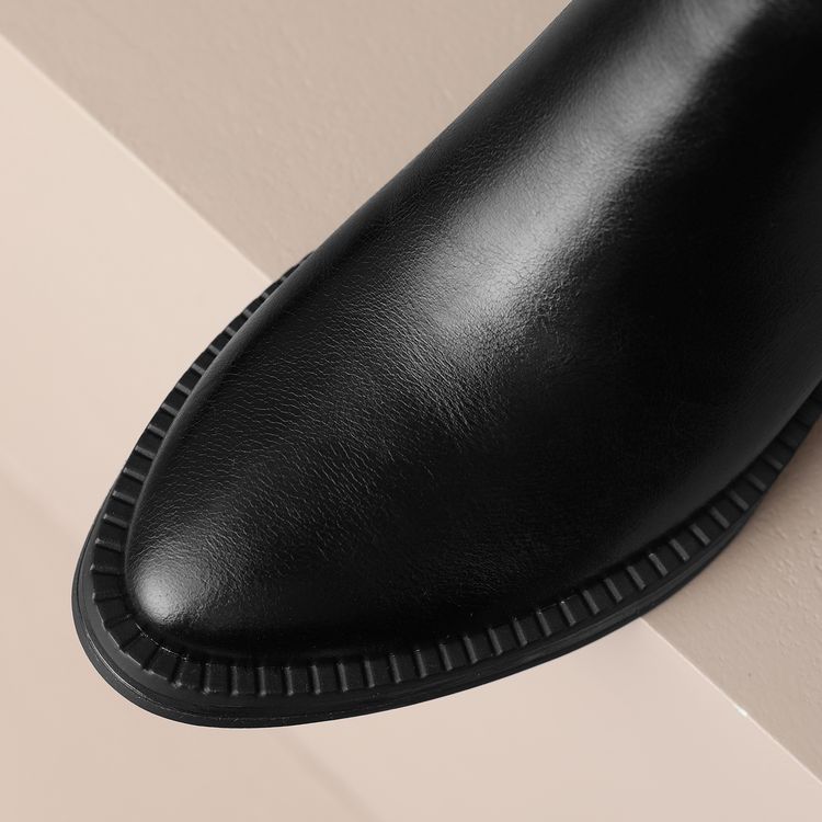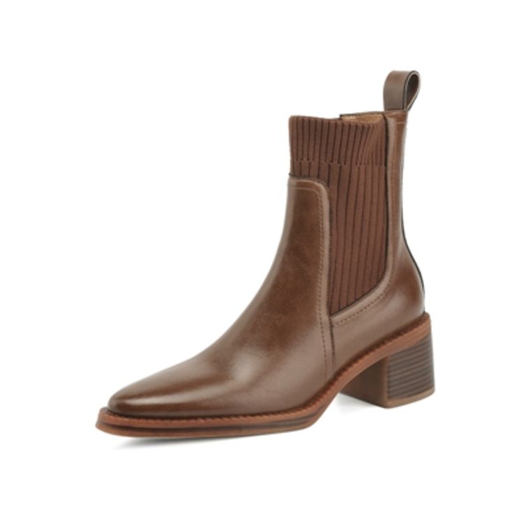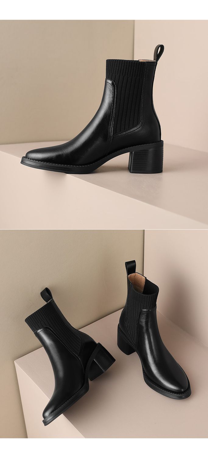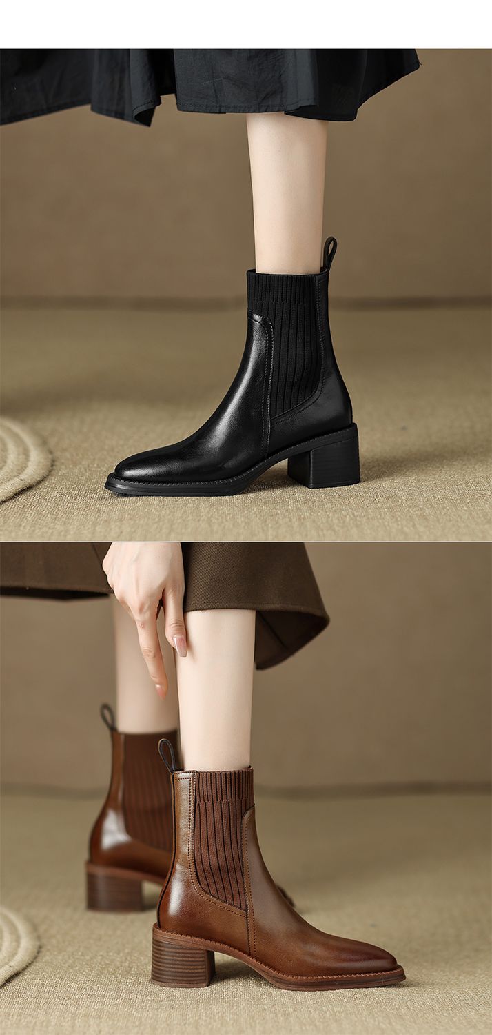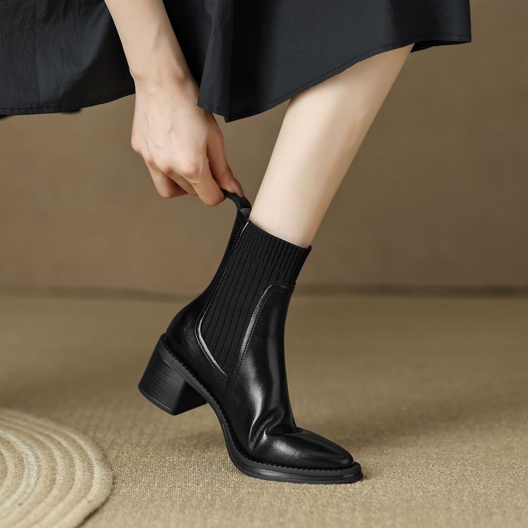 【预售5天】牛皮粗跟短靴女秋季女靴英伦风马丁靴粗跟中跟裸靴复古女鞋DTN&D906-5