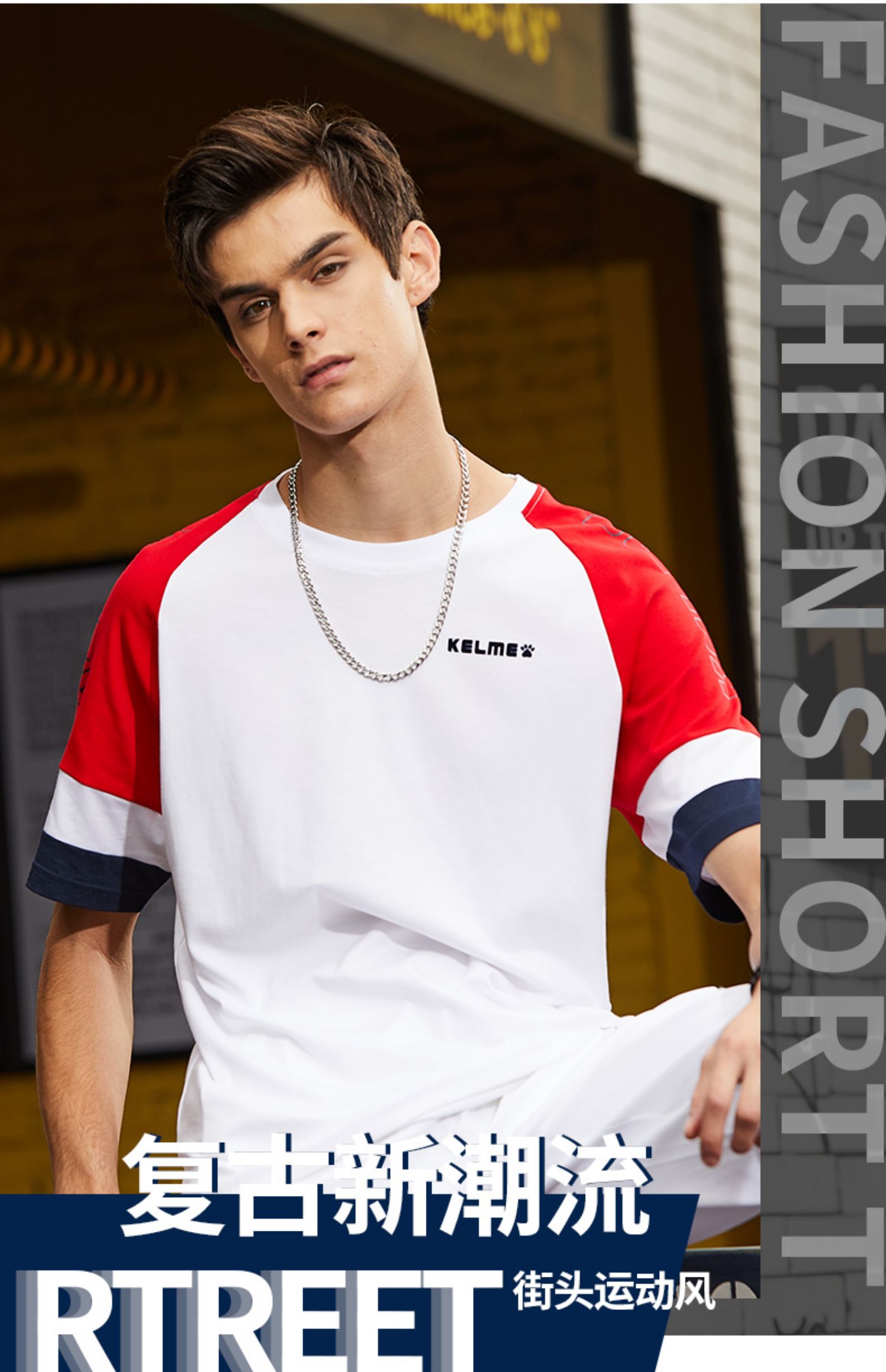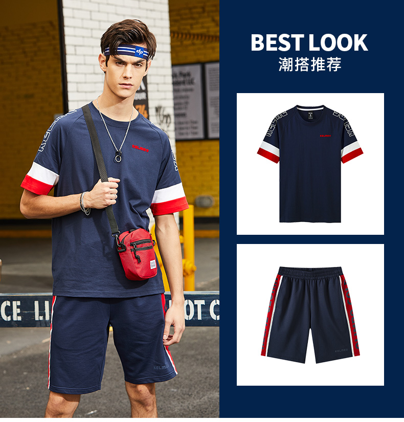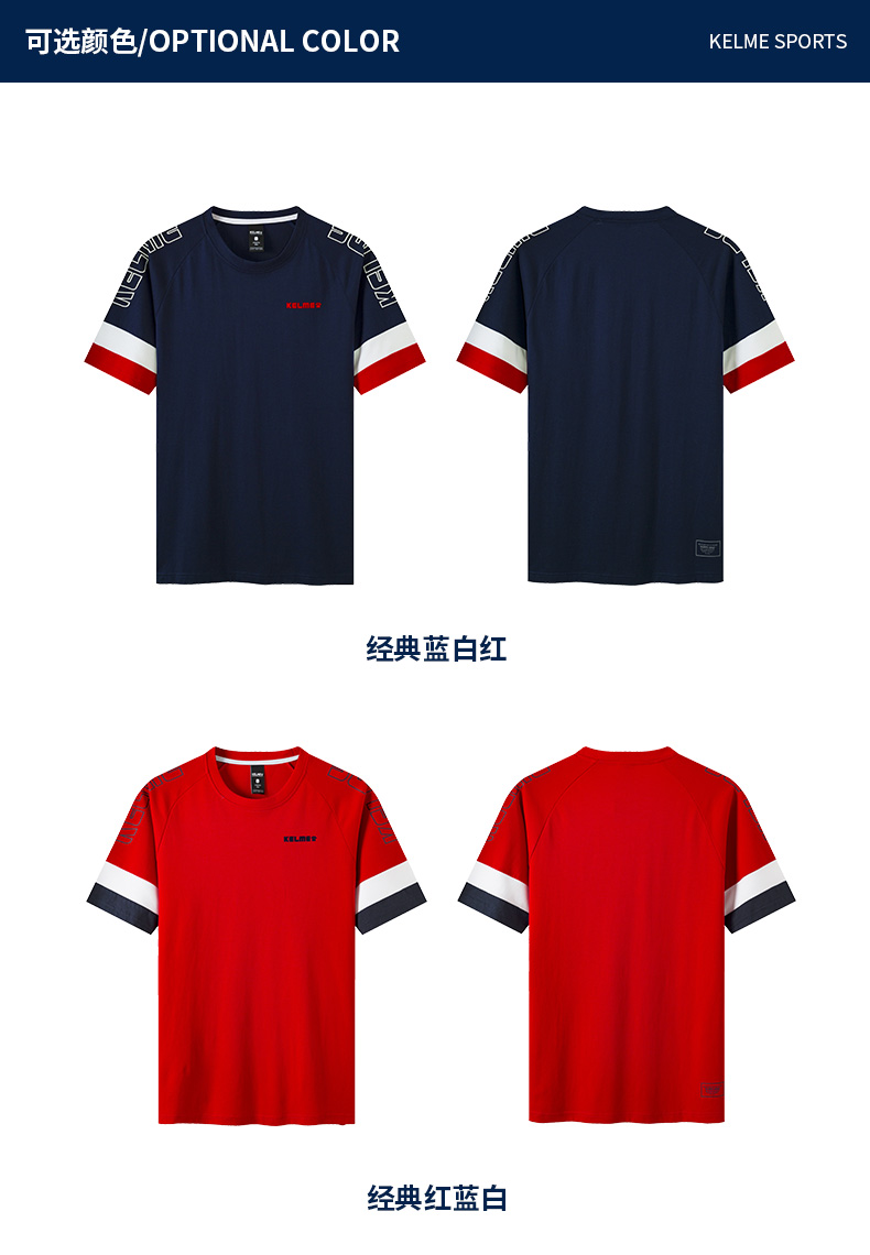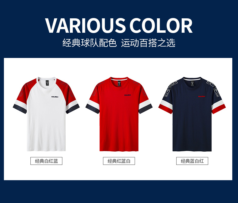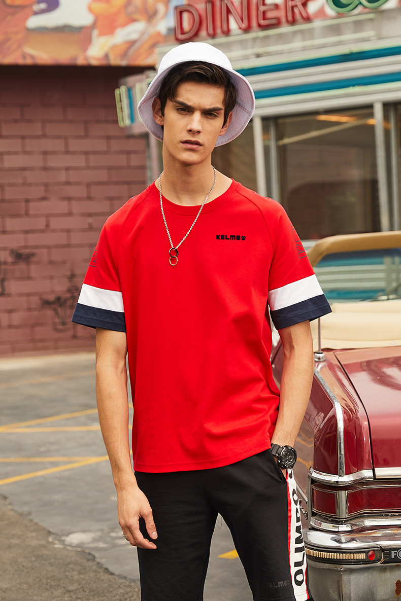 KELME卡尔美新款短袖男t恤夏季潮流半袖宽松时尚上衣圆领透气
