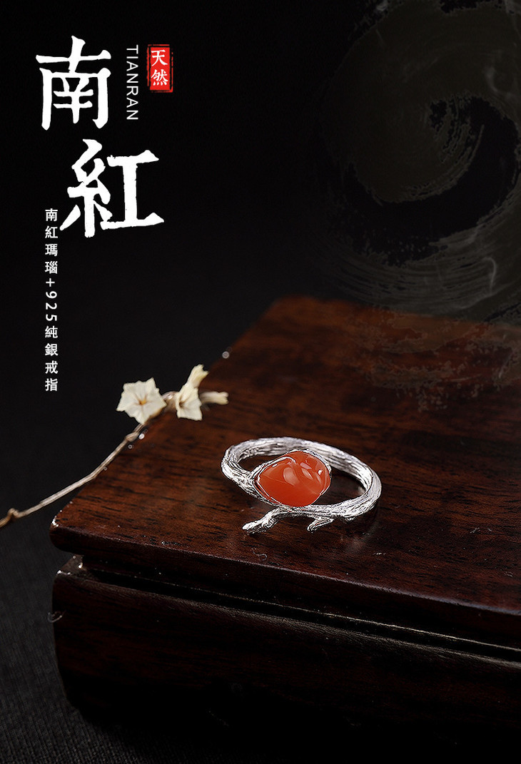 S925纯银天然,南红玉兰花戒指 CW39