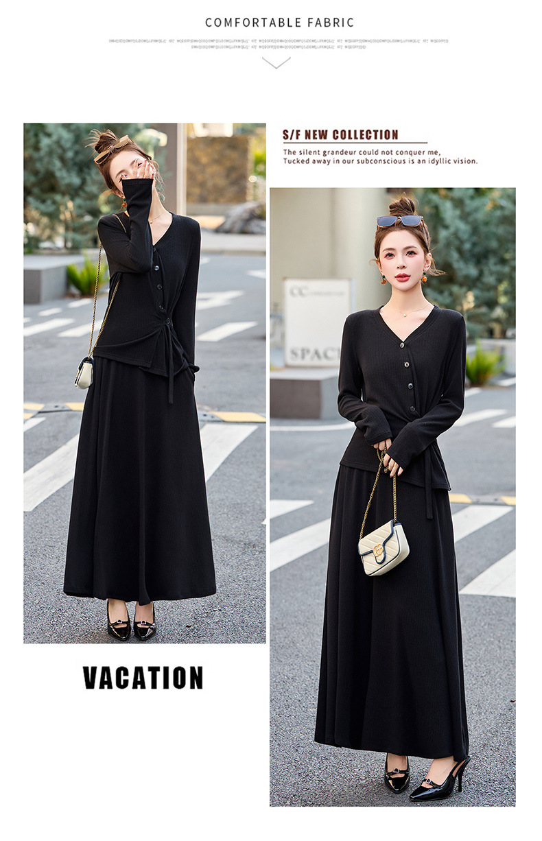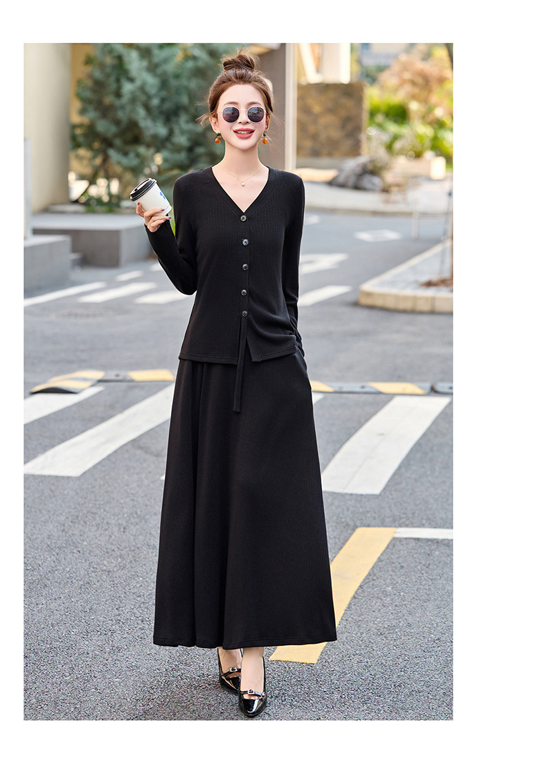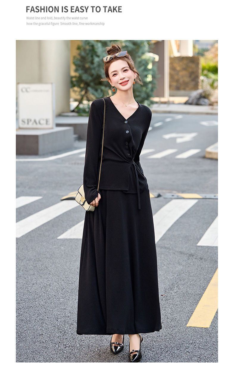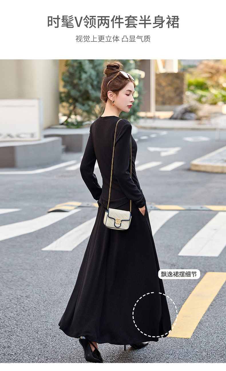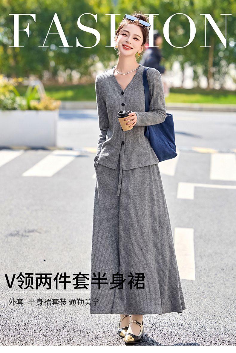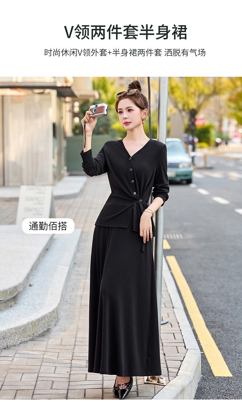 2025年春季新款时尚气质V领舒适感休闲减龄两件套半身裙LNS9741