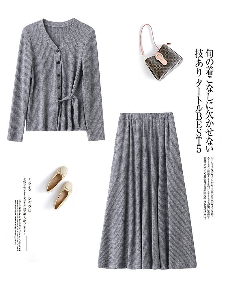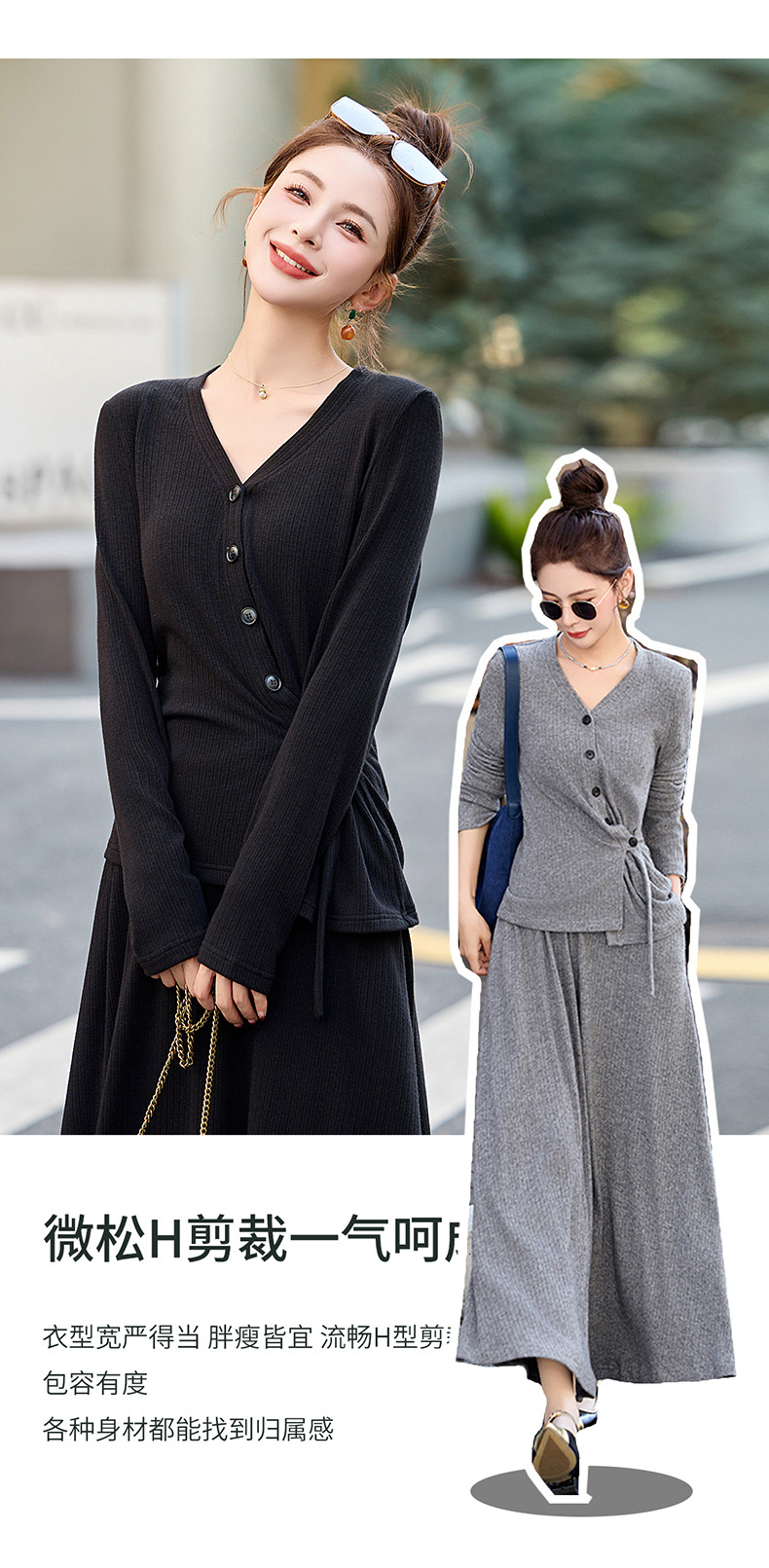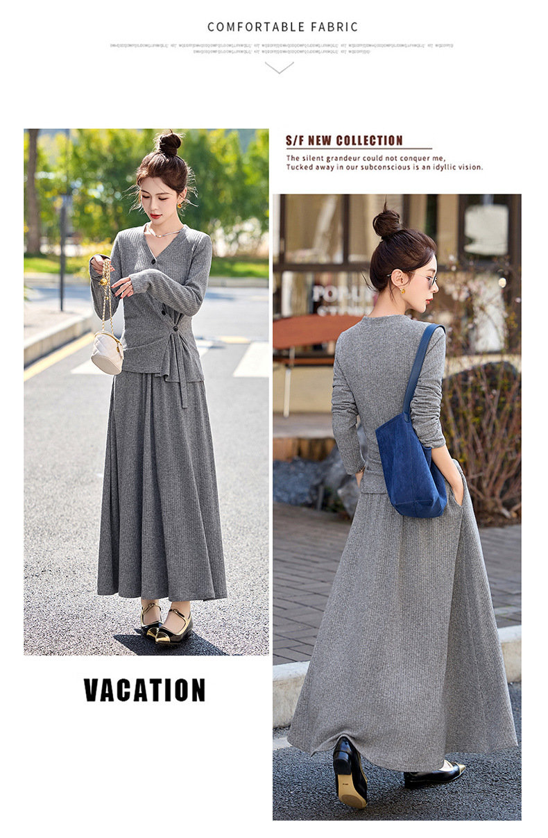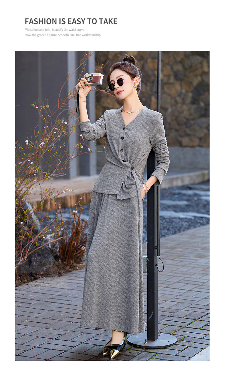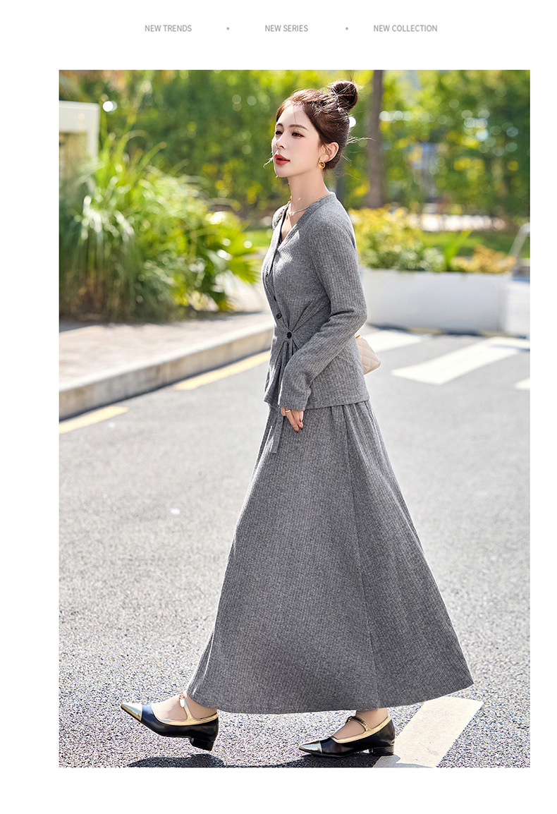 2025年春季新款时尚气质V领舒适感休闲减龄两件套半身裙LNS9741