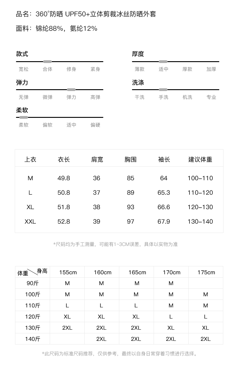 IN AND ON 360°防晒 UPF50+立体剪裁冰丝防晒外套54321