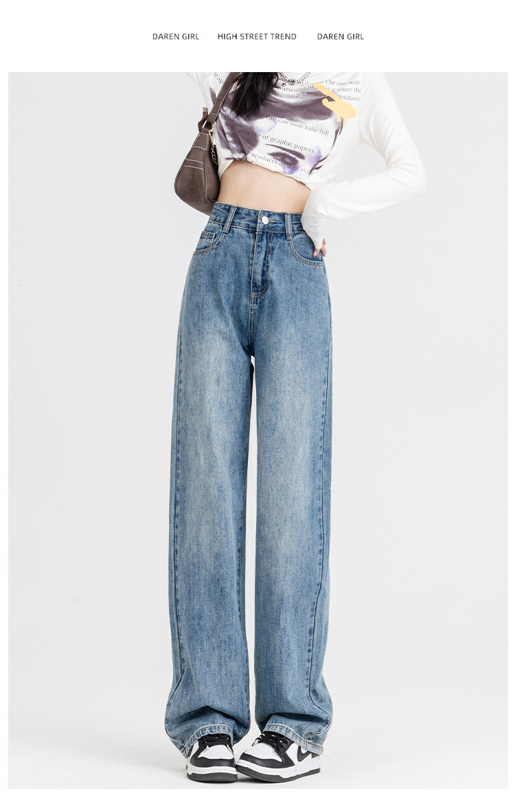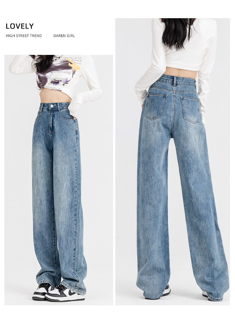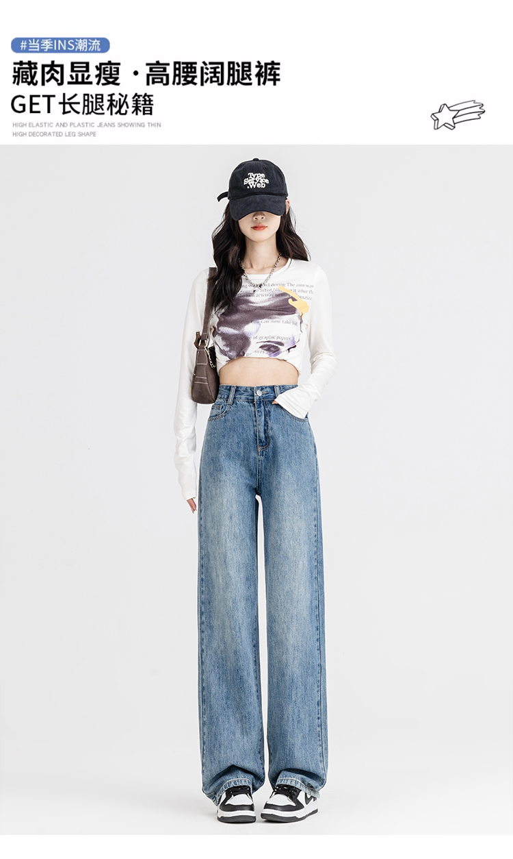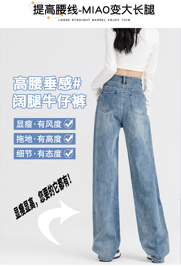 罗蒙女士四季阔腿牛仔裤高腰显瘦垂感休闲女长裤百搭时尚直筒裤子