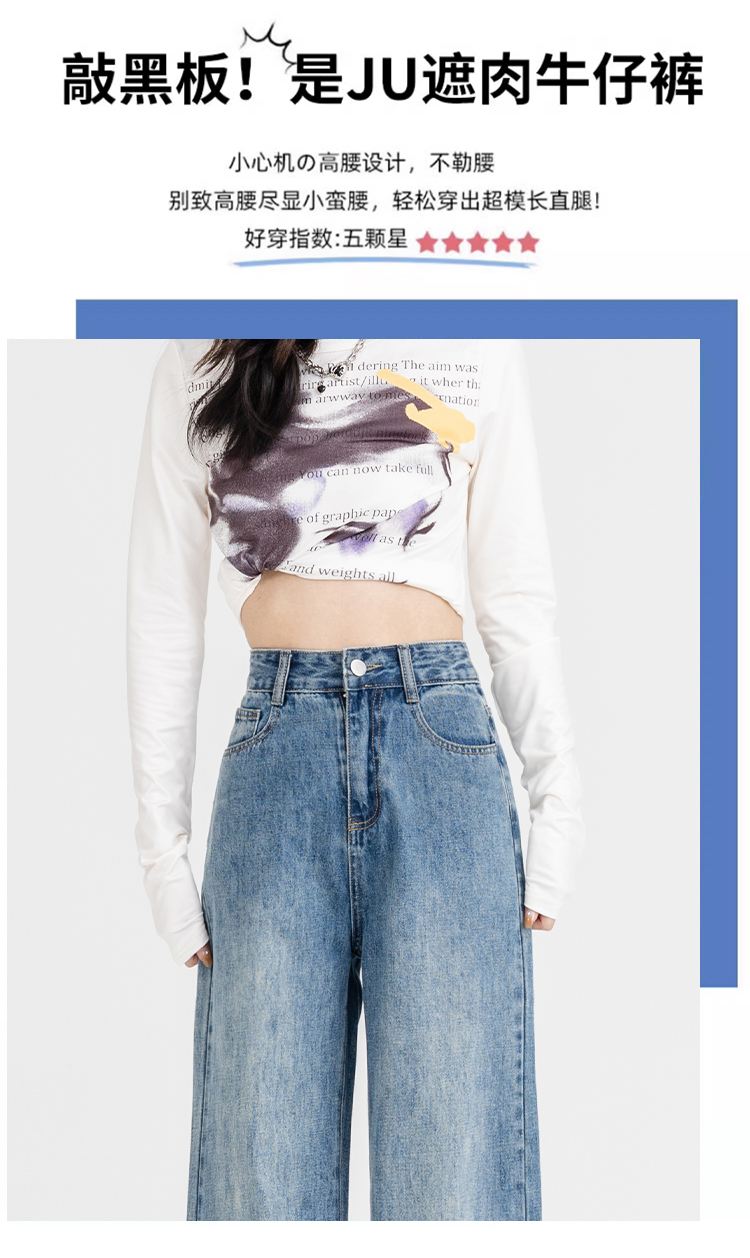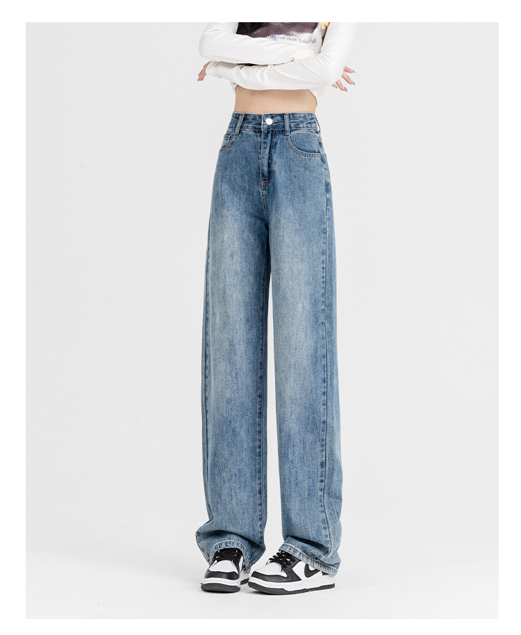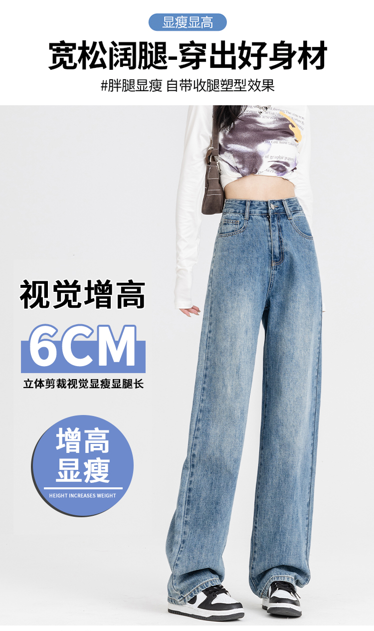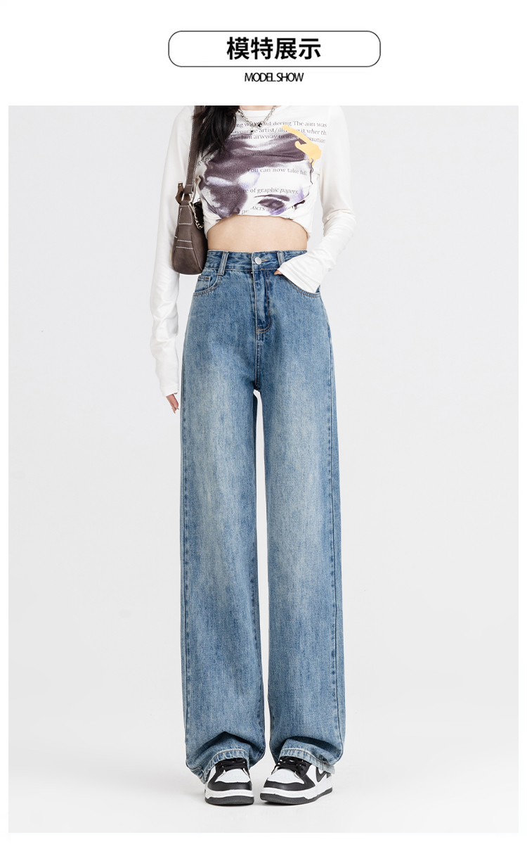 罗蒙女士四季阔腿牛仔裤高腰显瘦垂感休闲女长裤百搭时尚直筒裤子